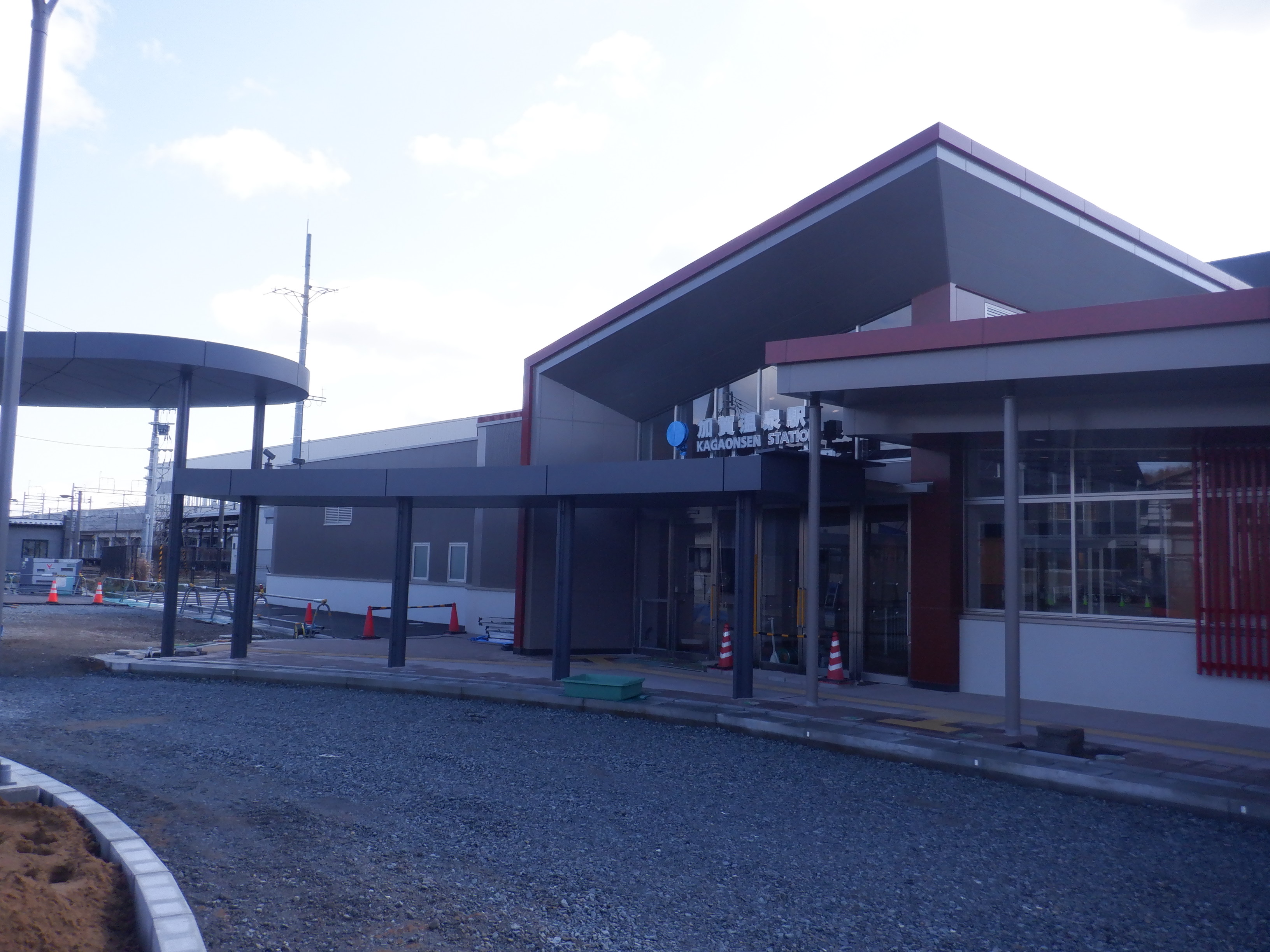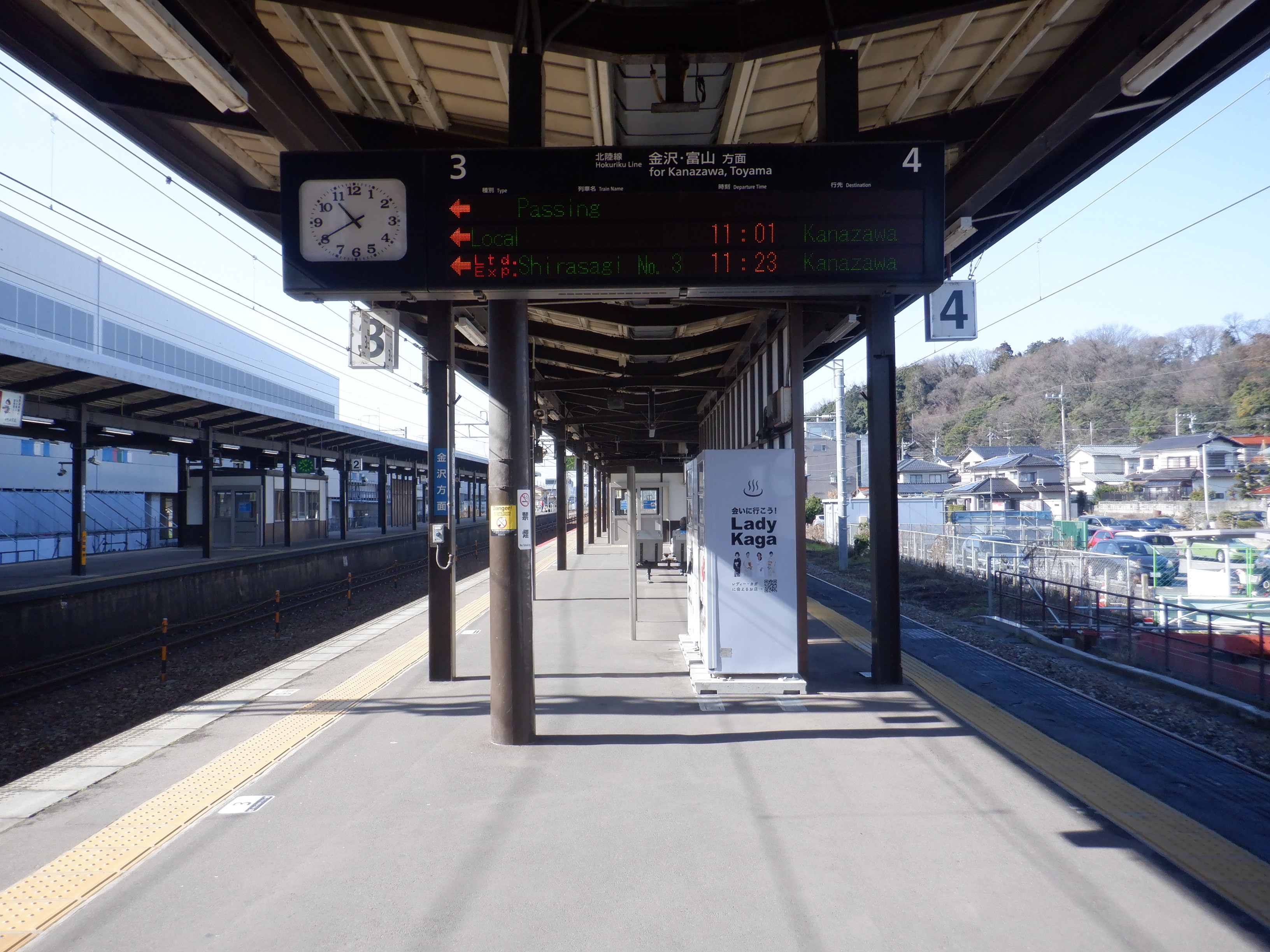 1・2番のりばの大聖寺駅側から。