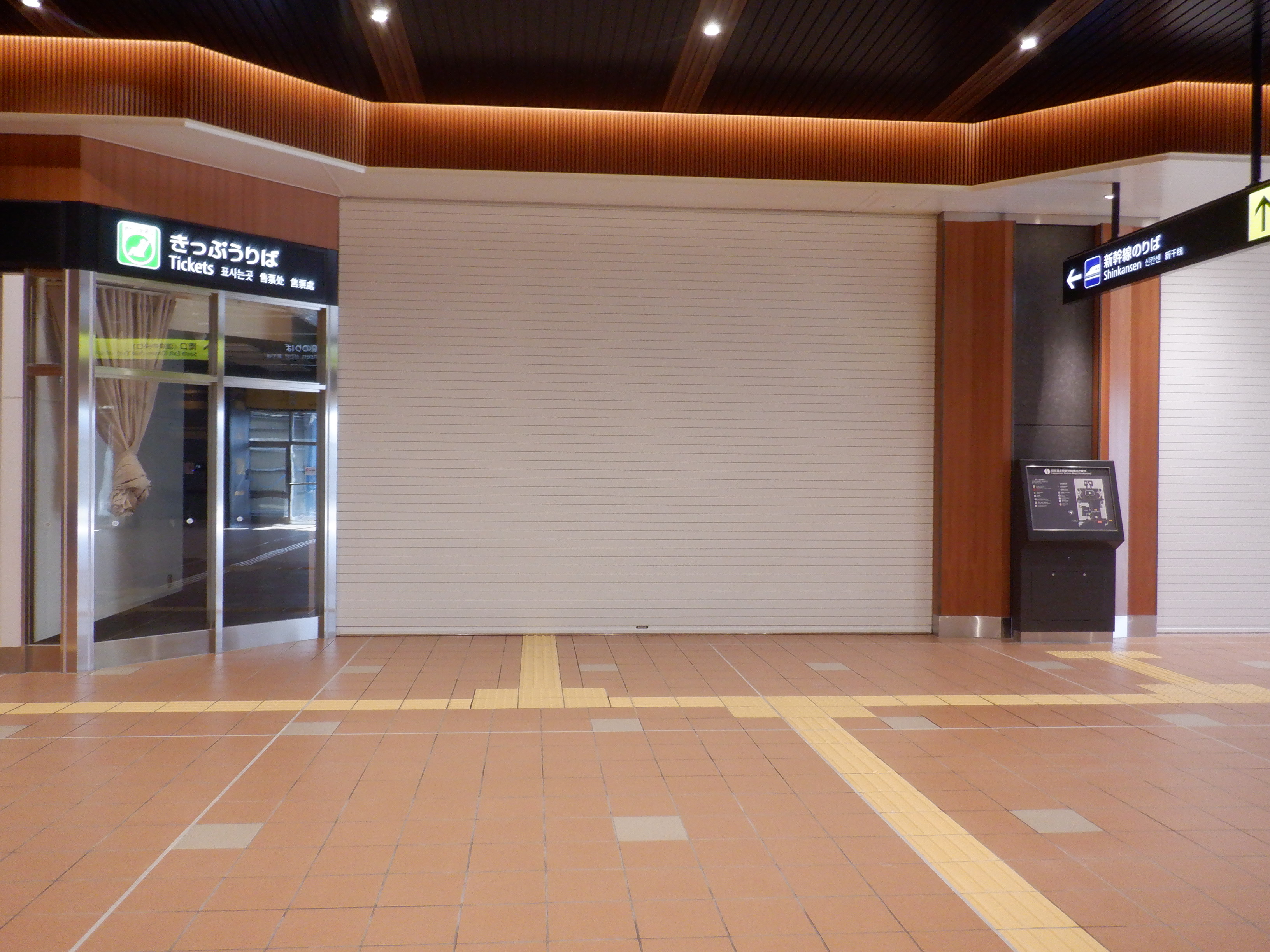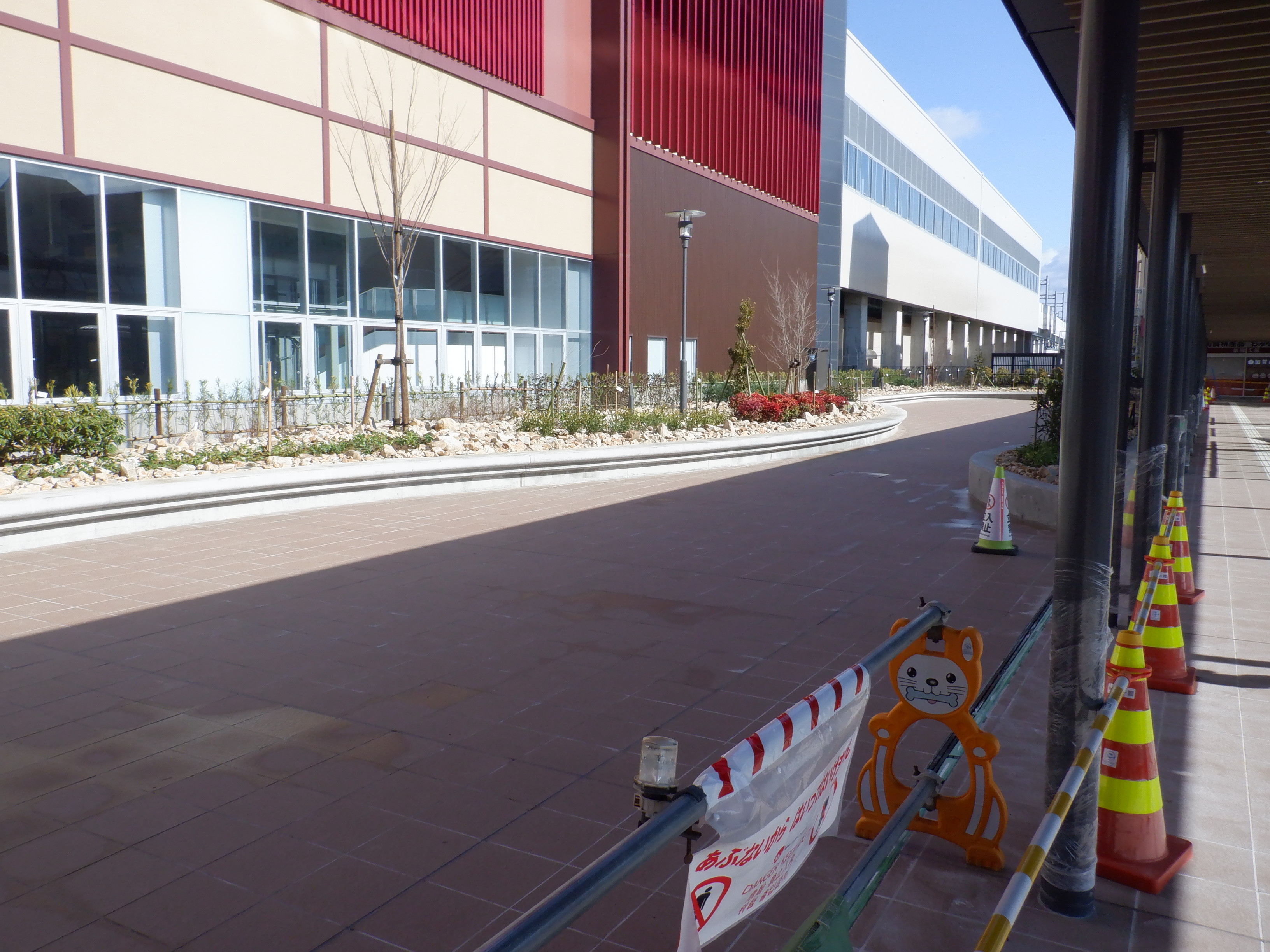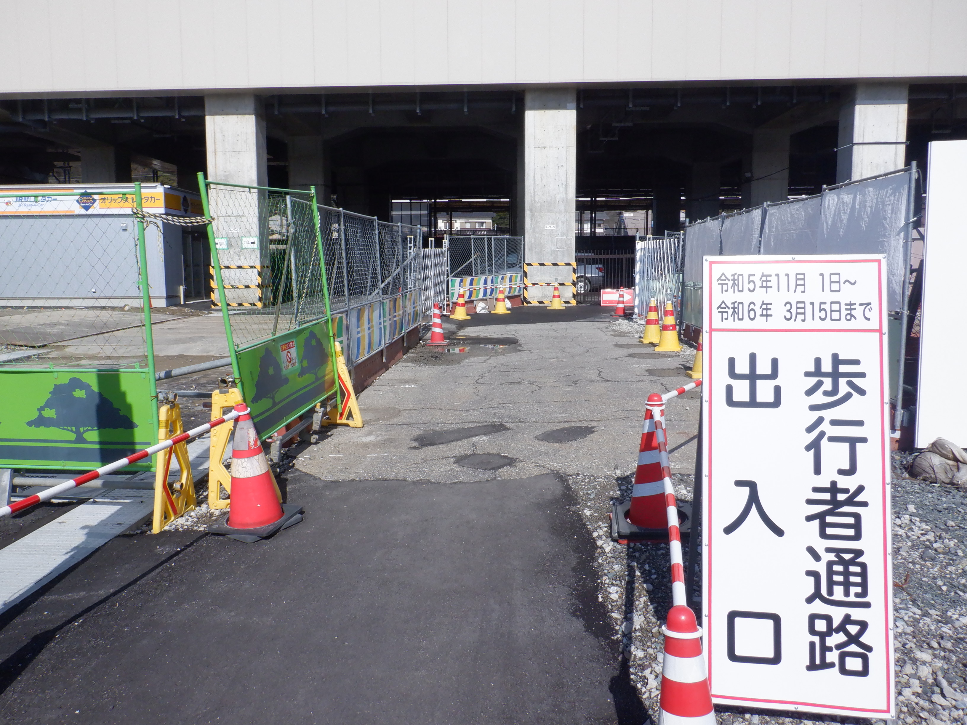 仮設駅舎からアルプラザ側へ新幹線駅舎前を通る通路。