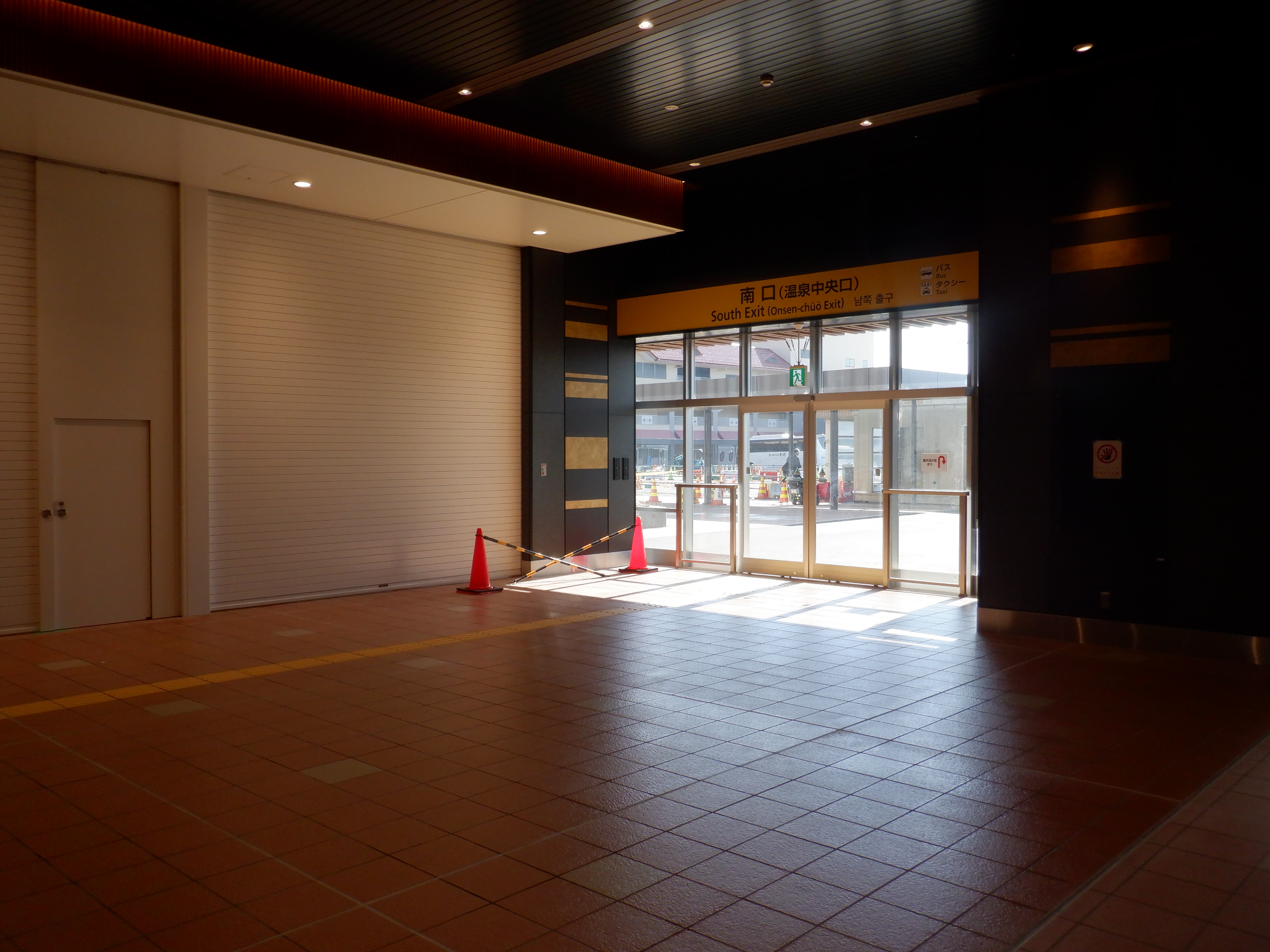 仮設駅舎の旧仮設バスのりば側出入口。