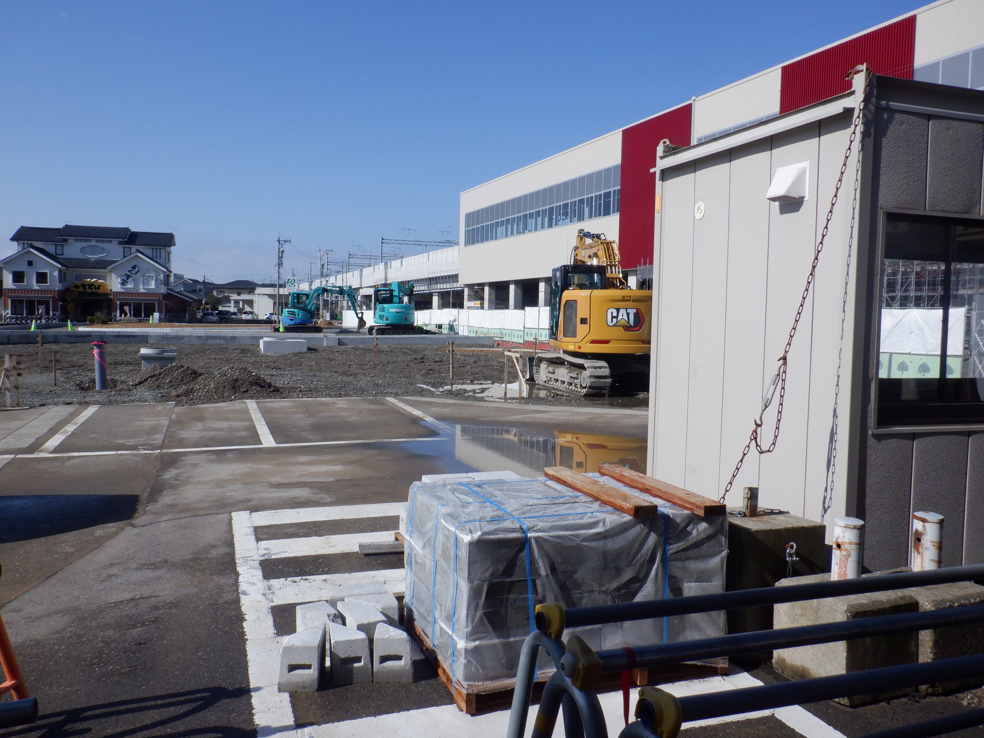 高架下部都市施設(コンビニ・待合室等)建設中のところ。