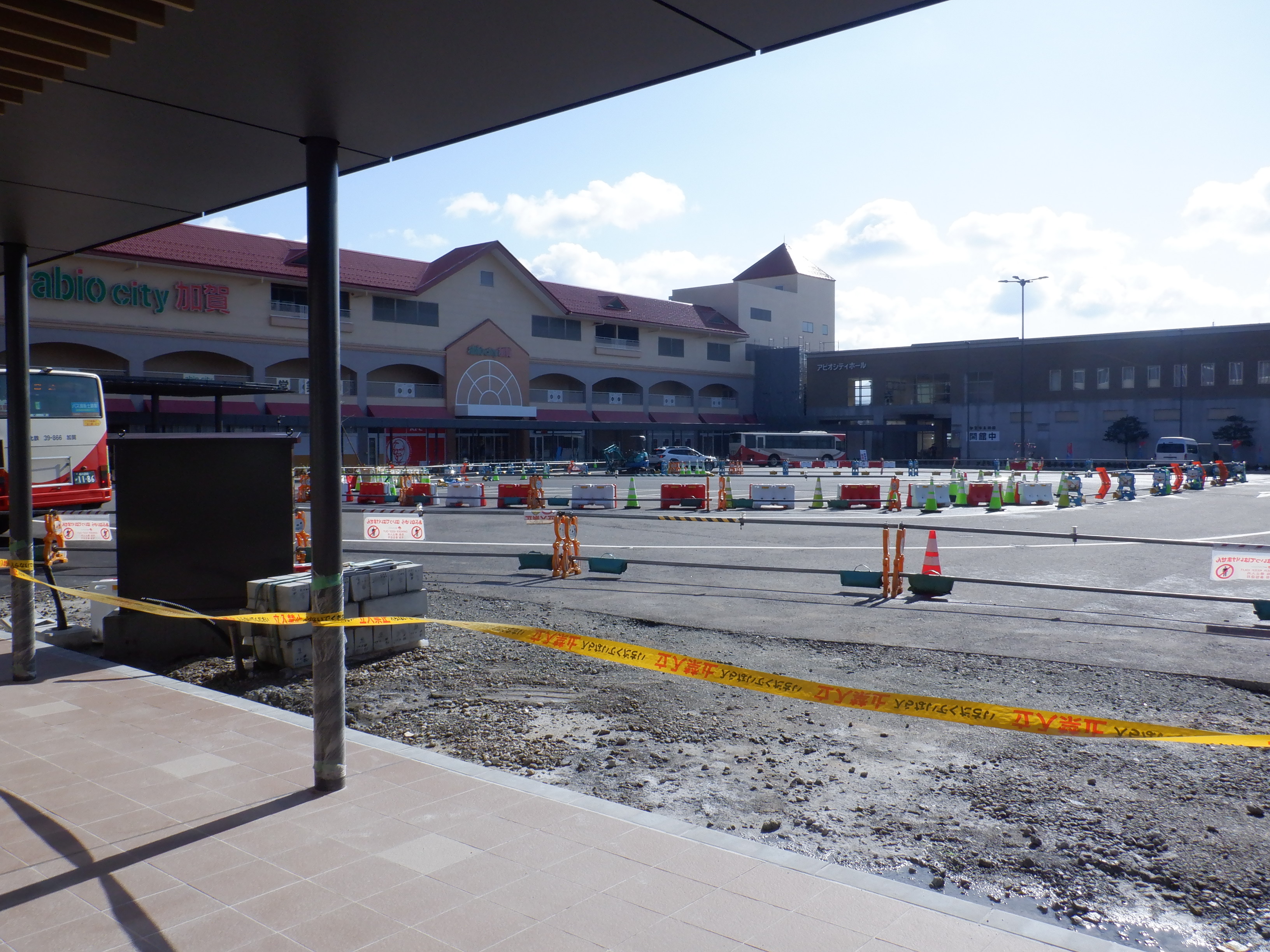1・2番のりばから見た高架下部都市施設(コンビニ・待合室等)建設中の様子。