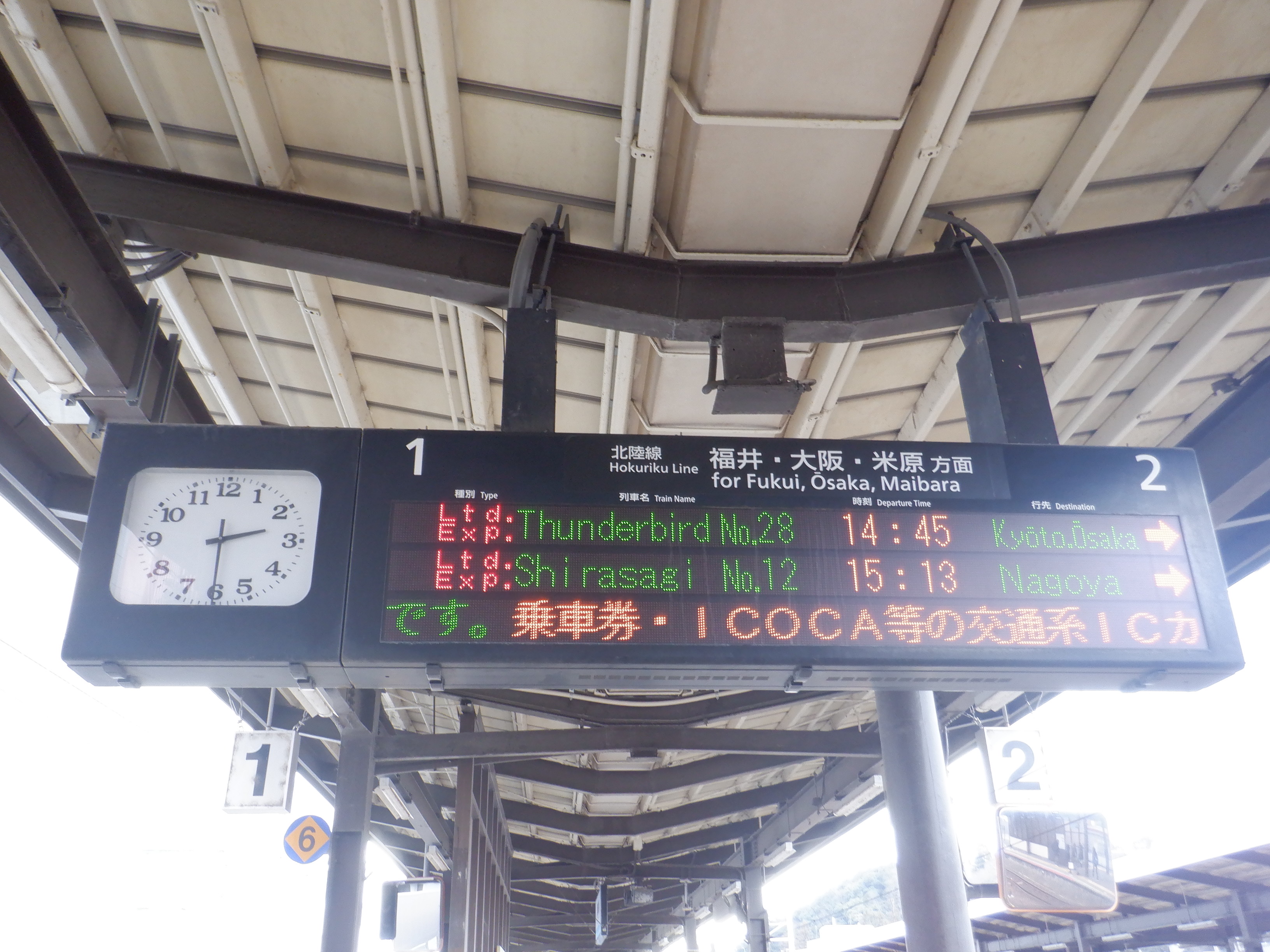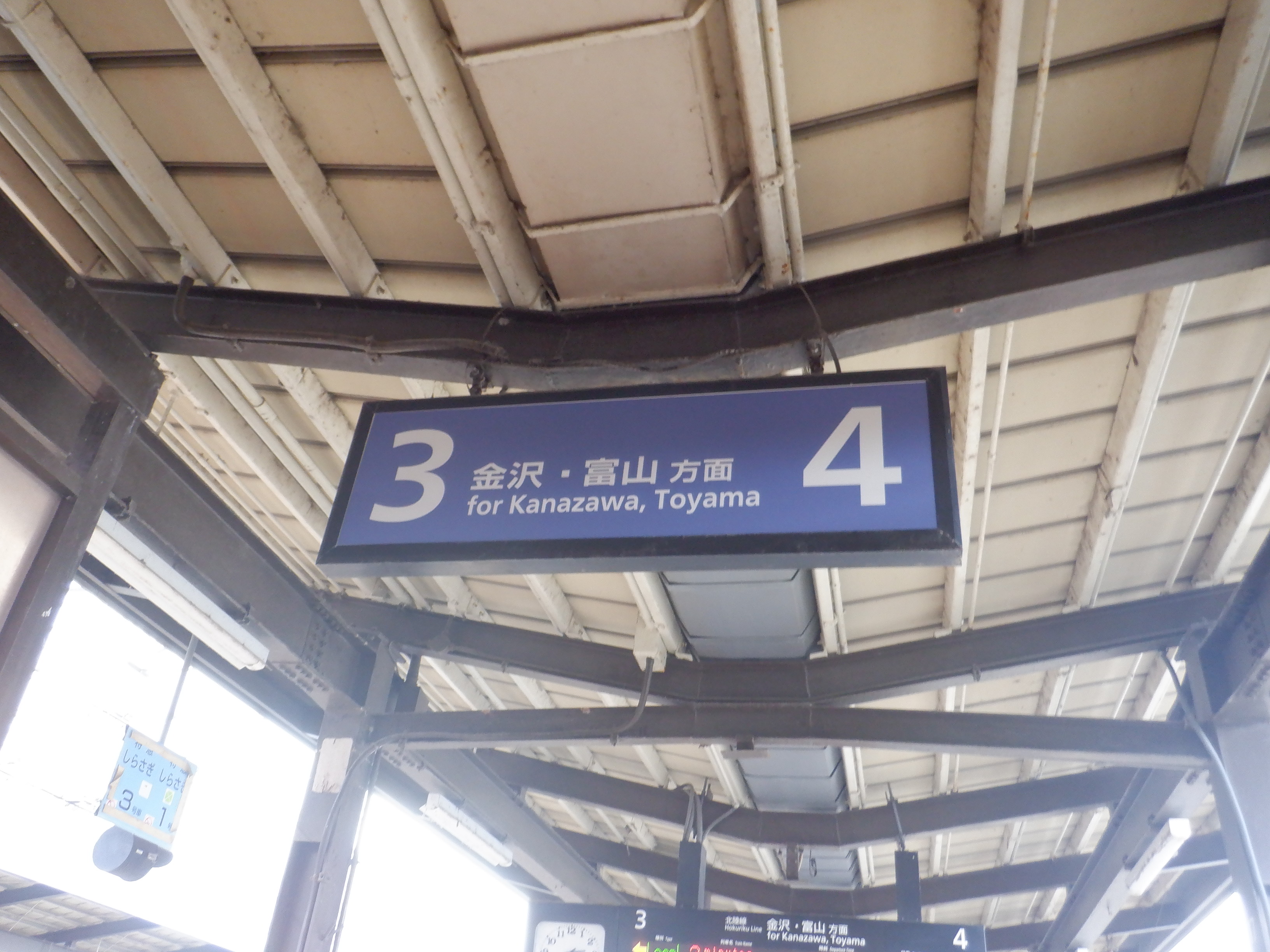 1・2番のりば大聖寺駅側の駅名標2枚は、IRいしかわ鉄道のものになりました。ロゴは上からシールで隠されています。