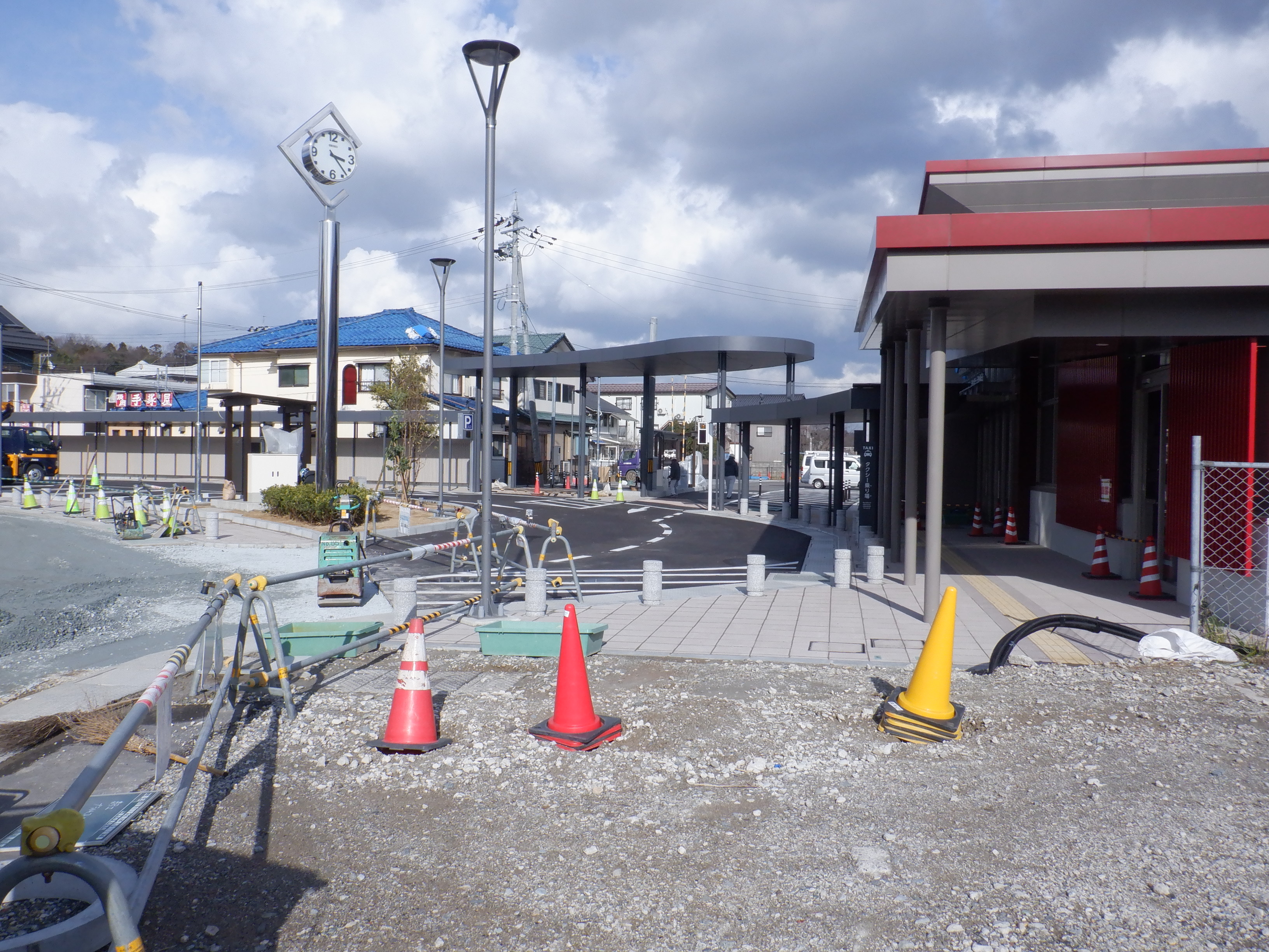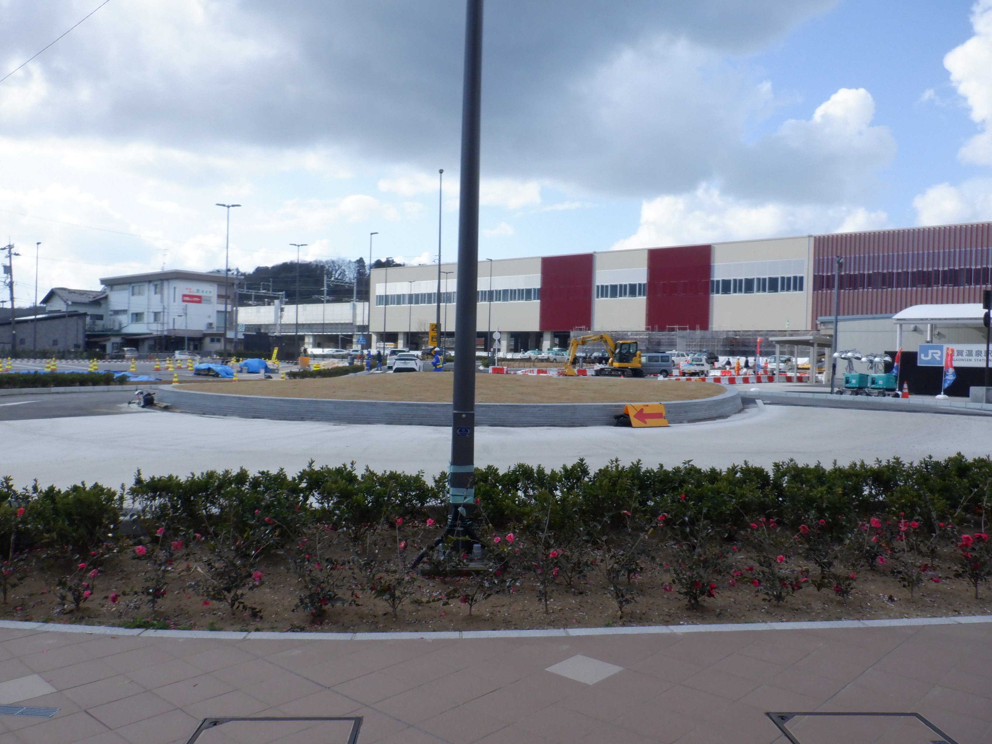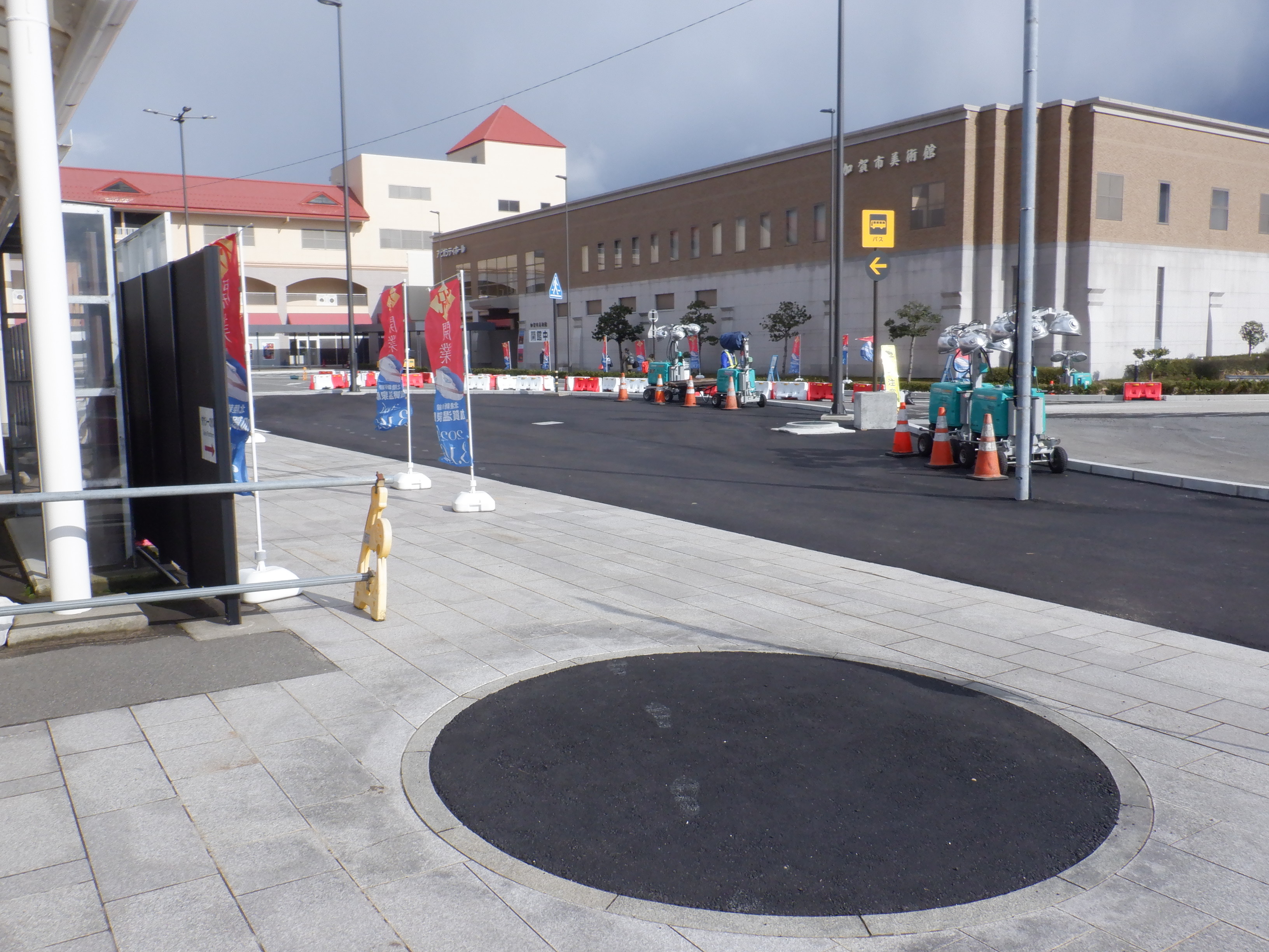 北口の駅前広場整備中の様子。アスファルト工事等広範囲にわたって作業中のため、今回は3枚のみとします。