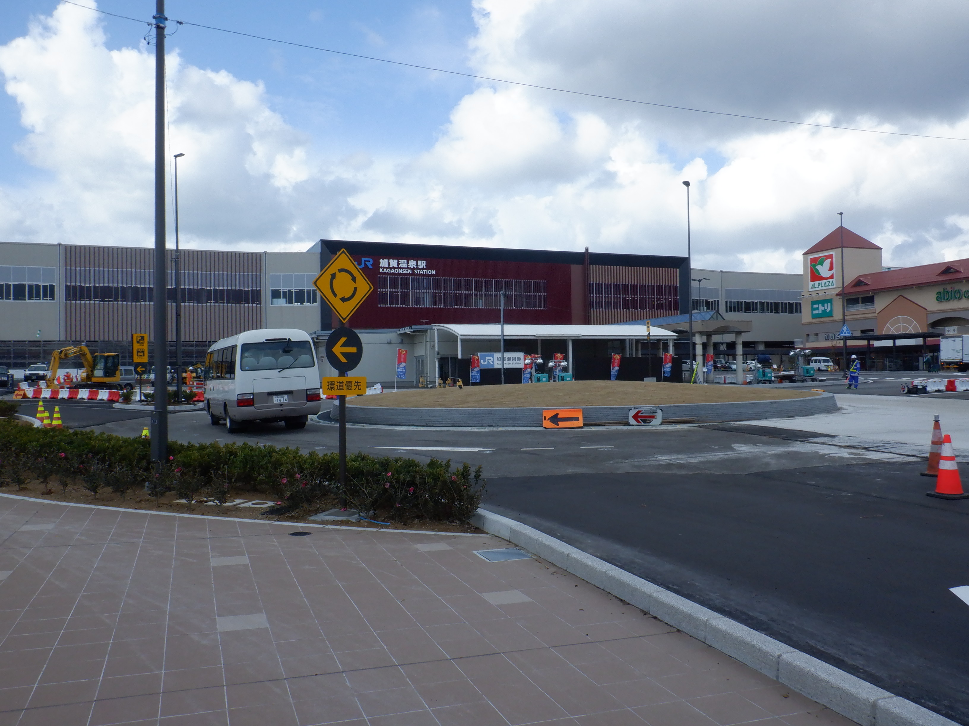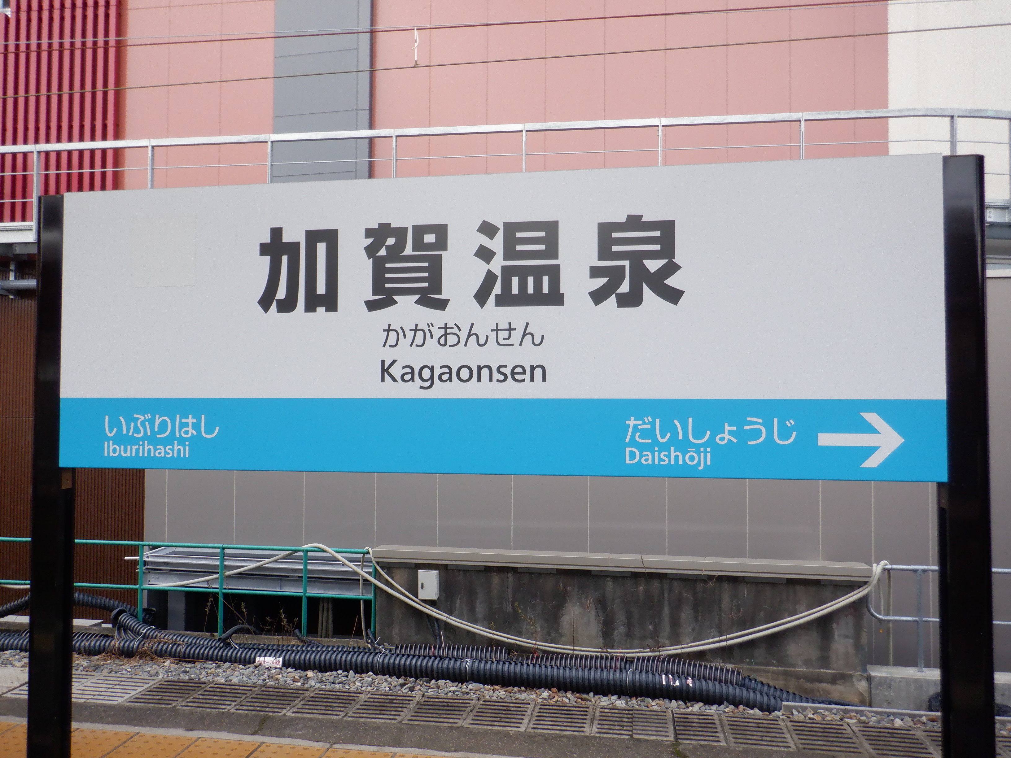 この時点で既に「JR・IR加賀温泉駅」として案内がされています。