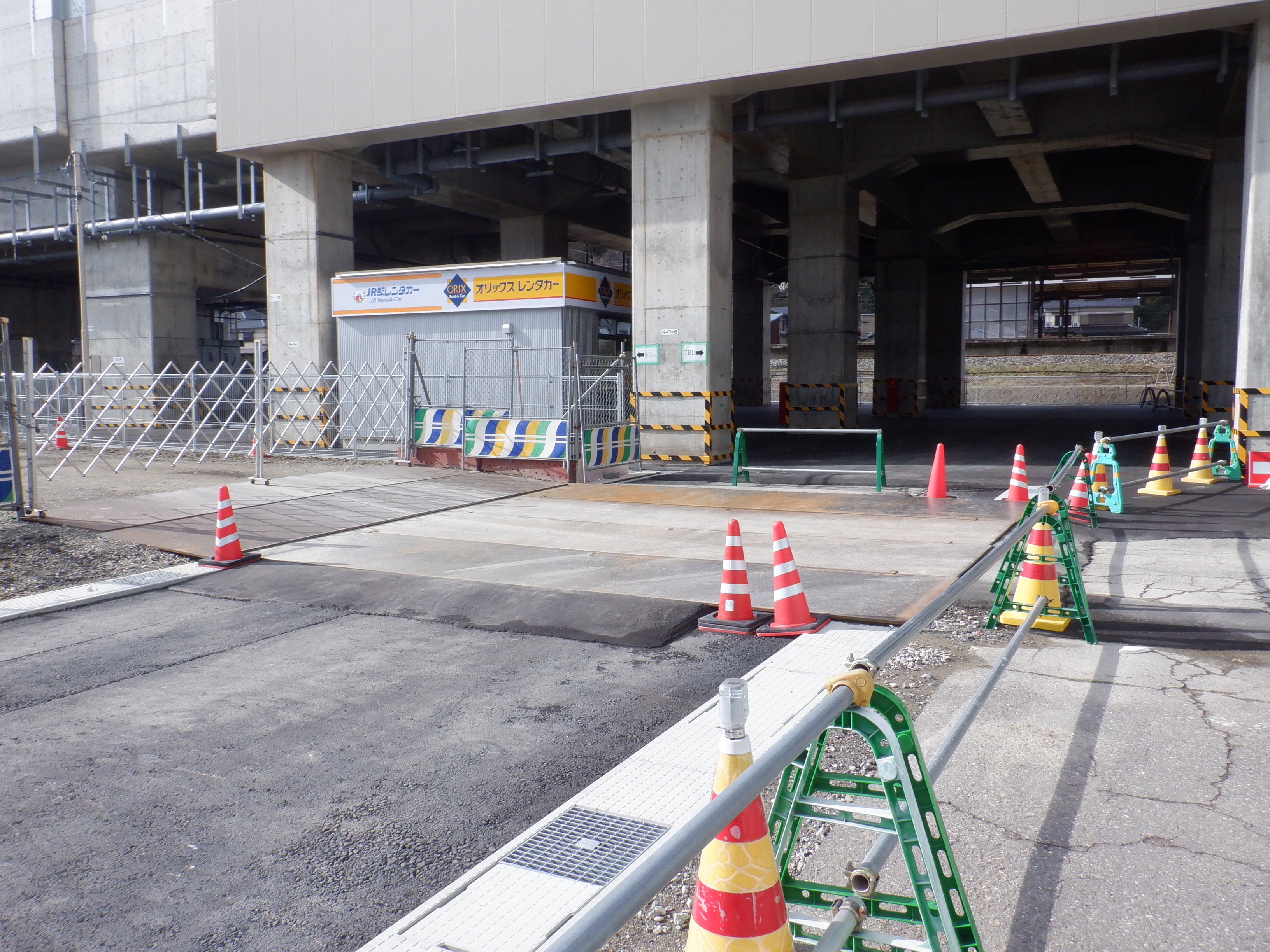 迂回通路から見たレンタカー屋さんの建物となるところ。