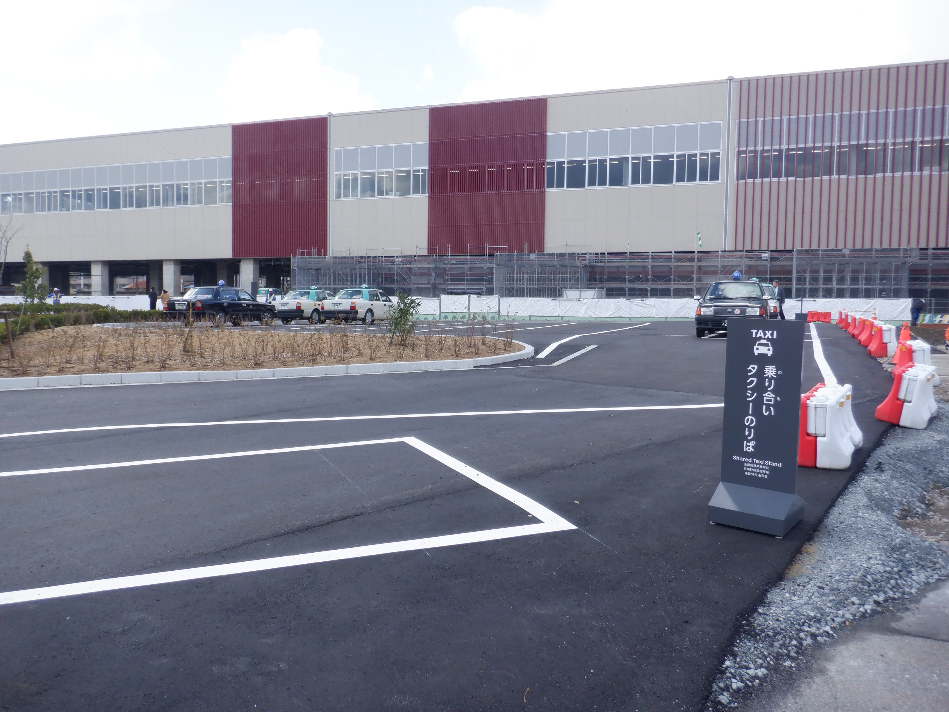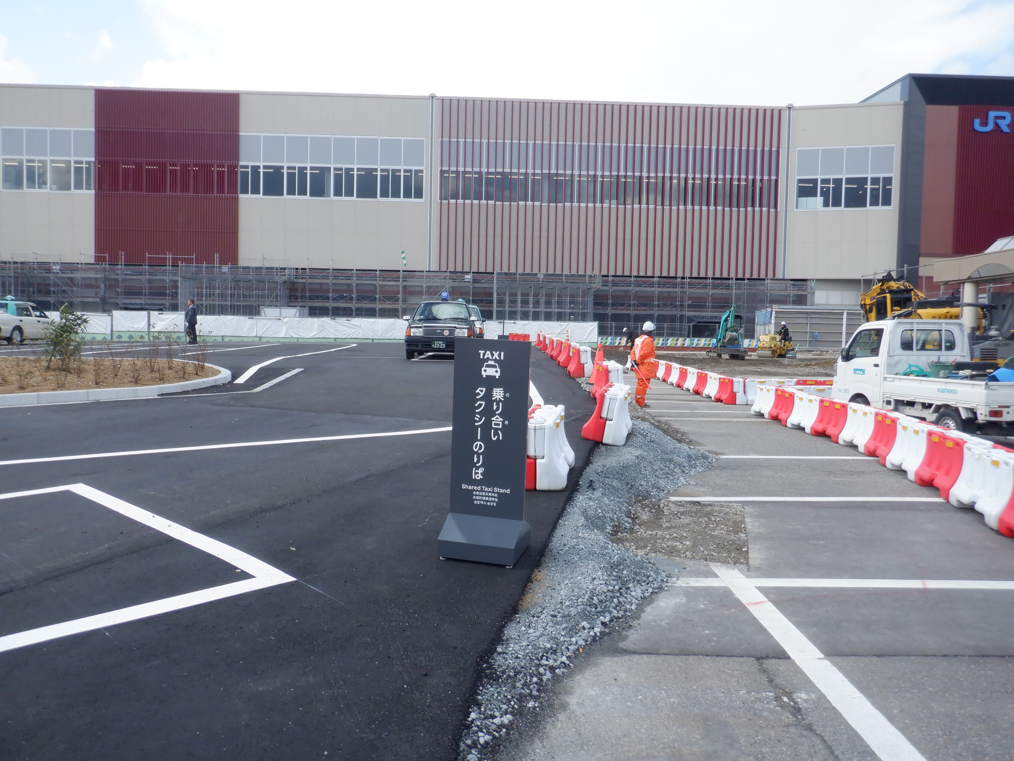 自家用車・タクシー等の乗降場となるところ。仮設タクシー乗降場の整備が進んでいます。