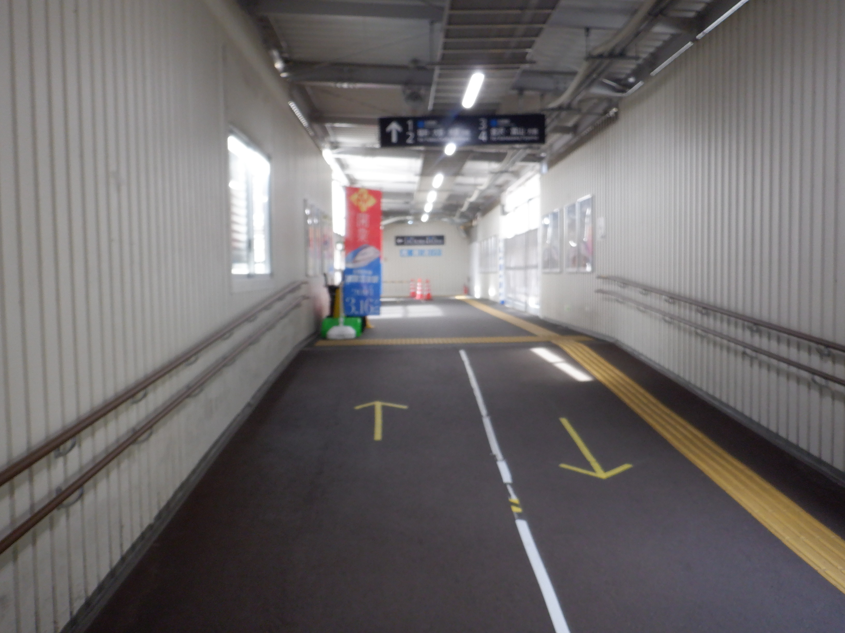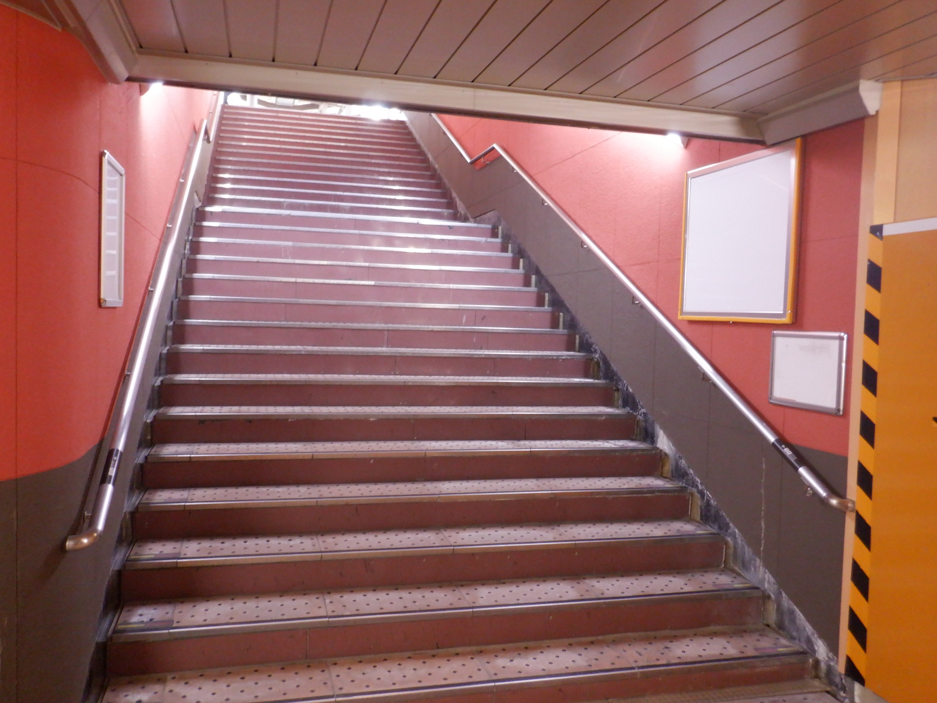 地下道から新幹線のりばコンコースとなるところに上がって行くところ。