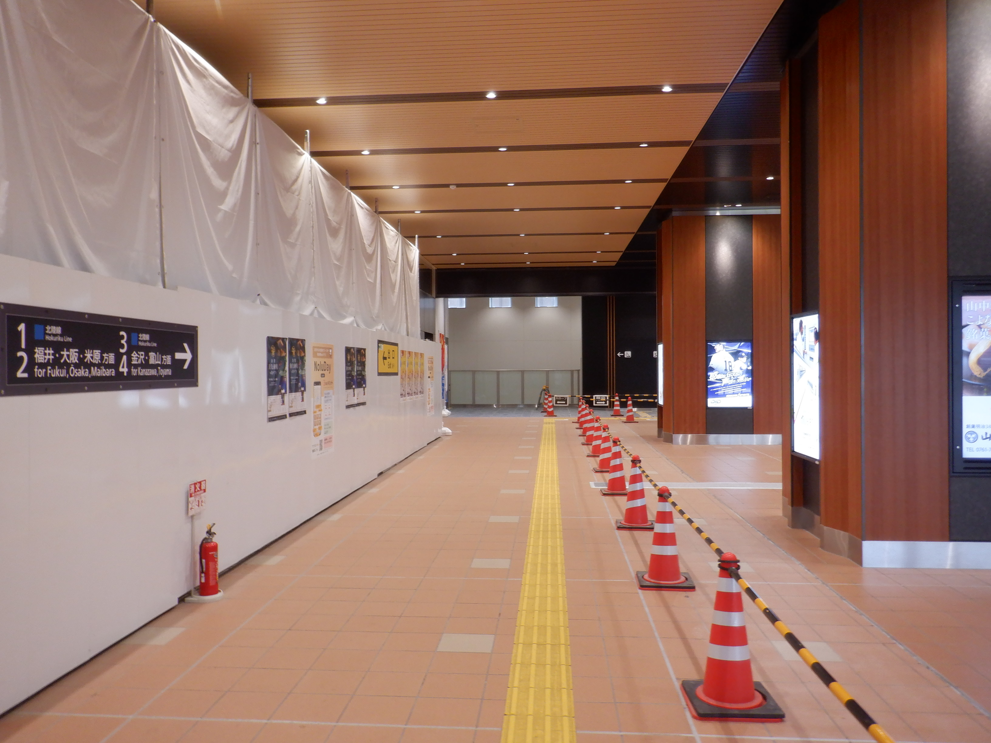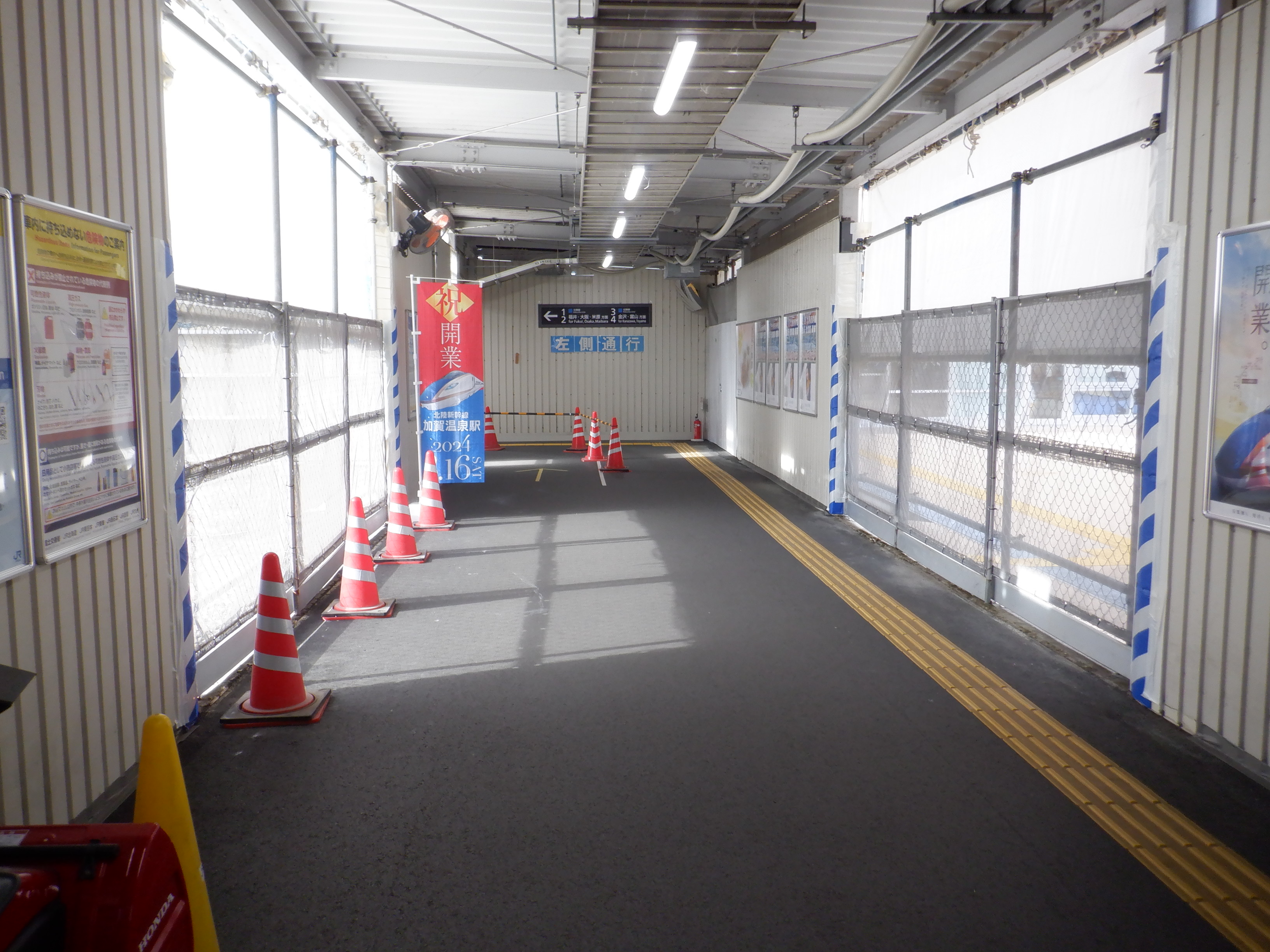 仮設通路となっている新幹線のりばコンコースとなるところ。