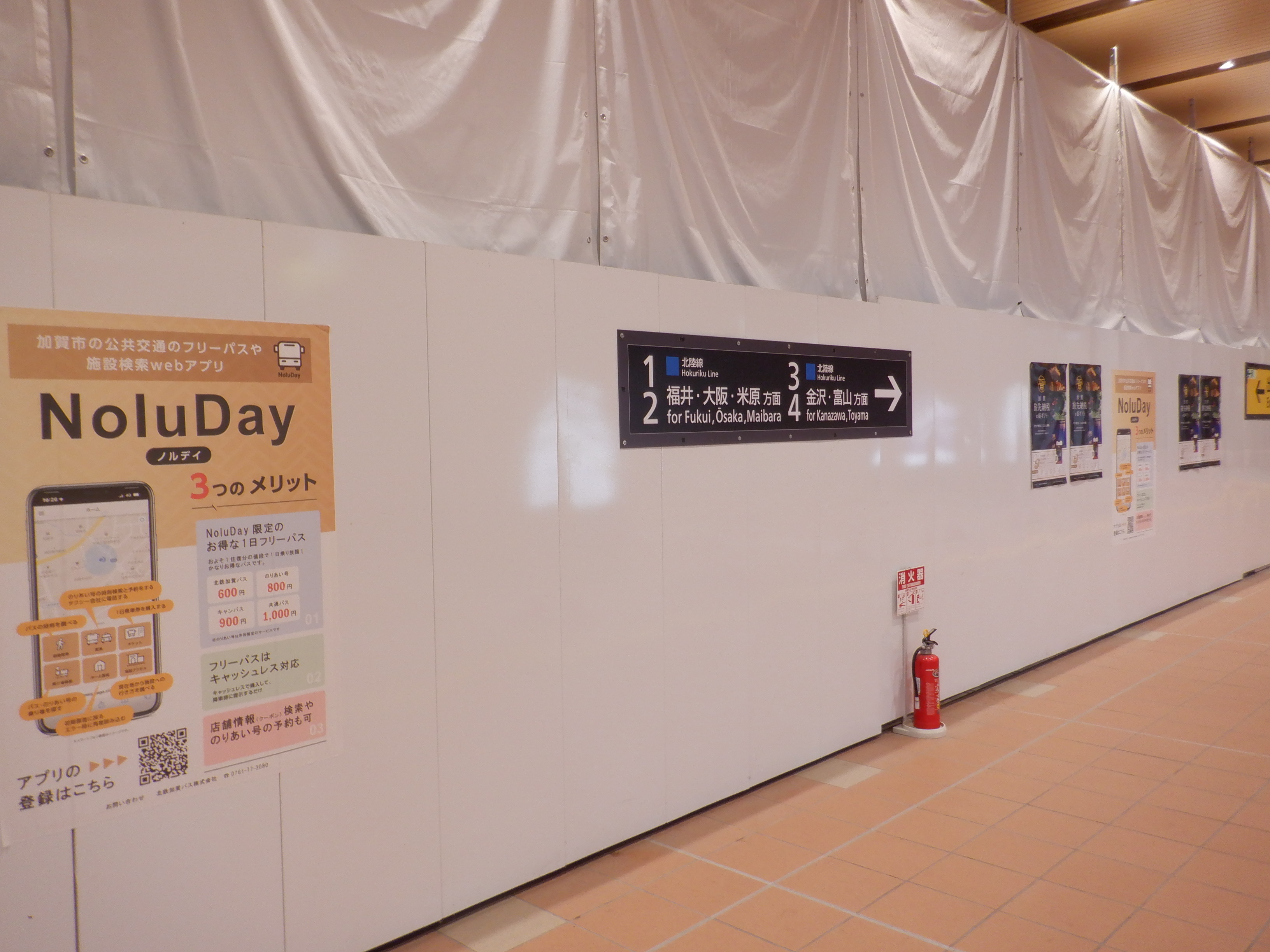 仮設駅舎内のコンビニはこの翌日をもって閉店となりました。この後、高架下部都市施設(コンビニ・待合室等)である「ゆのまち加賀」が開業する2024年12月まで駅構内にコンビニ等がなくなります。(新幹線改札横のカフェ等が開業します)