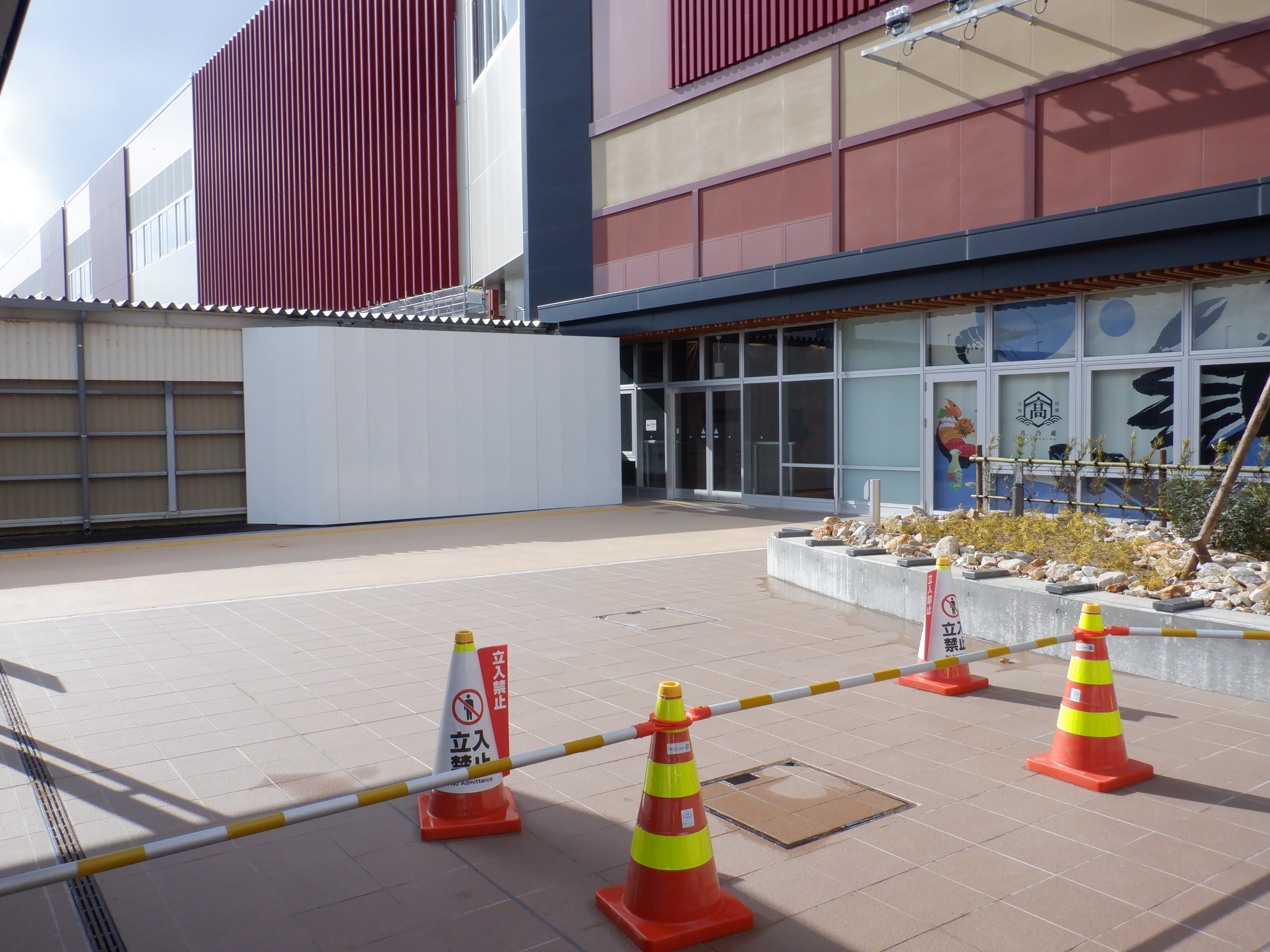 アルプラザとアビオシティホールの間の接続部分は囲いはされていますがきれいに撤去されたようです。