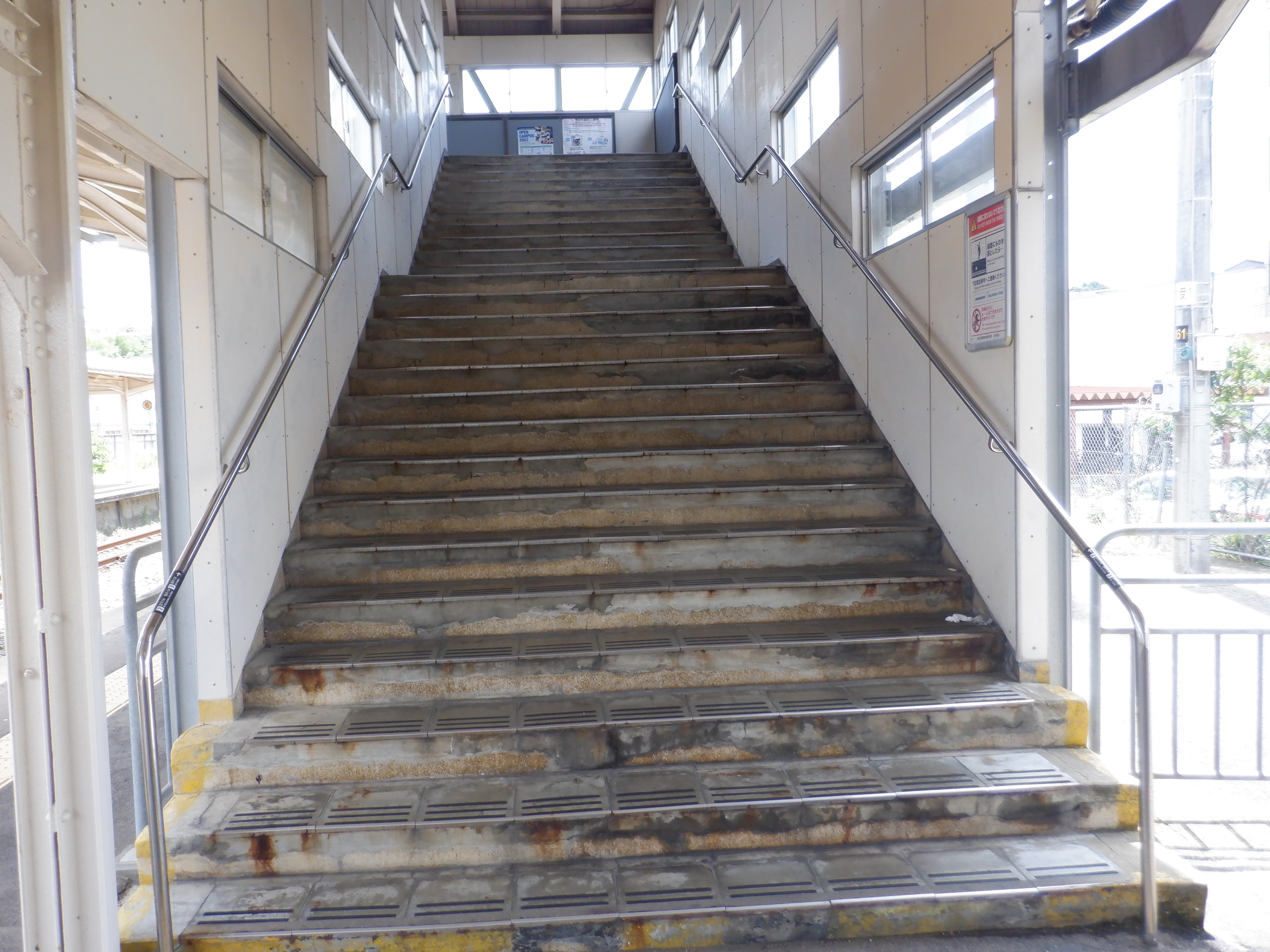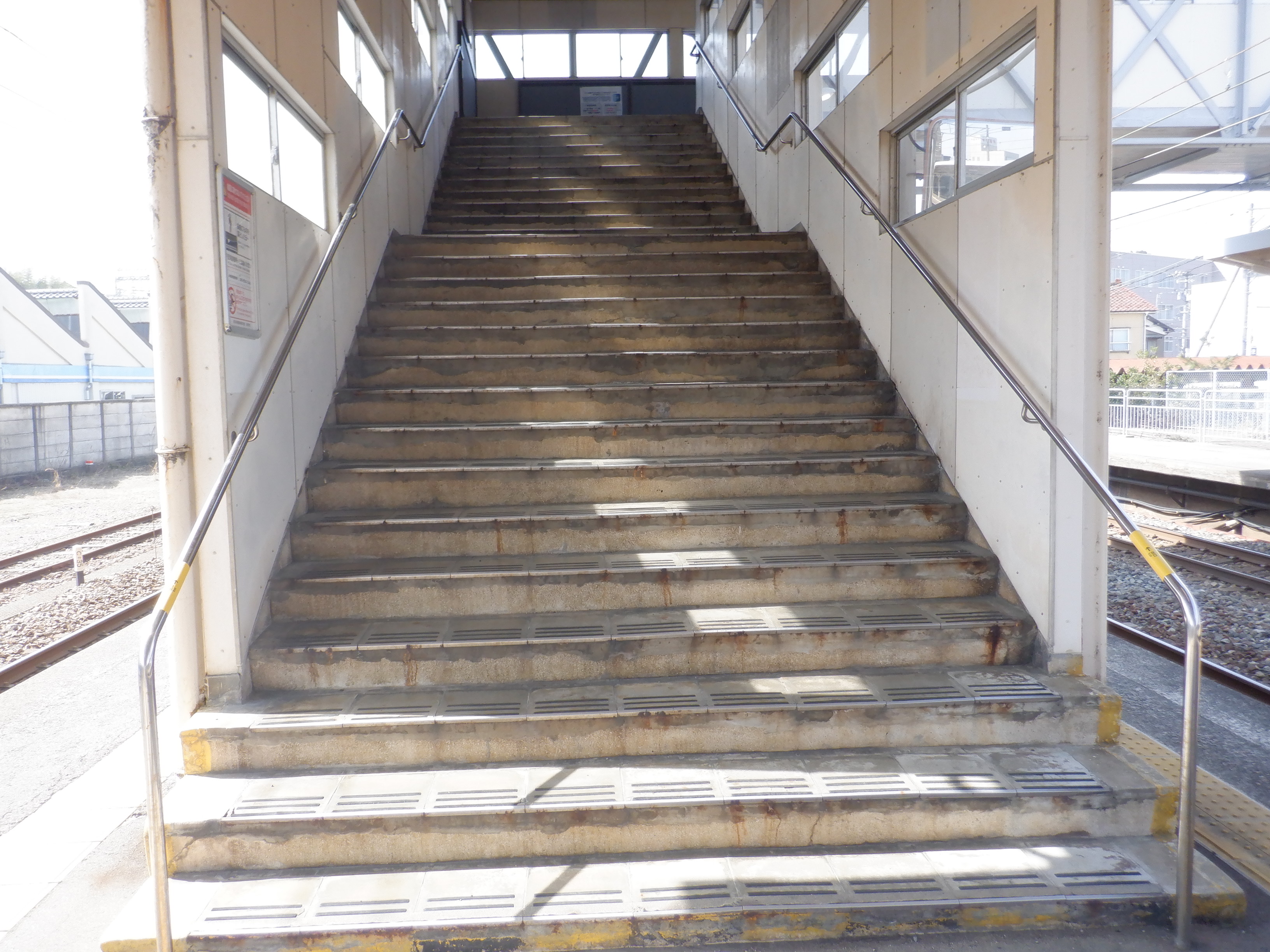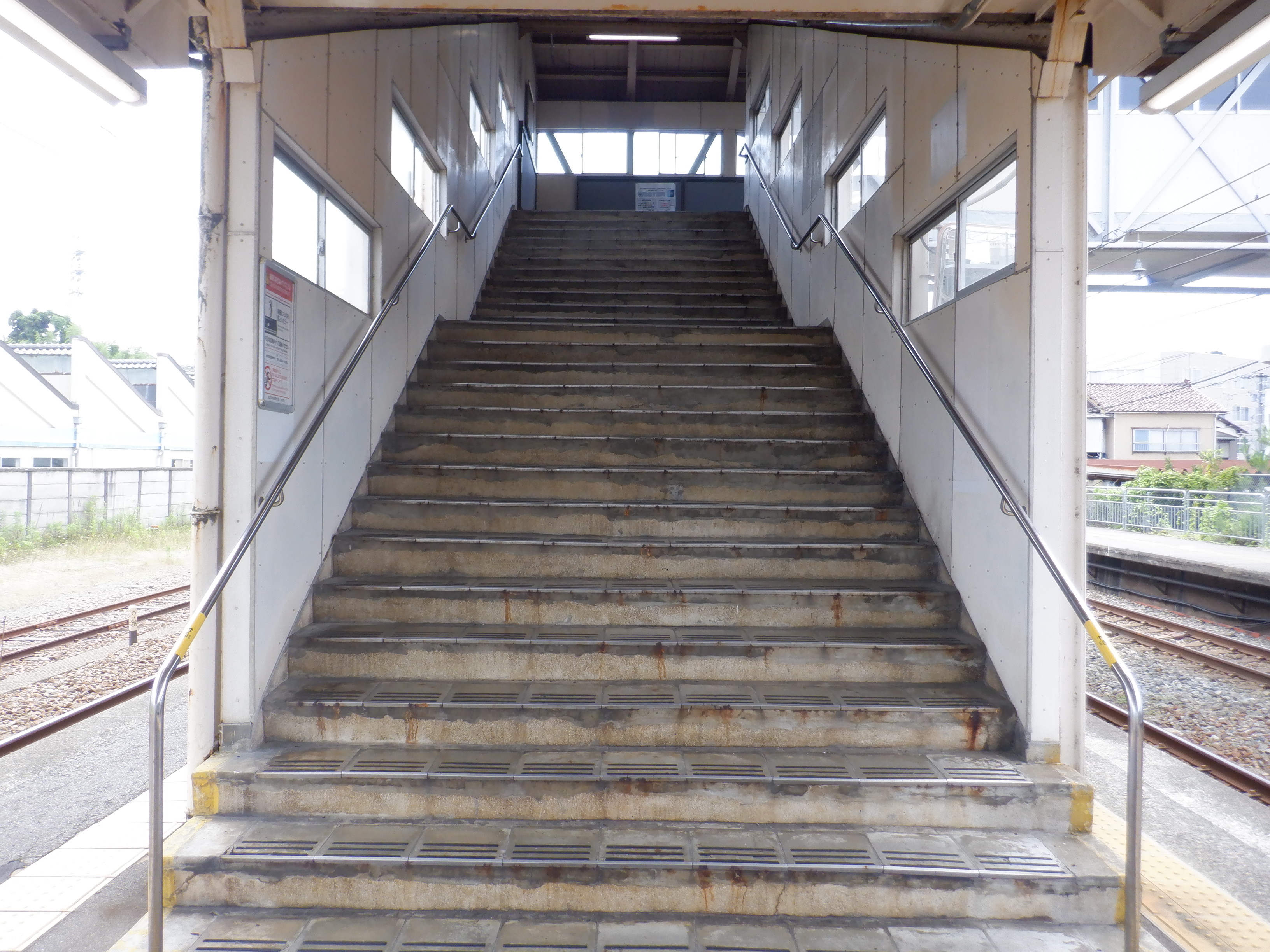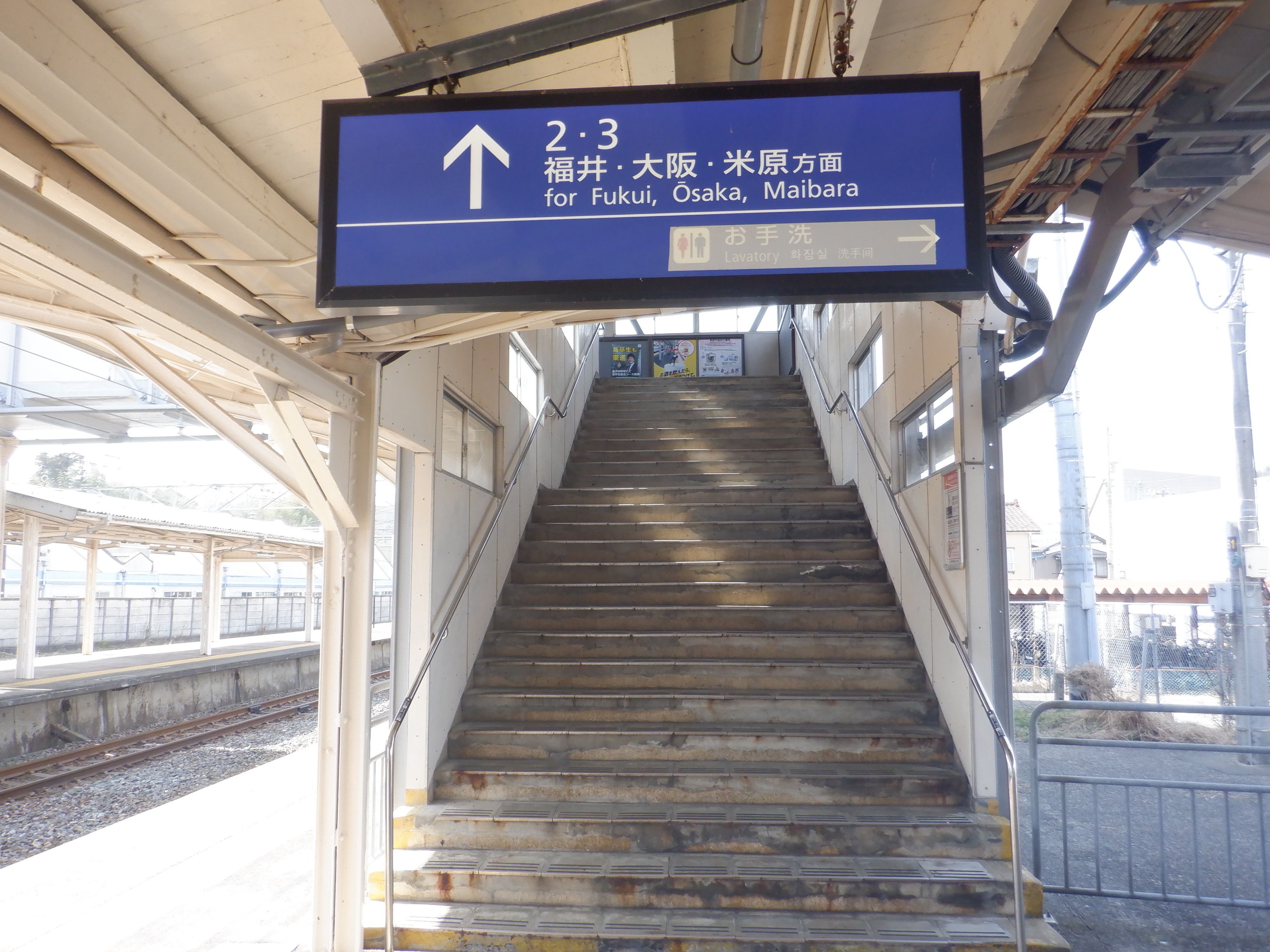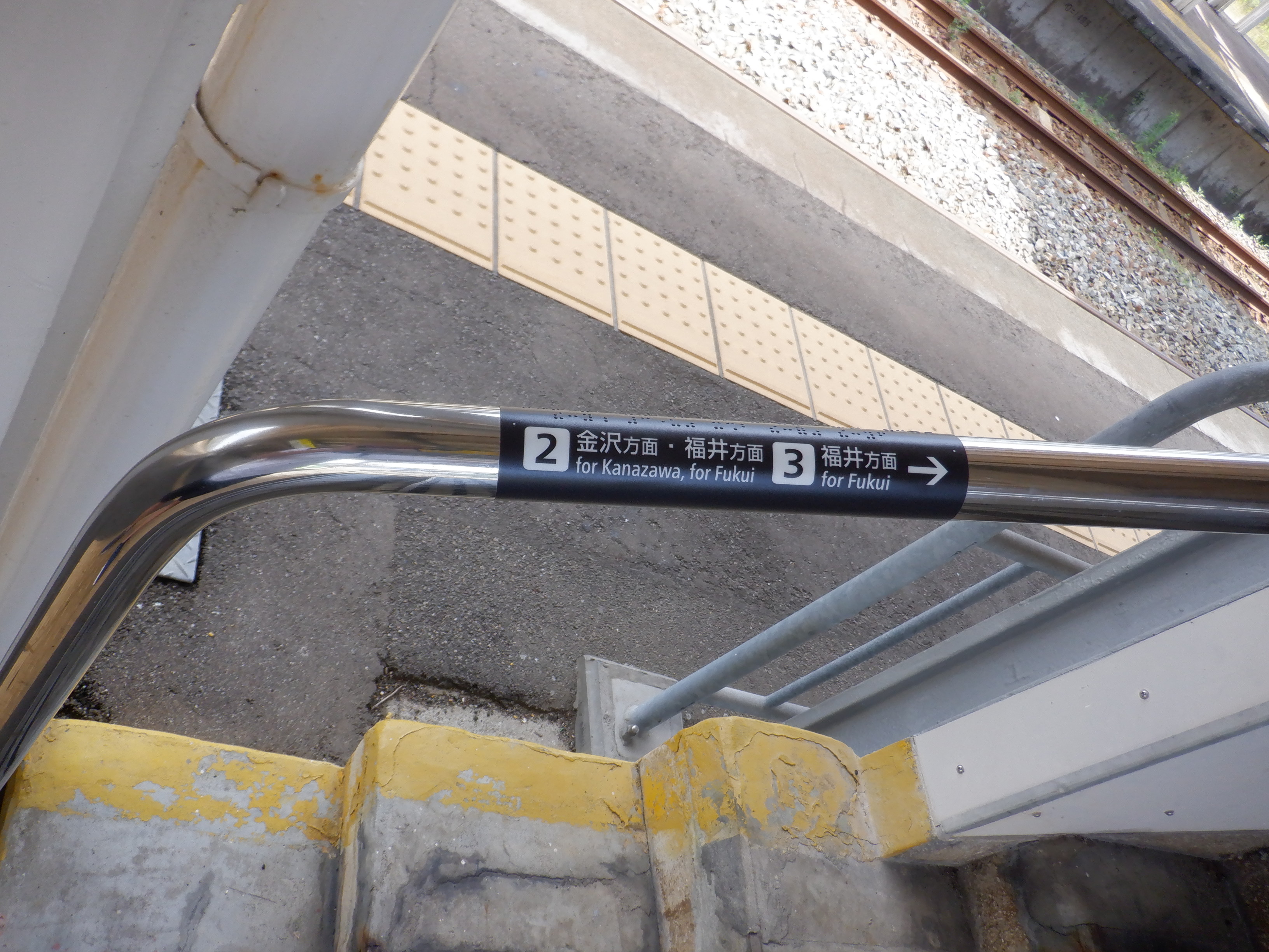 2・3番のりば跨線橋階段と階段の案内看板両面。