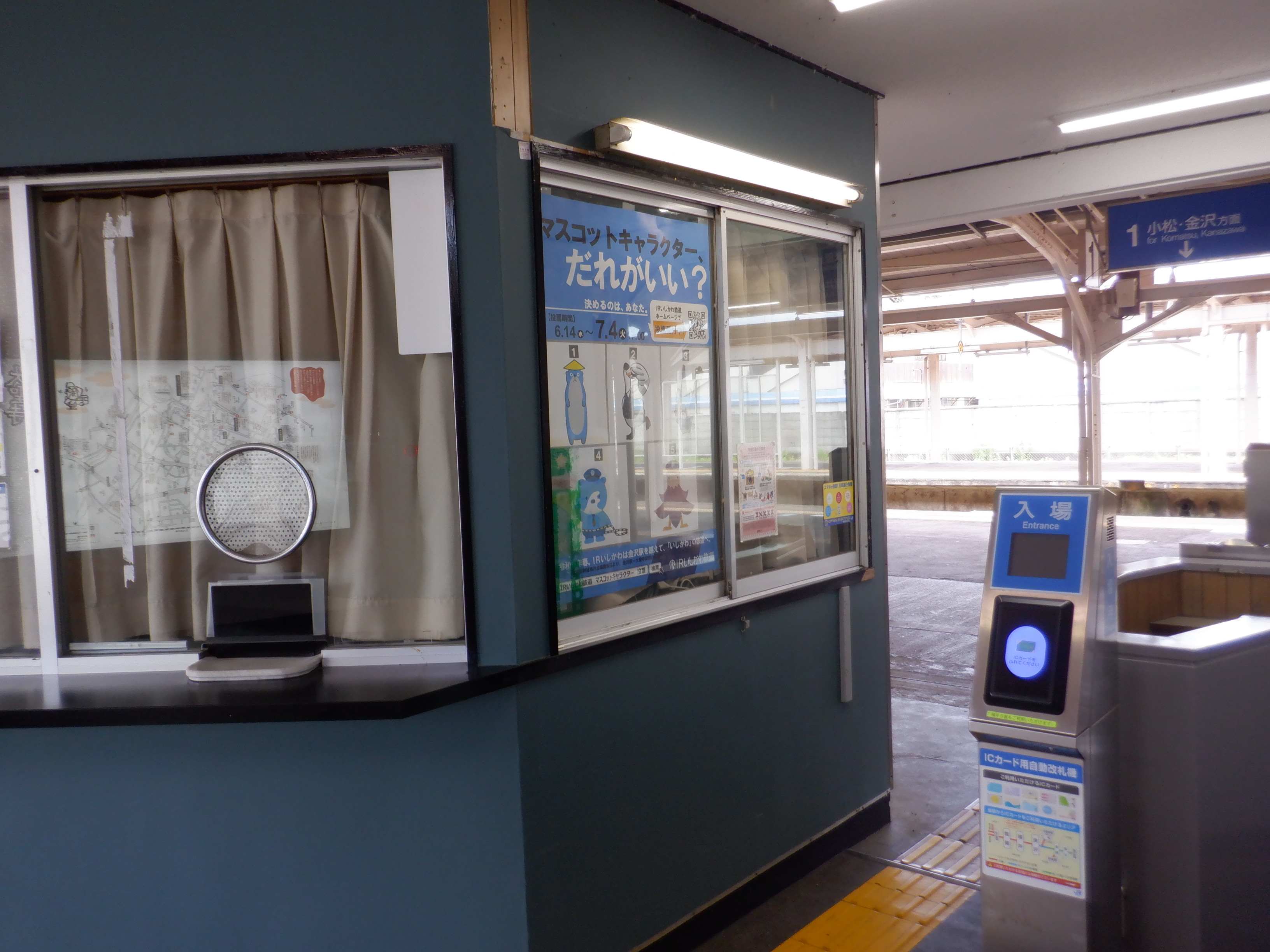 改札口のところにはIRいしかわ鉄道のマスコットキャラクター投票のポスターが貼られており、この駅もIRの駅になるという実感が出てきました。