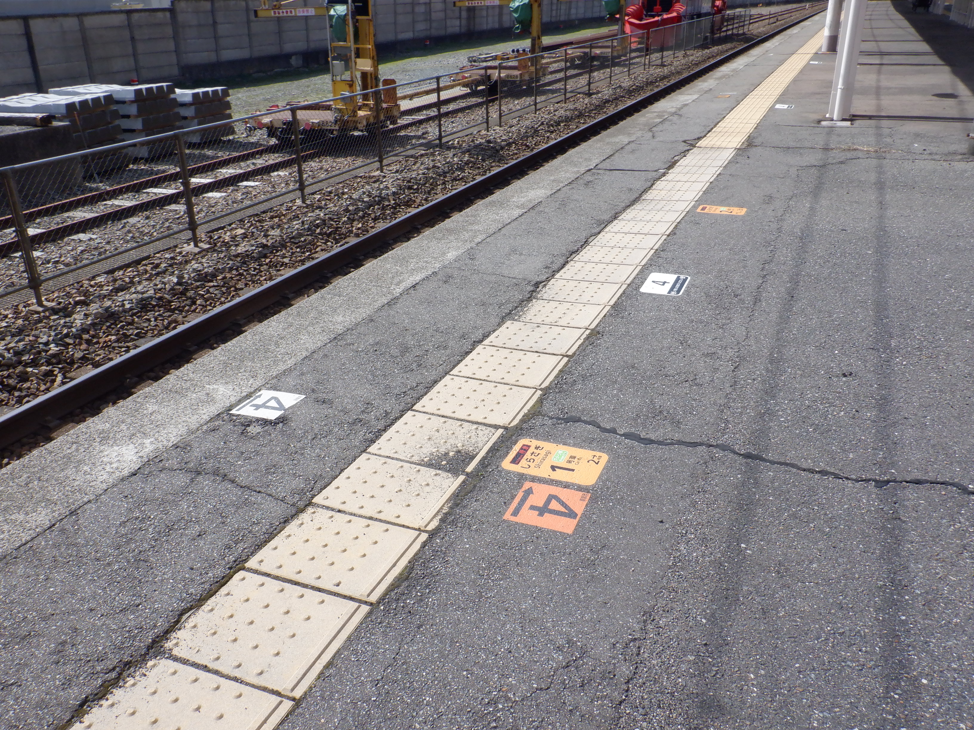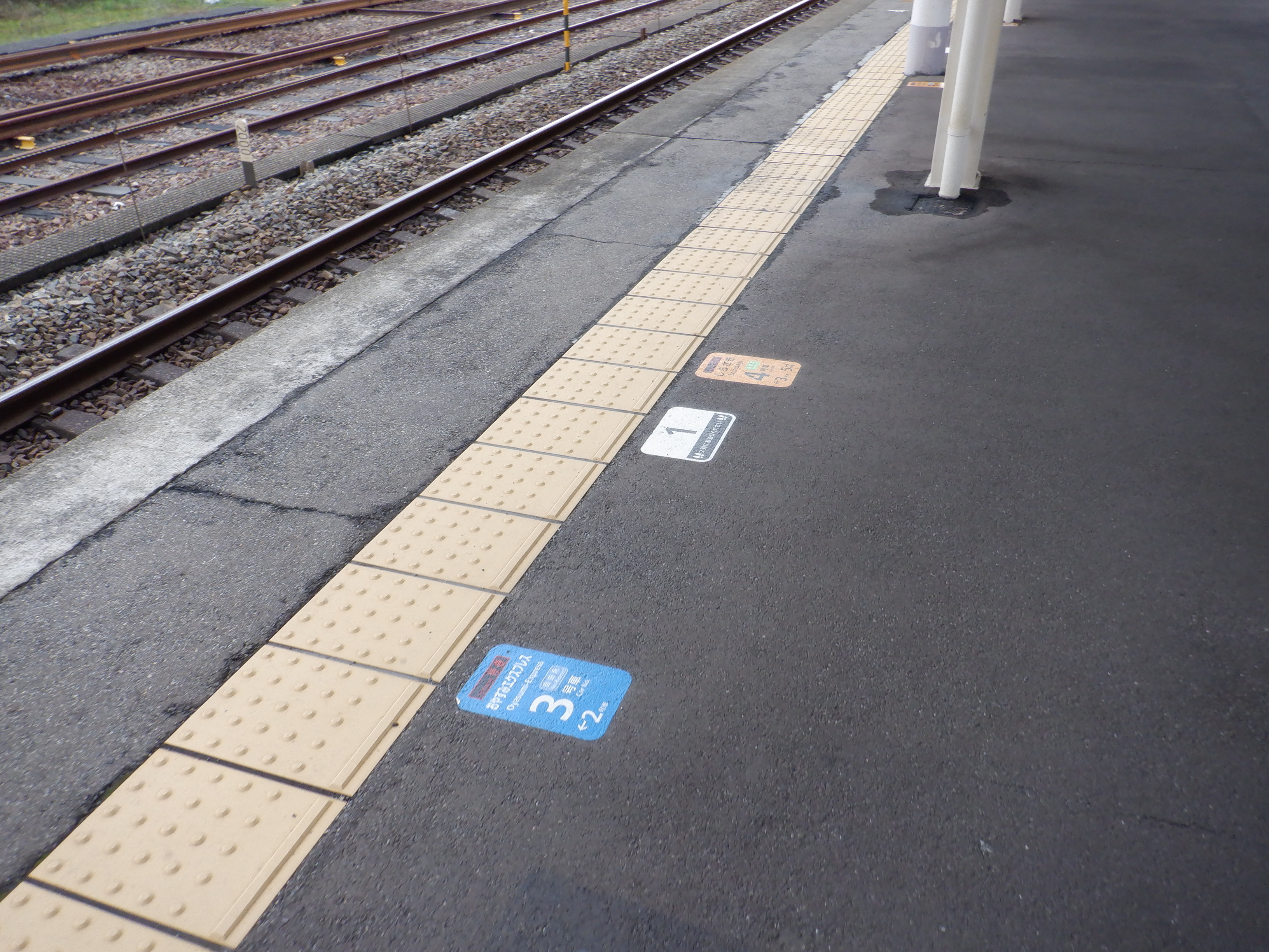 3番のりばの4両編成最後尾・乗車位置案内4としらさぎの乗車位置案内。