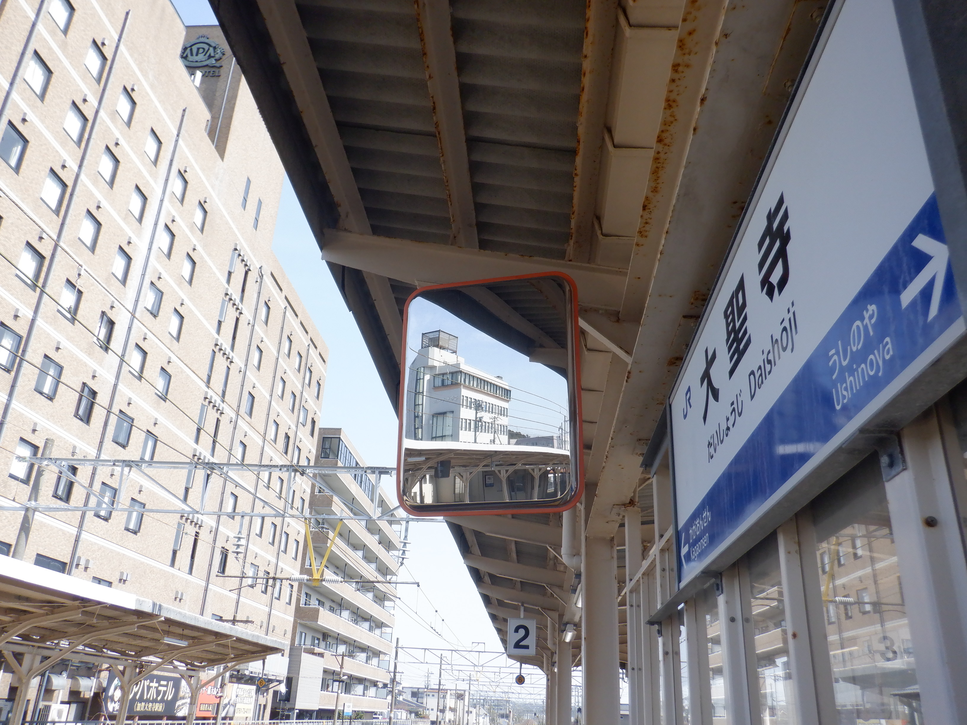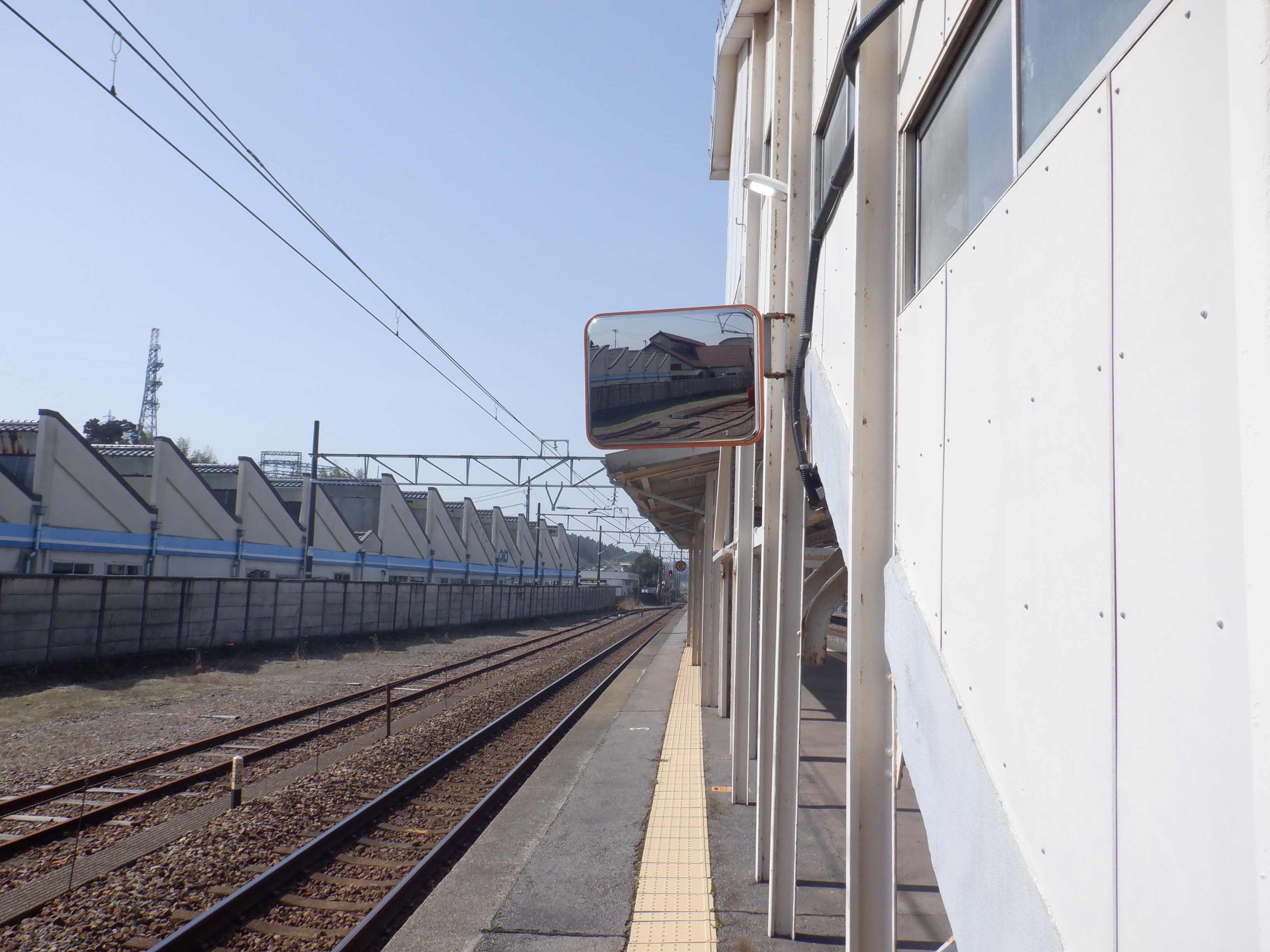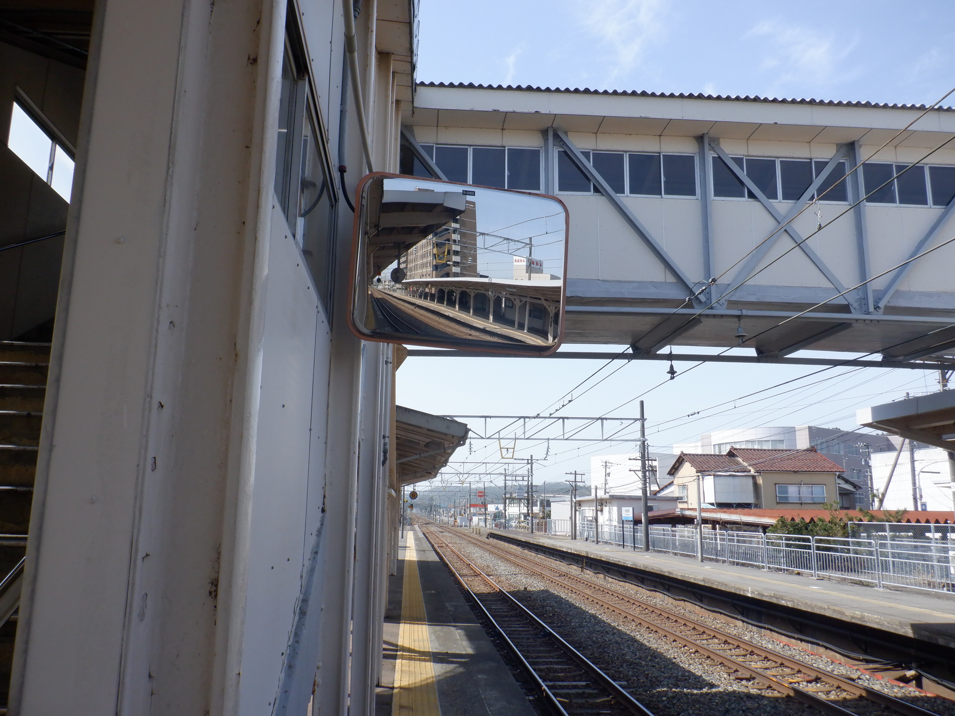 2番のりば牛ノ谷駅側のワンマンミラー。