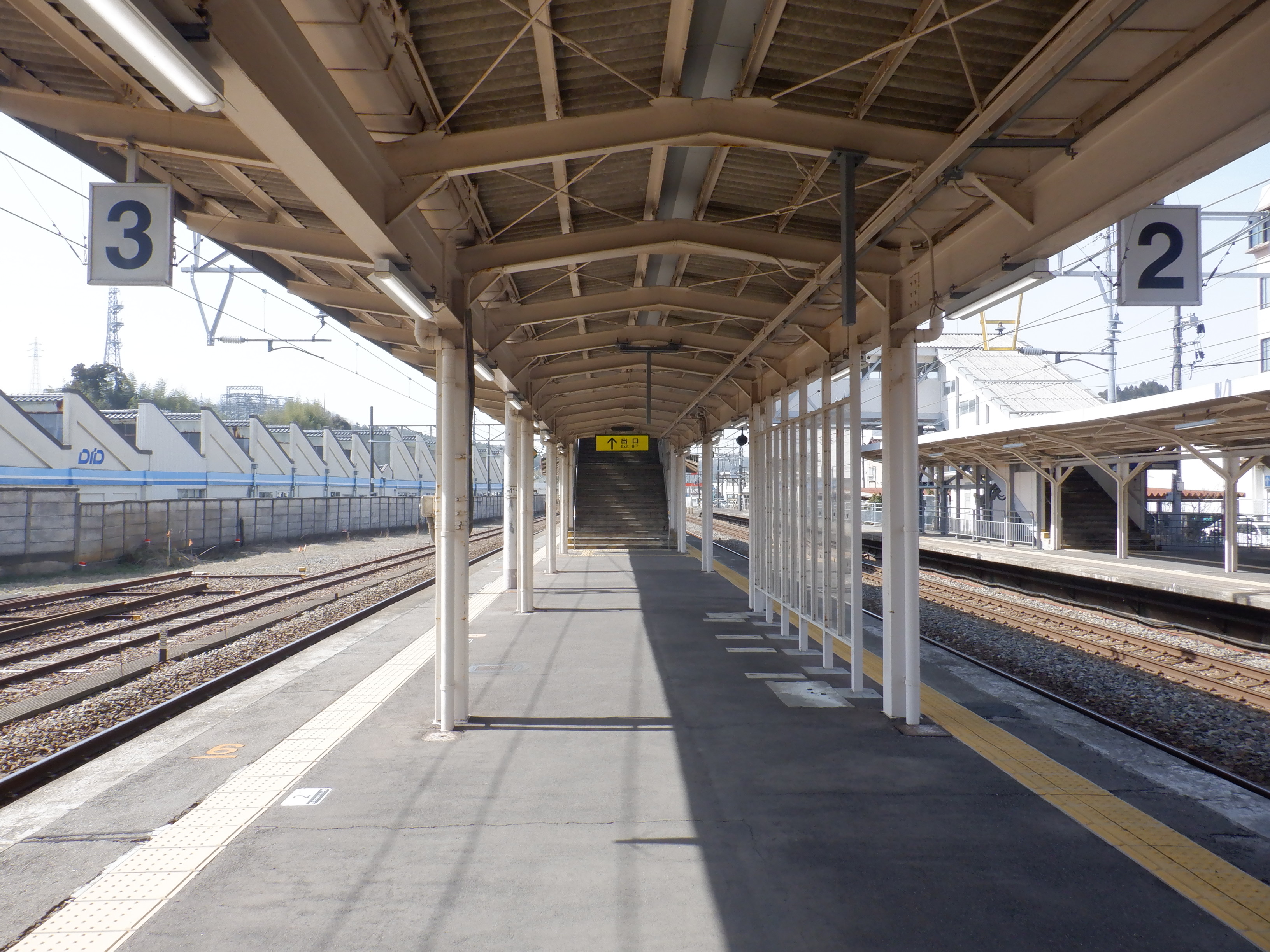 2・3番のりば牛ノ谷駅側とそこから見た様子。