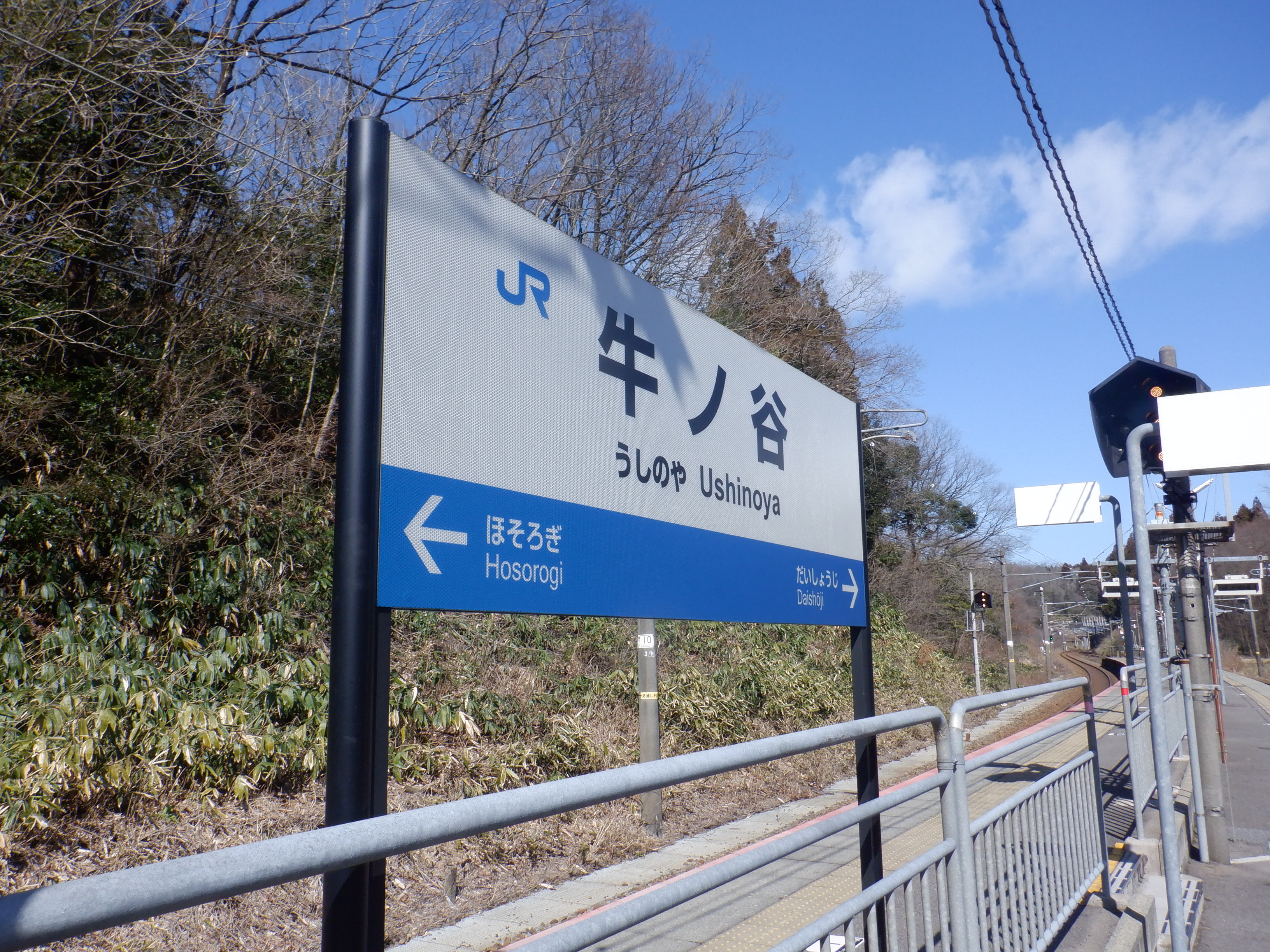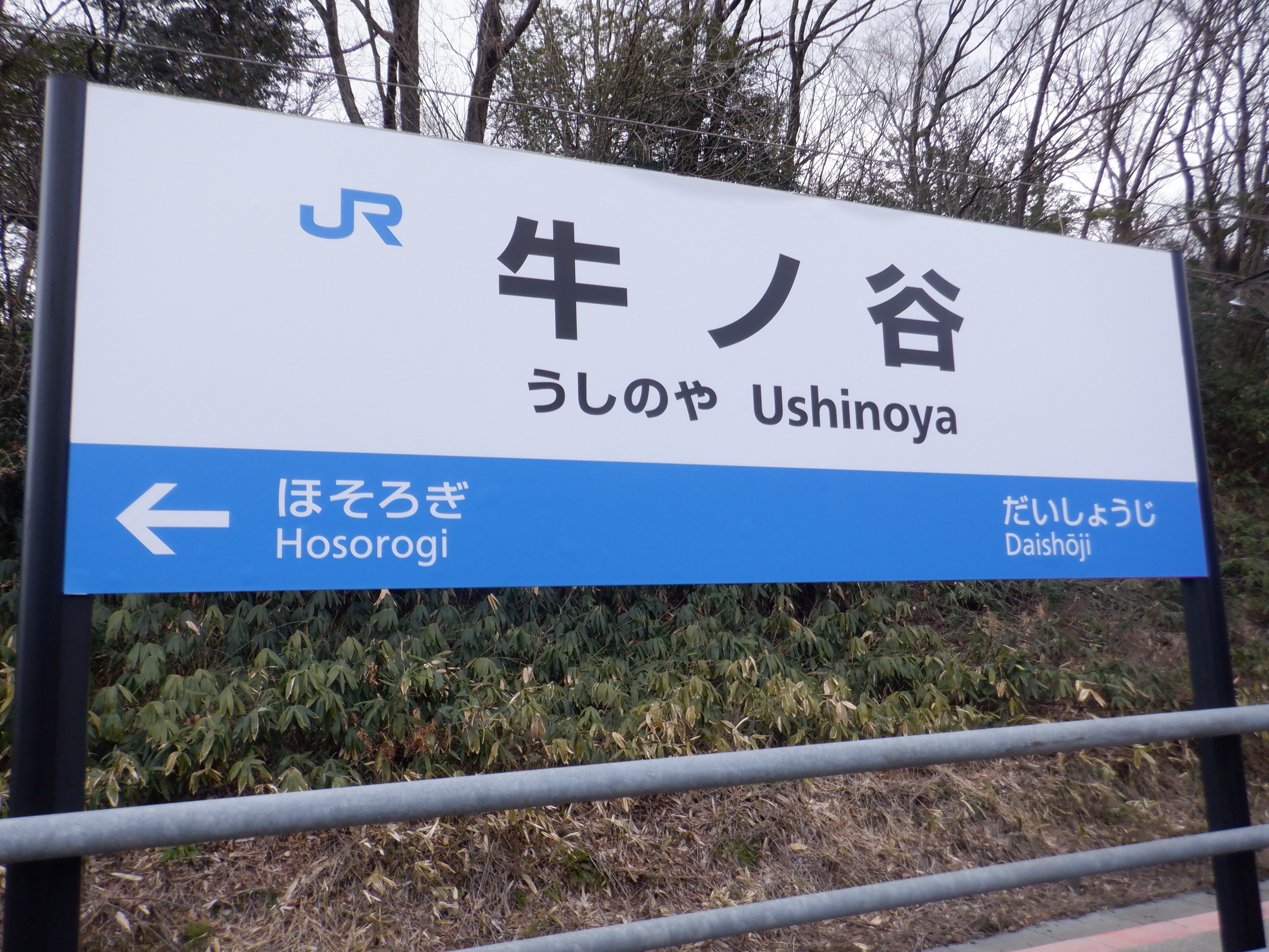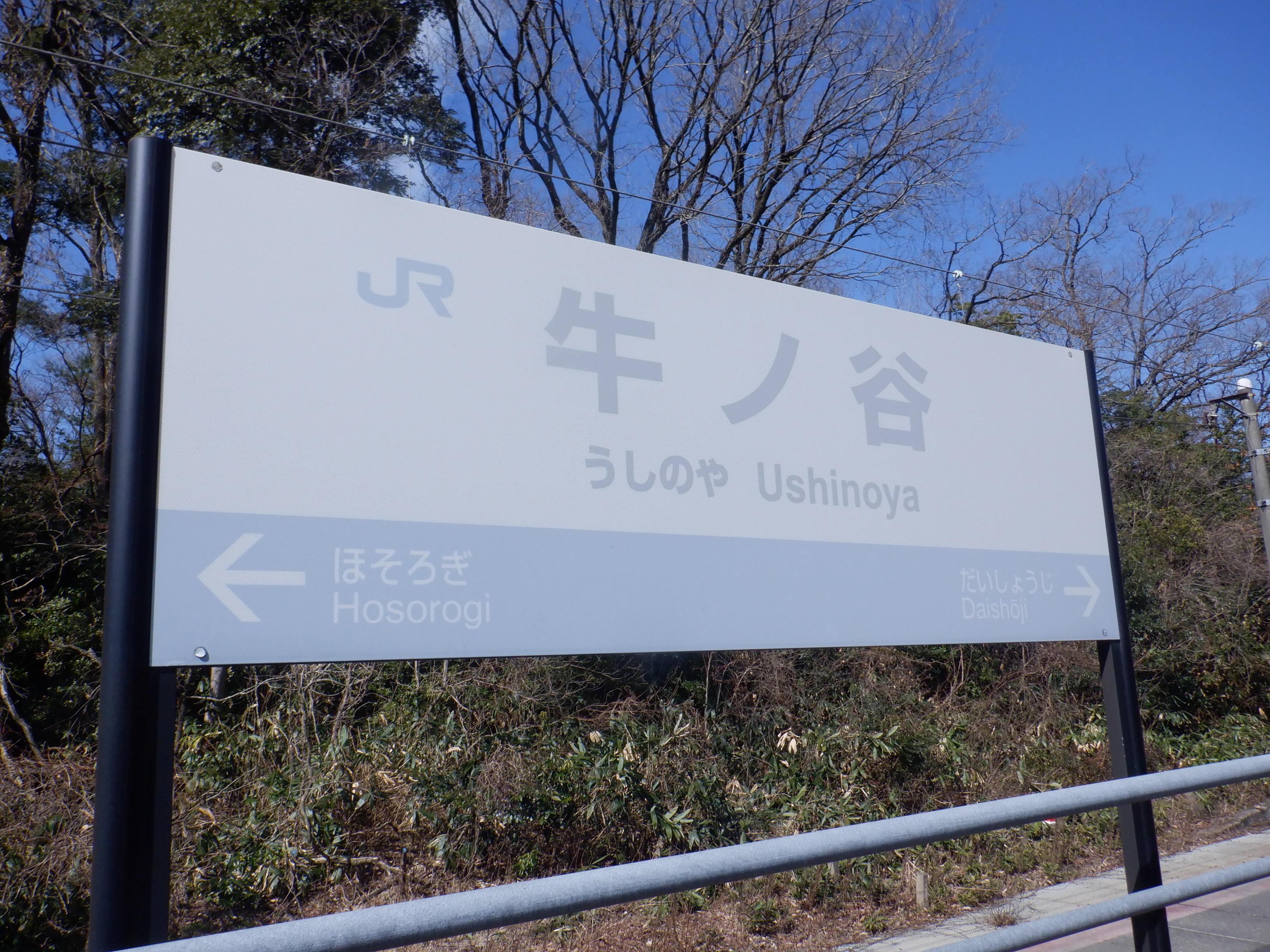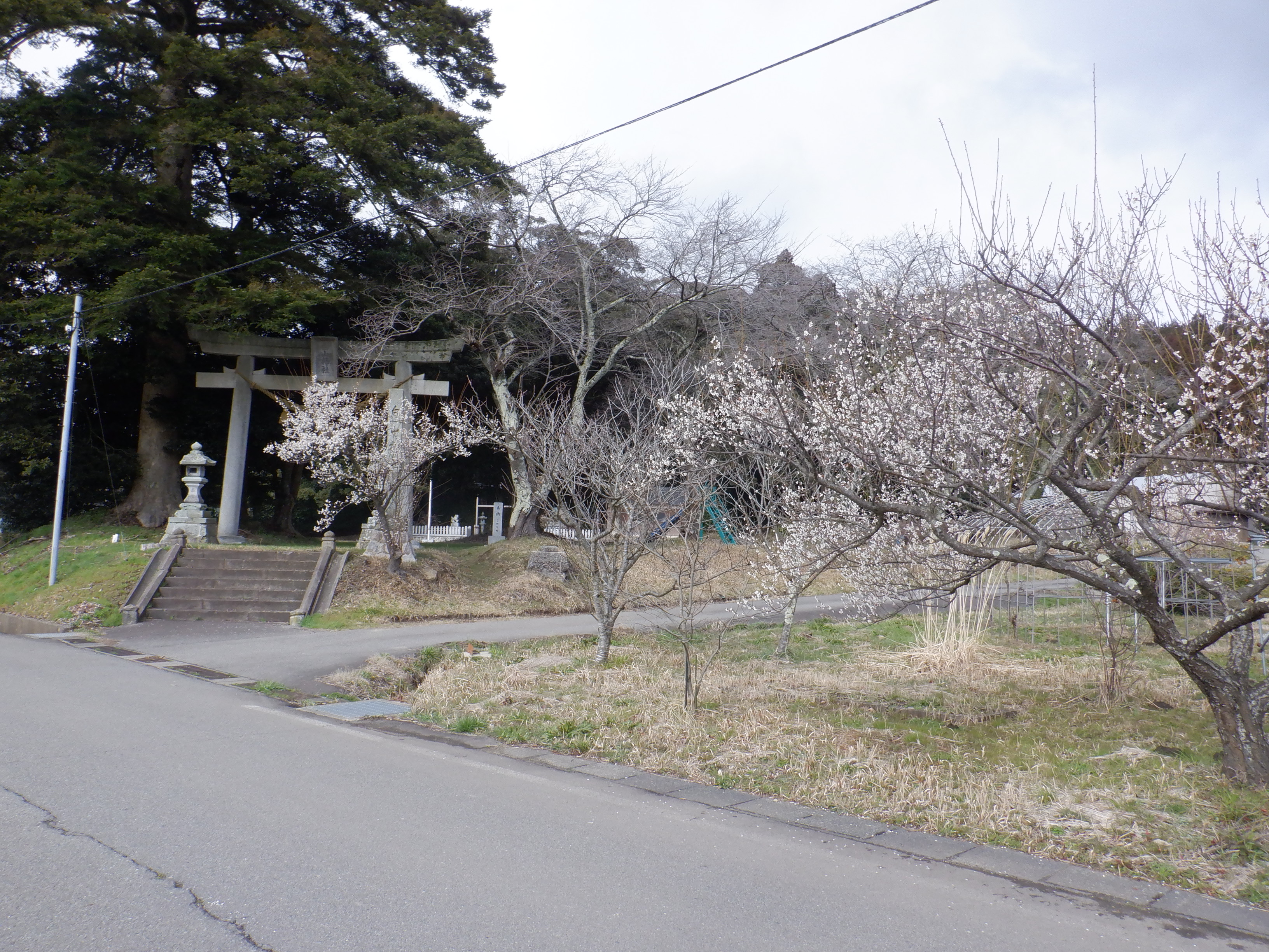 細呂木駅から歩いてきたため、駅入口の青看板と神社。