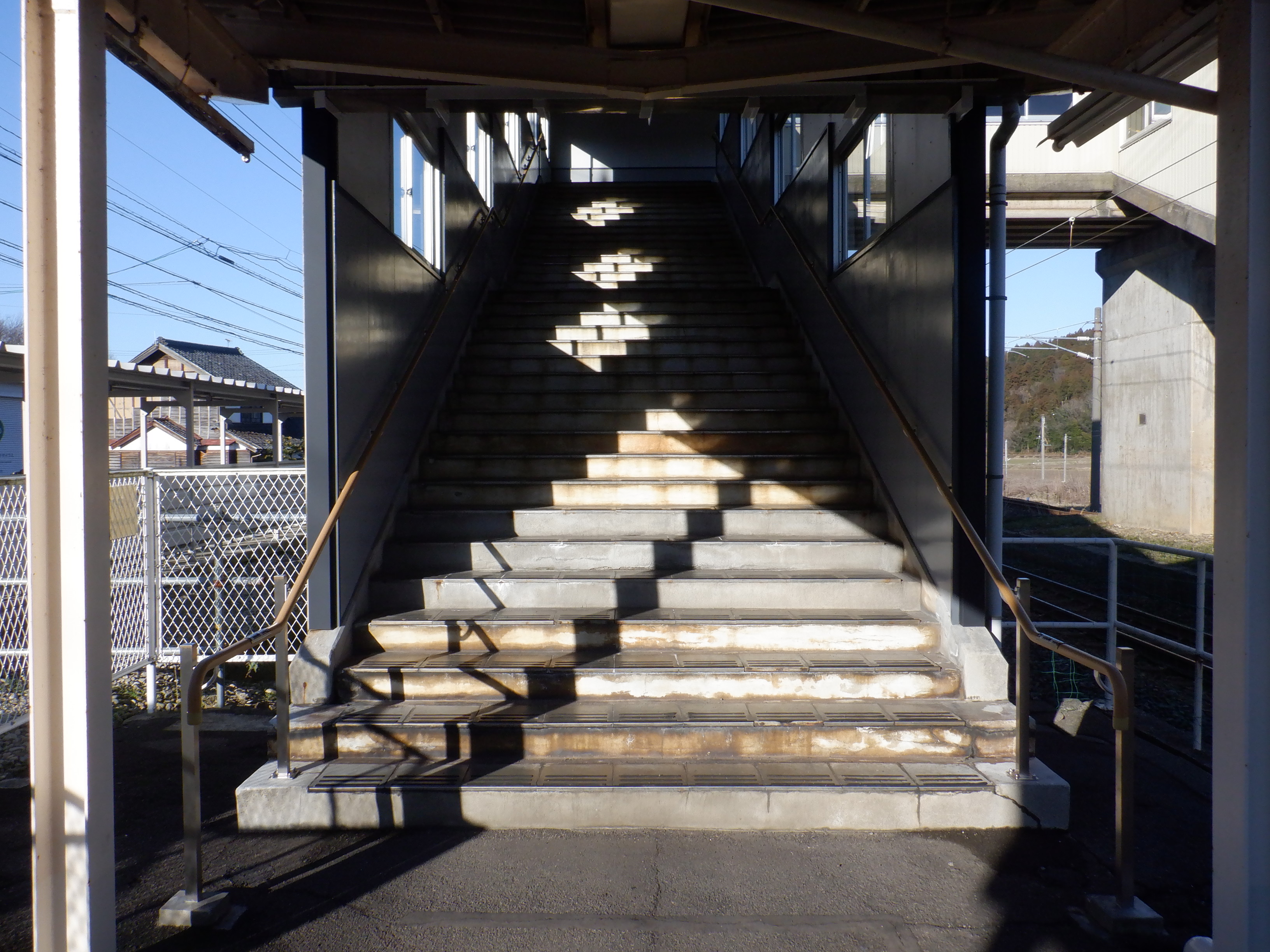 駅舎側の跨線橋階段。