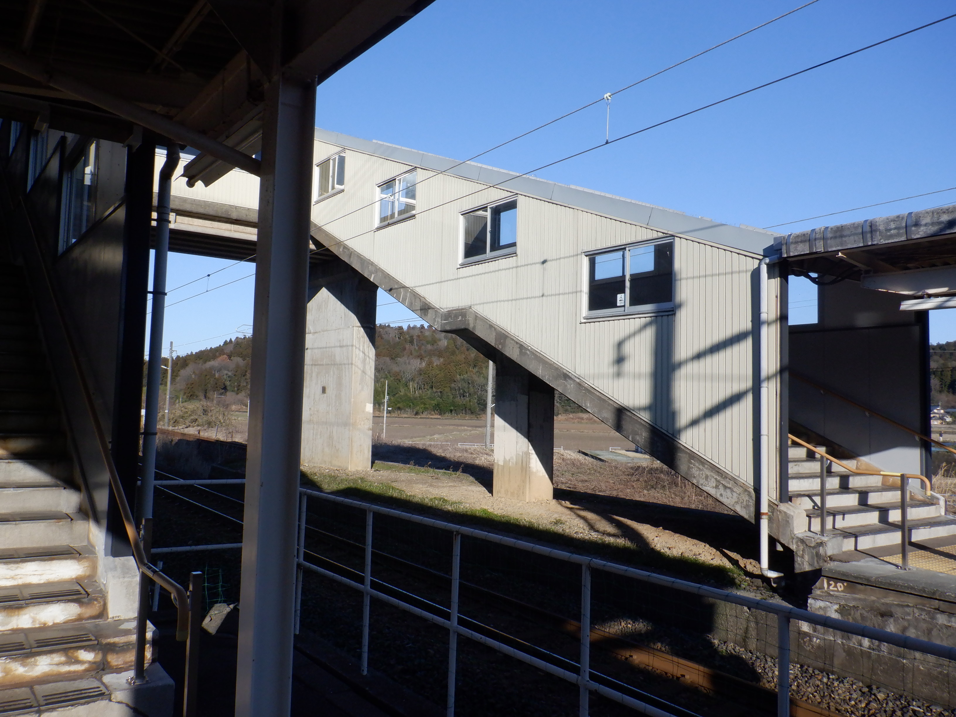 駅舎側から見たホーム側の跨線橋。