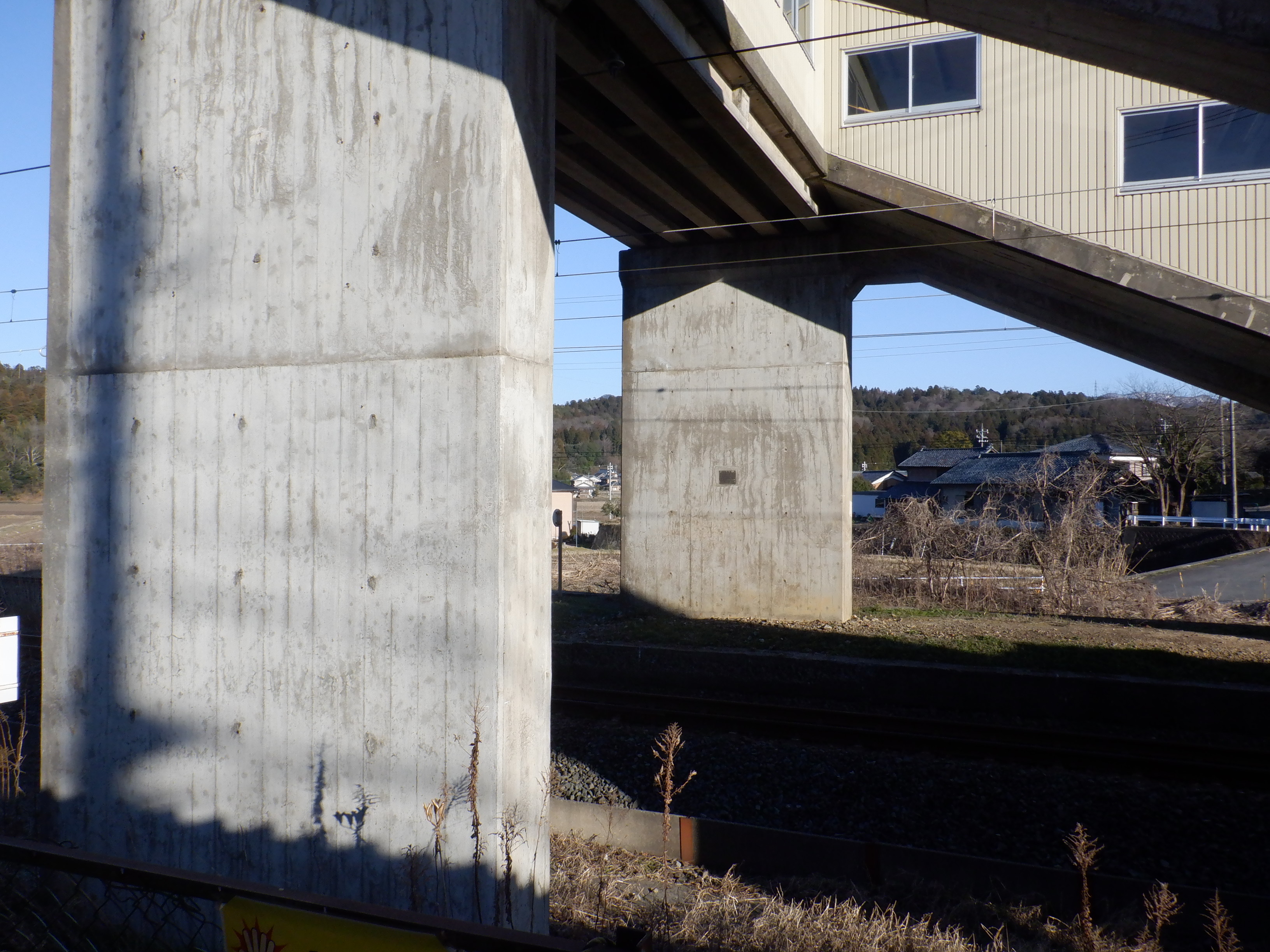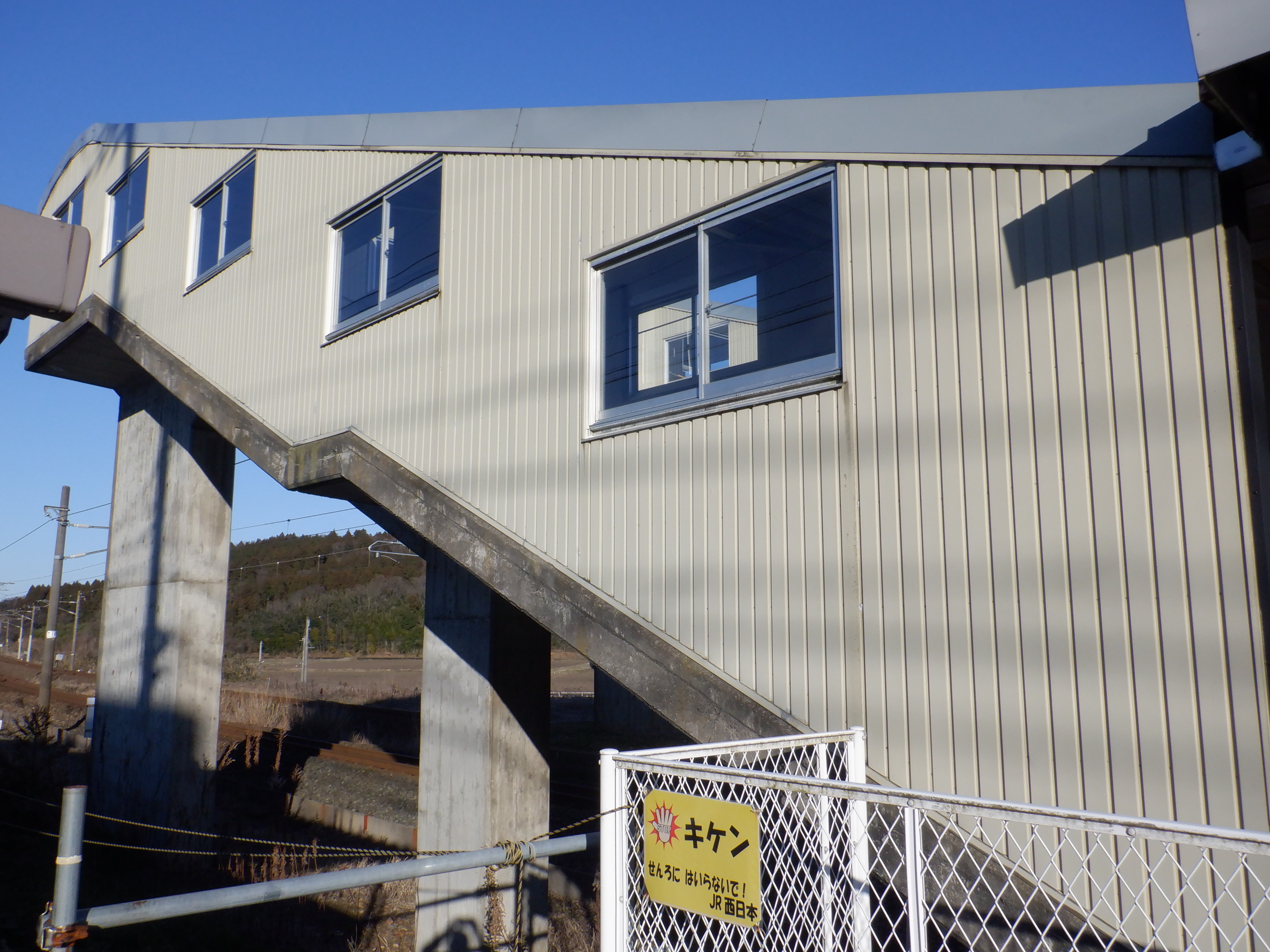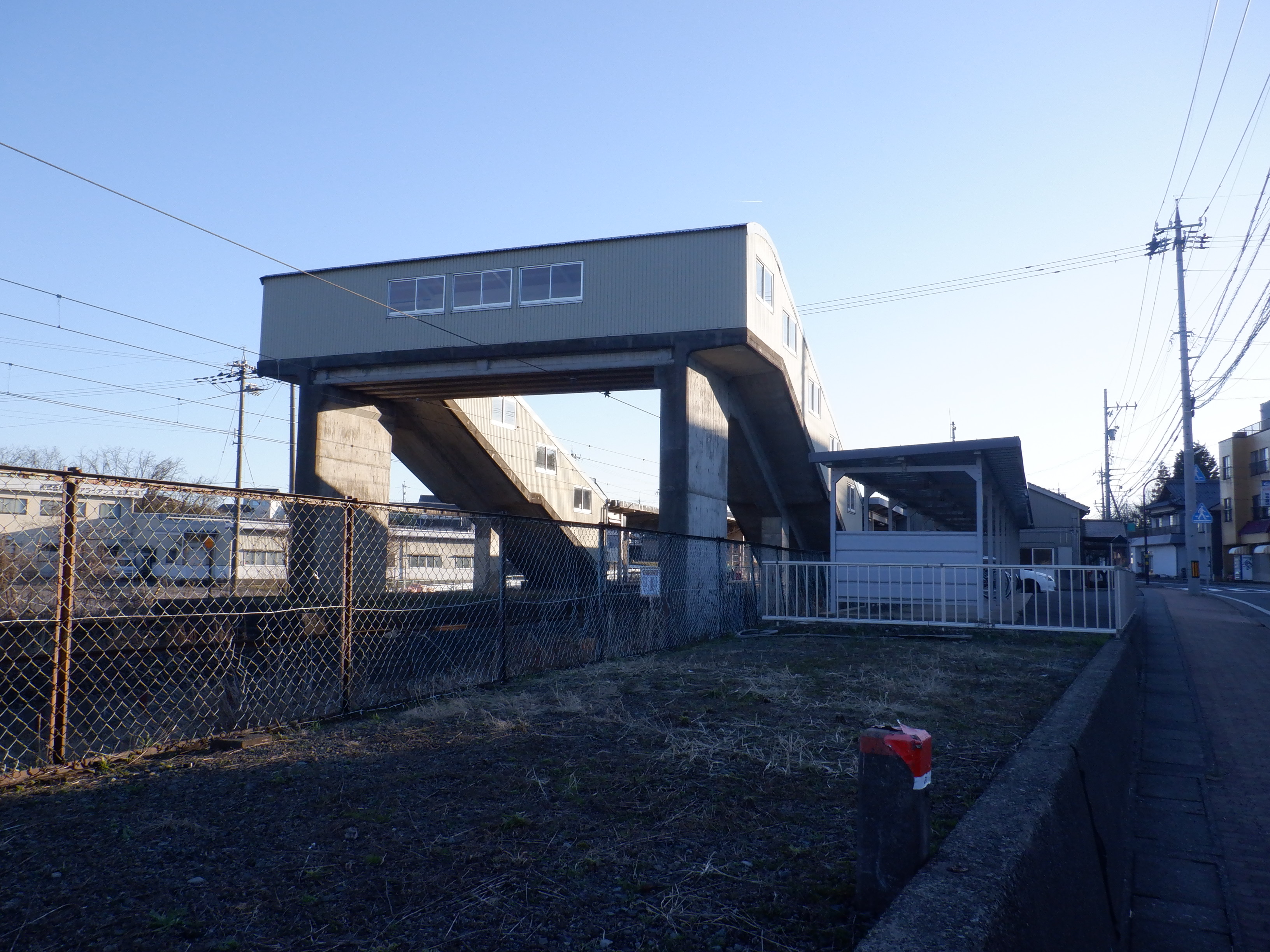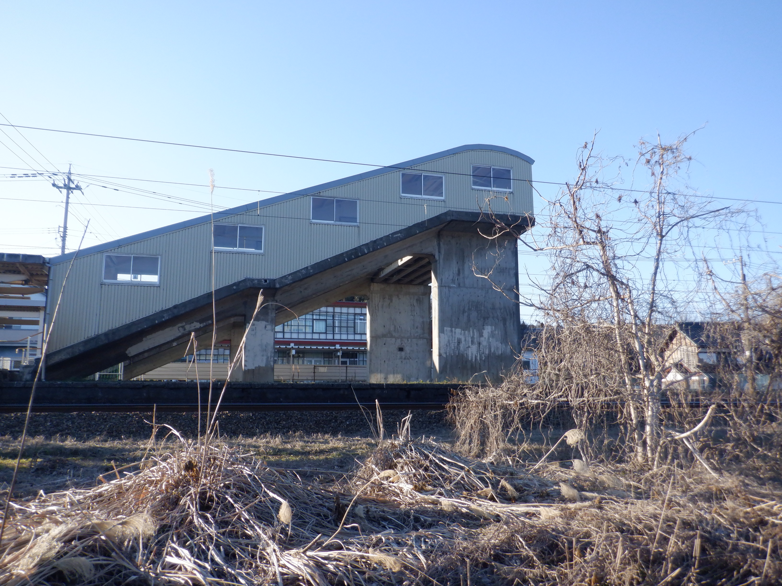 駅舎横から見た跨線橋。