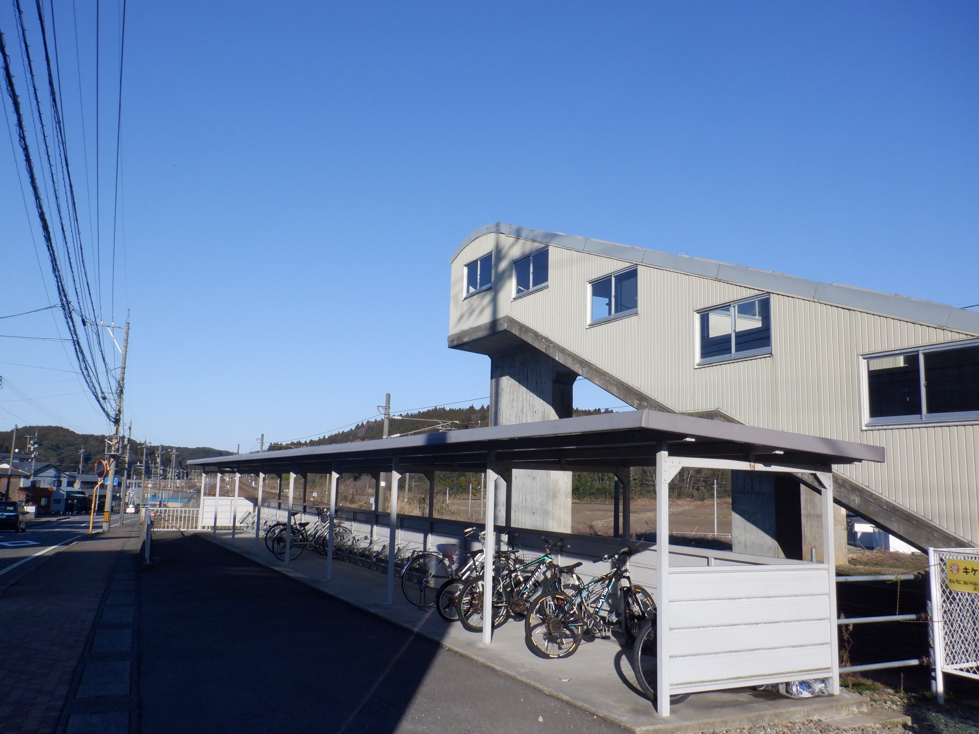 この駐輪場で普段は多くの方が列車を撮っていらっしゃいます。この日は北鯖江駅付近の火災で特急列車が運休したため、ひっそりとしていました。