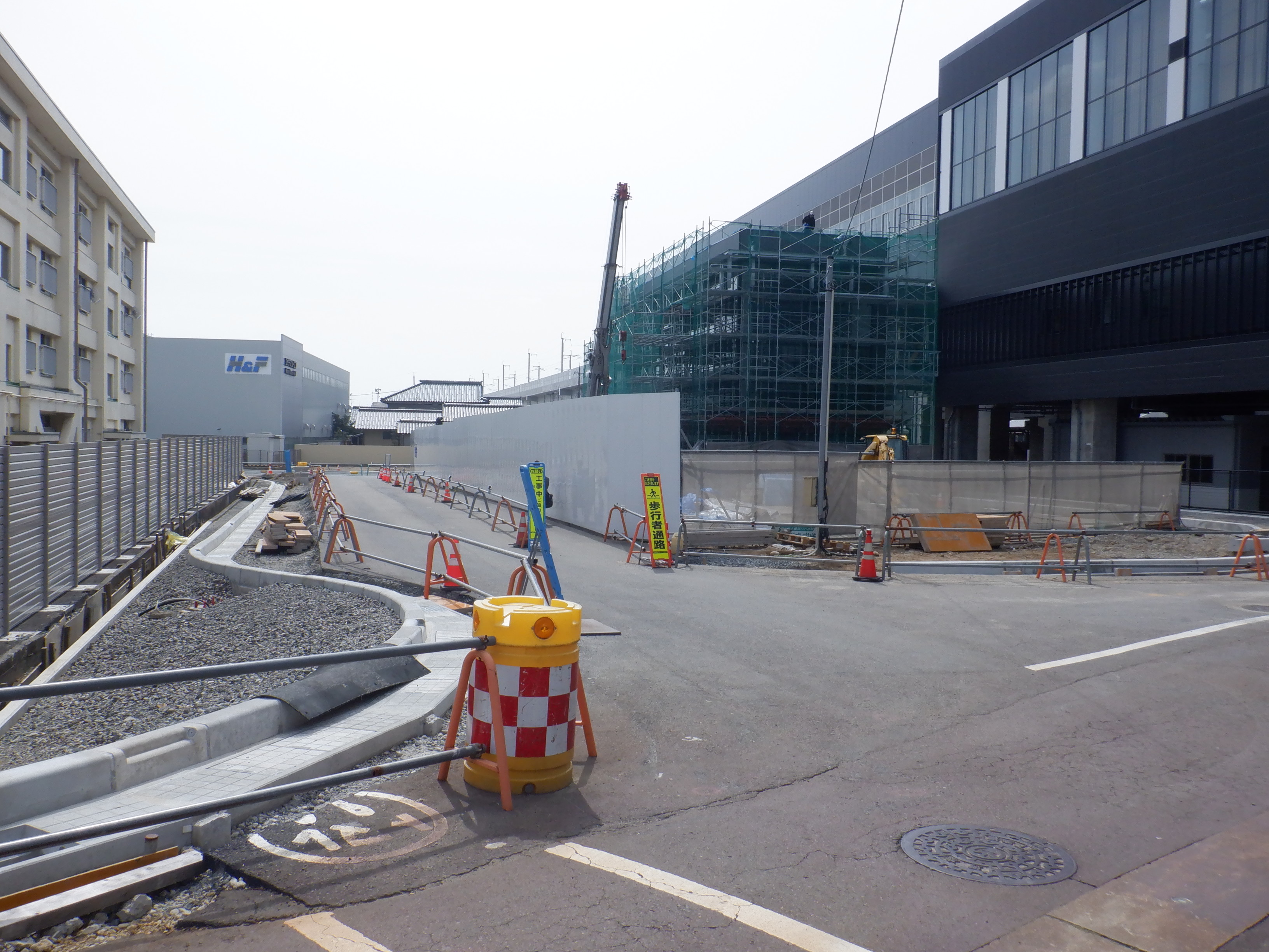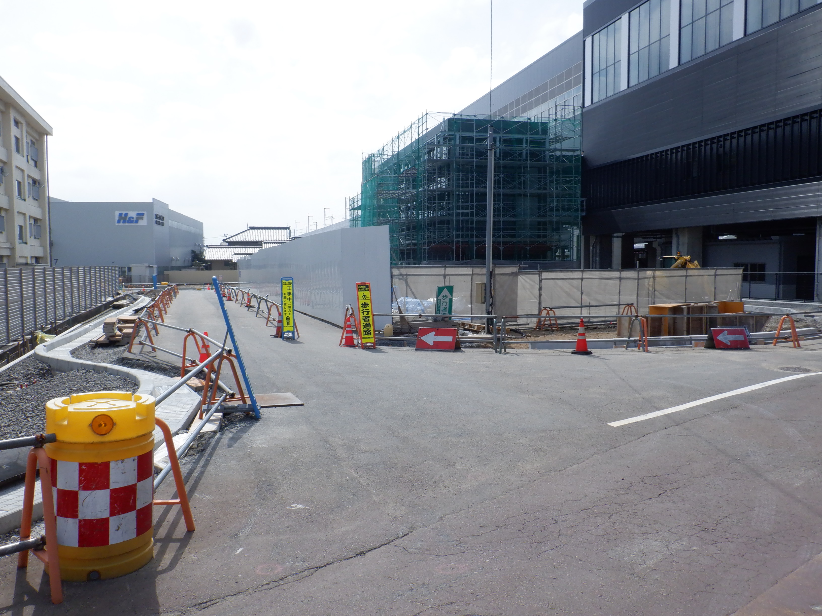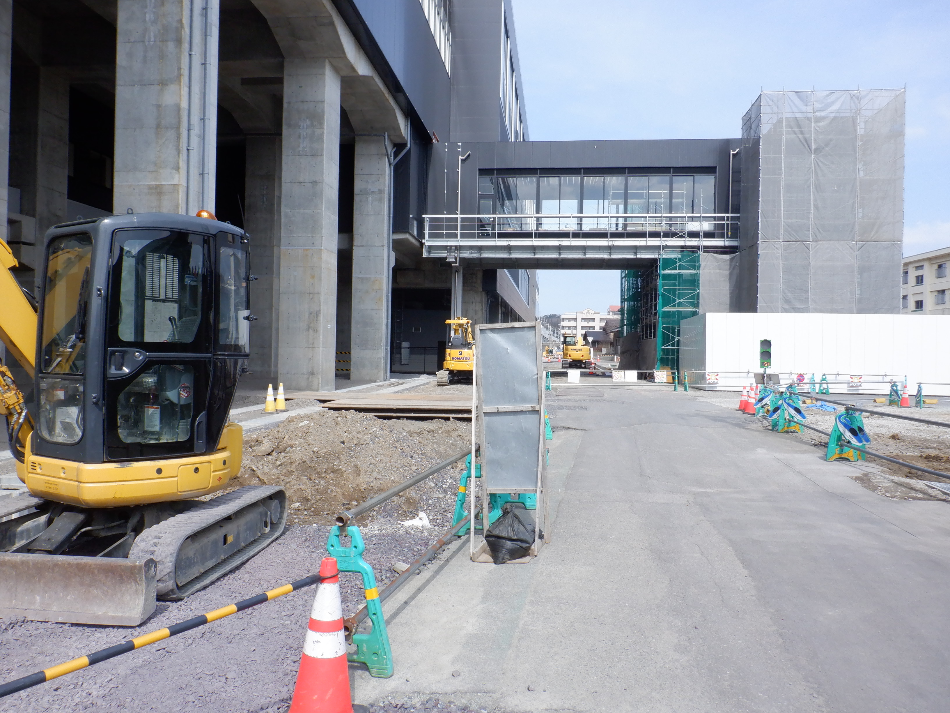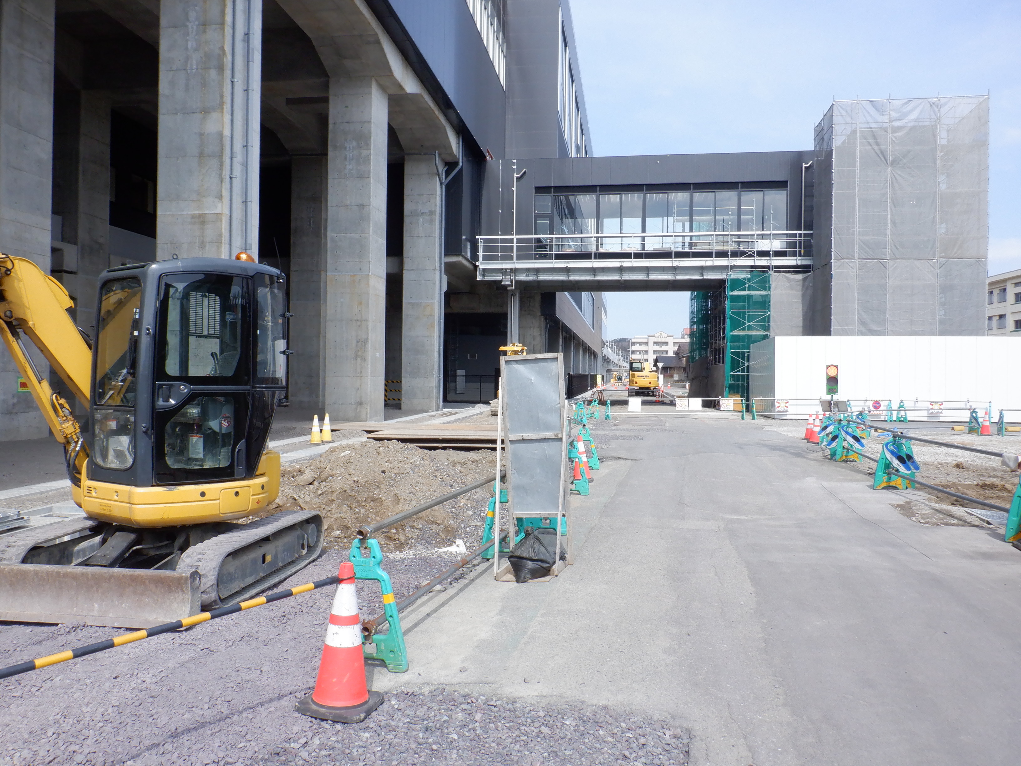 アフレアの開業も近づいてきて、外観はほぼできているように思われます。西口からの道路の工事が進み、従来からある部分と新し部分の間の工事が進んでいました。