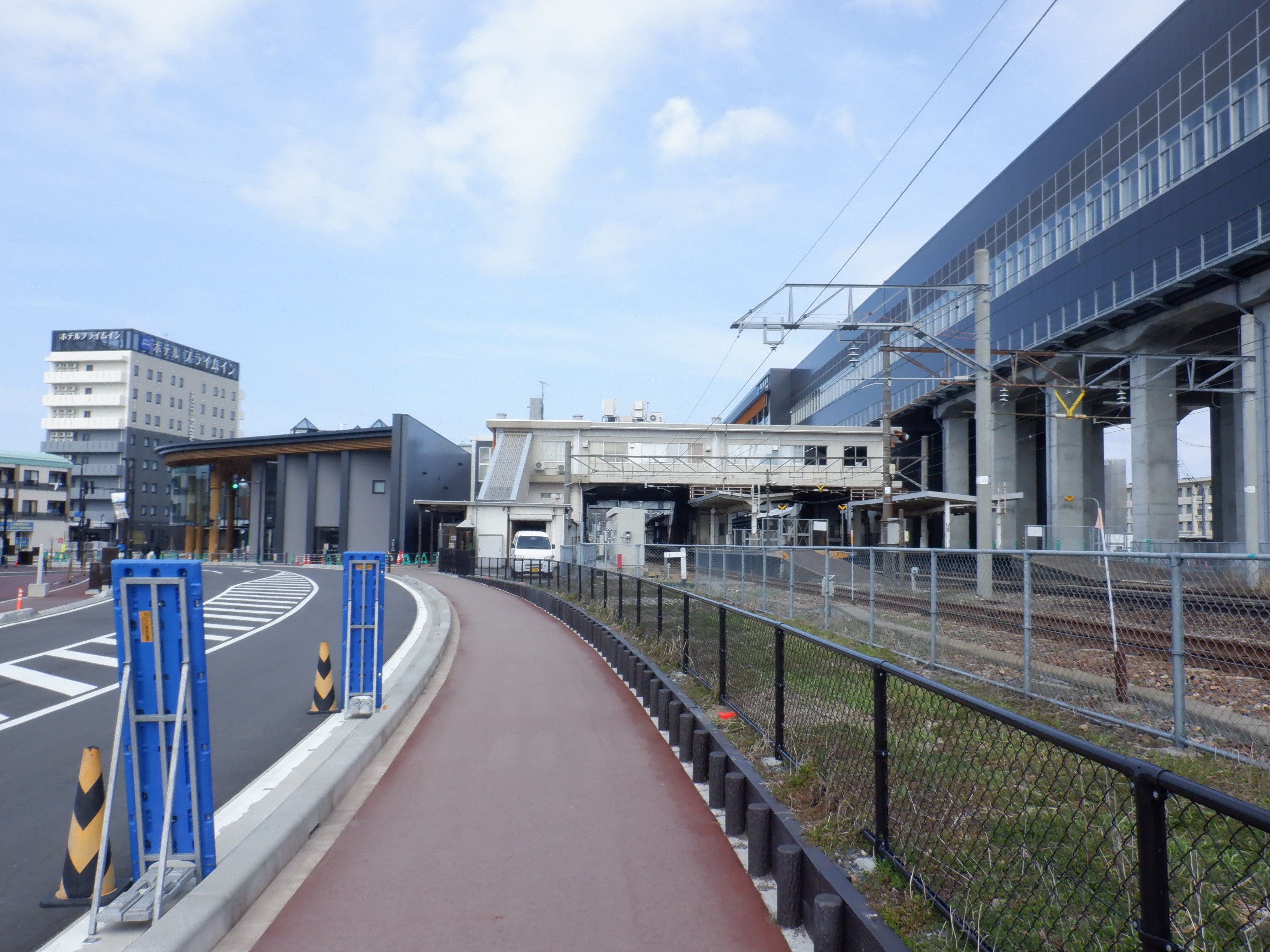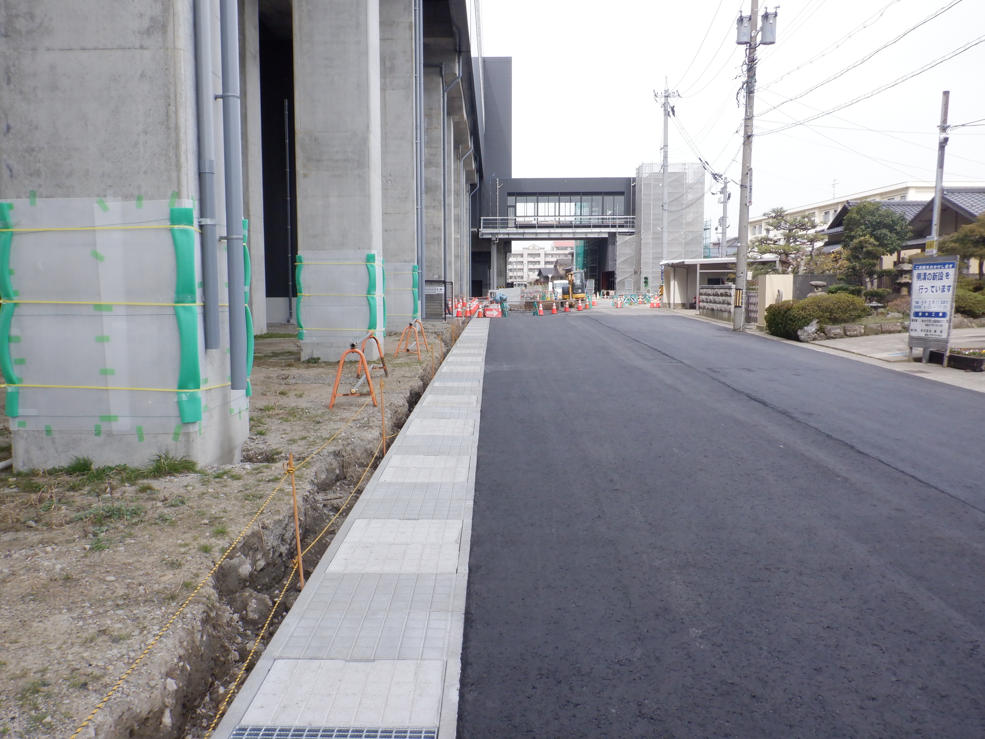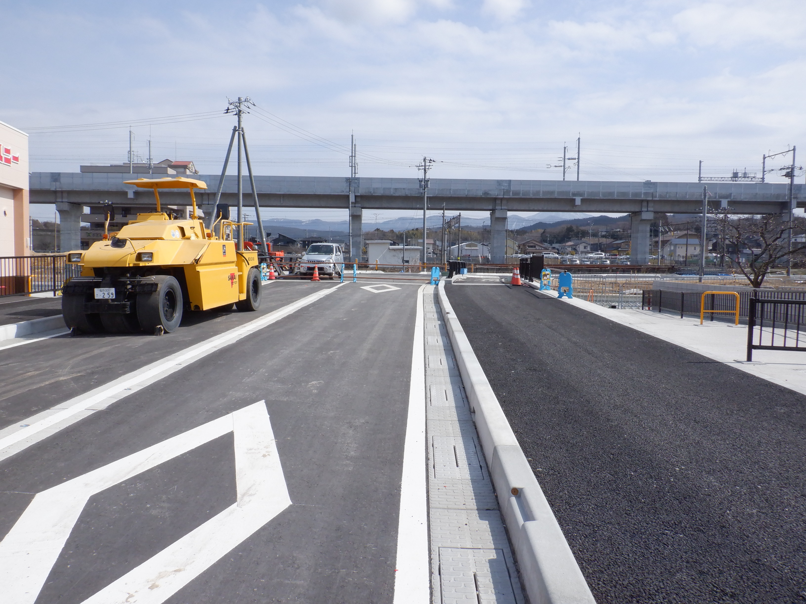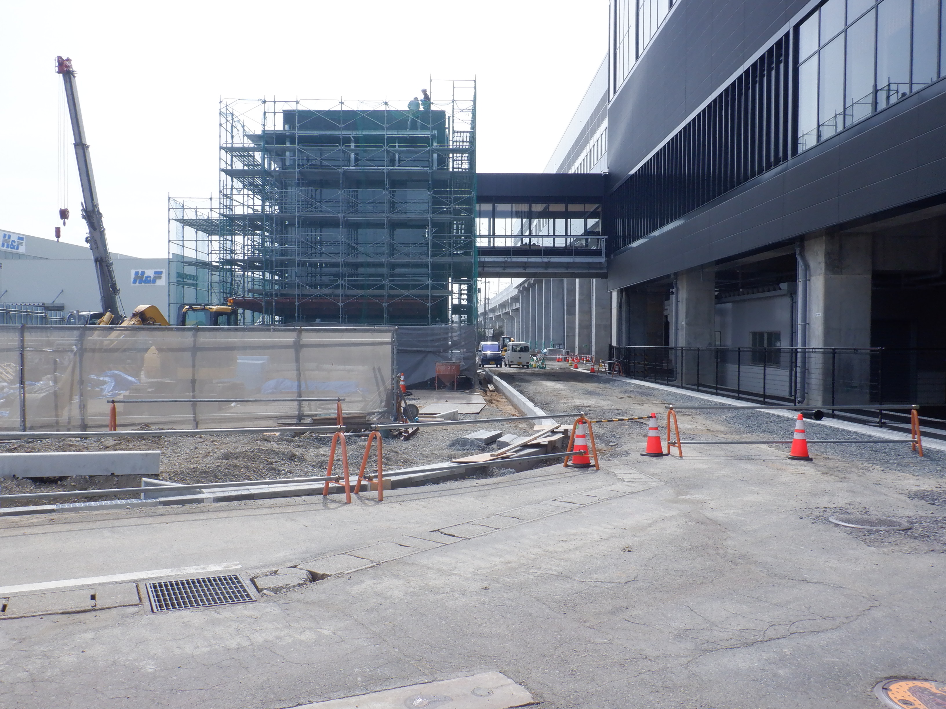アフレアの開業も近づいてきて、外観はほぼできているように思われます。西口からの道路の工事が進み、従来からある部分と新し部分の間の工事が進んでいました。