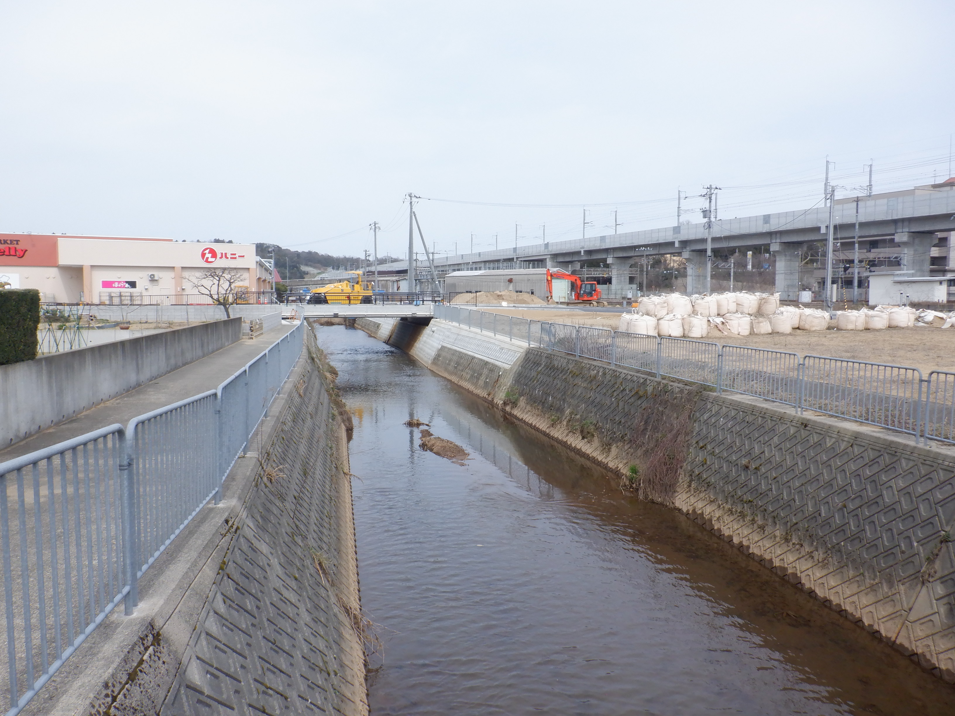 迂回をしてきて西口からの道路延長部分の工事中のところ。