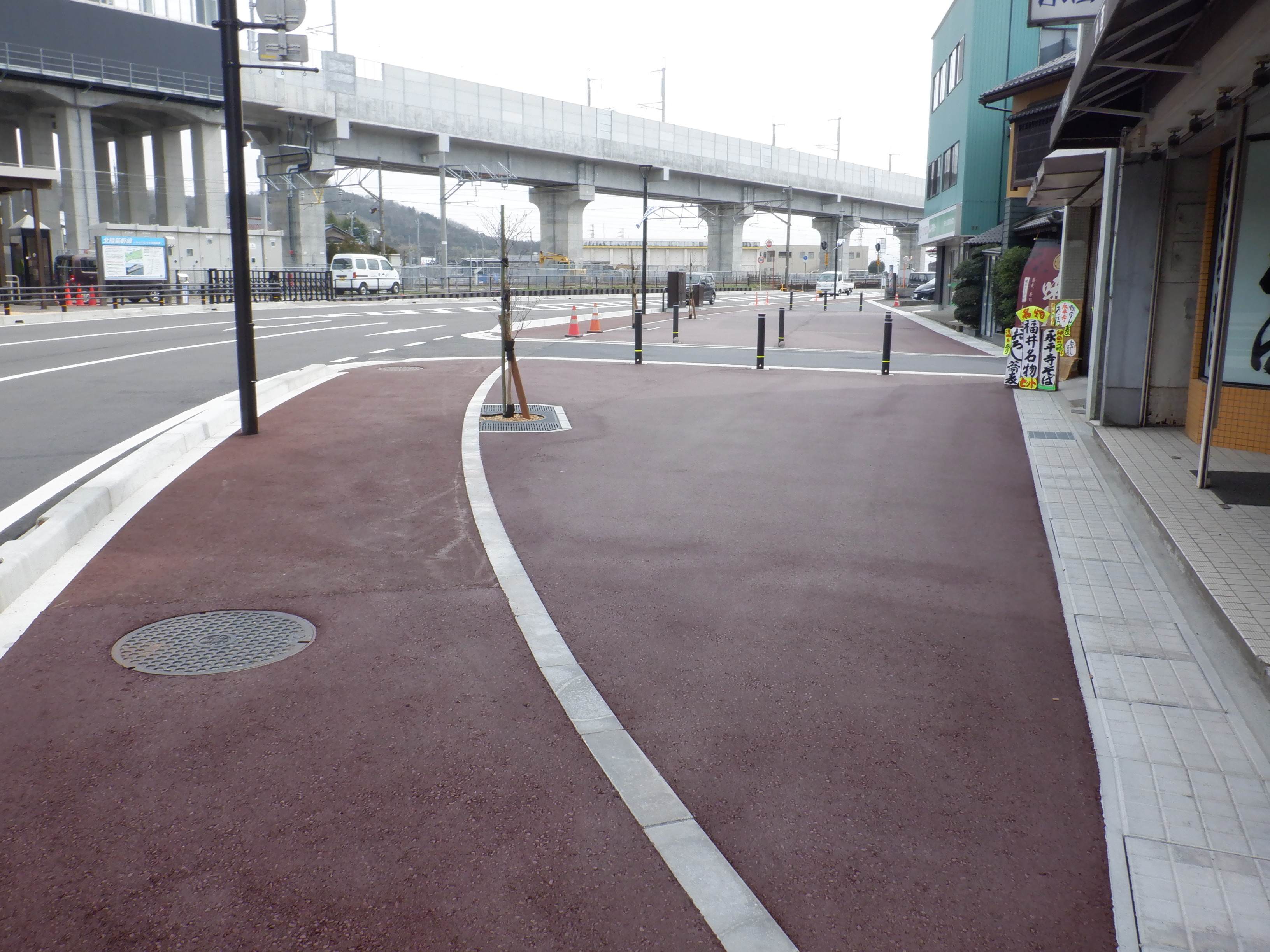 東口に出たところ。先日までの道路の工事が終了していました。