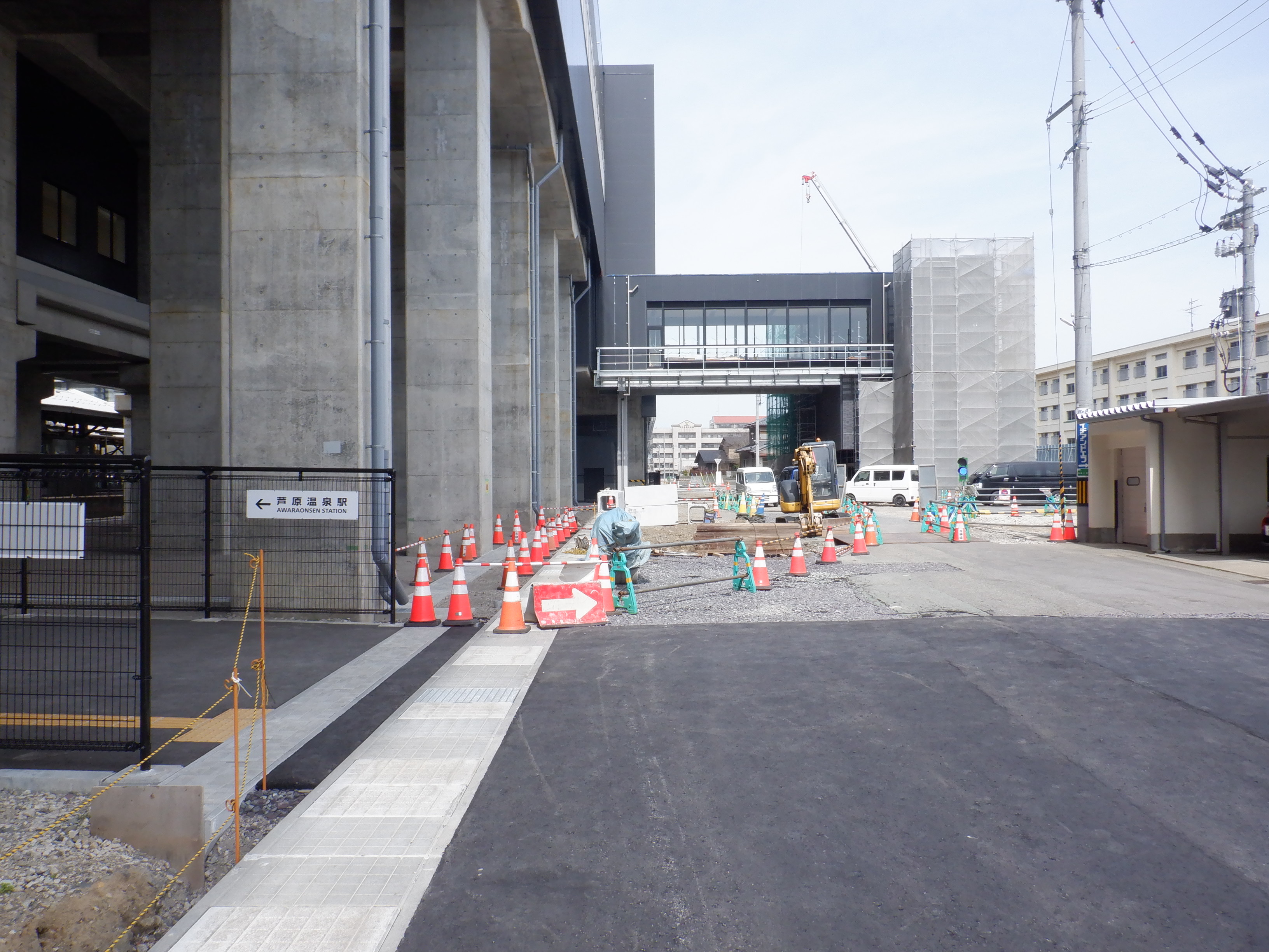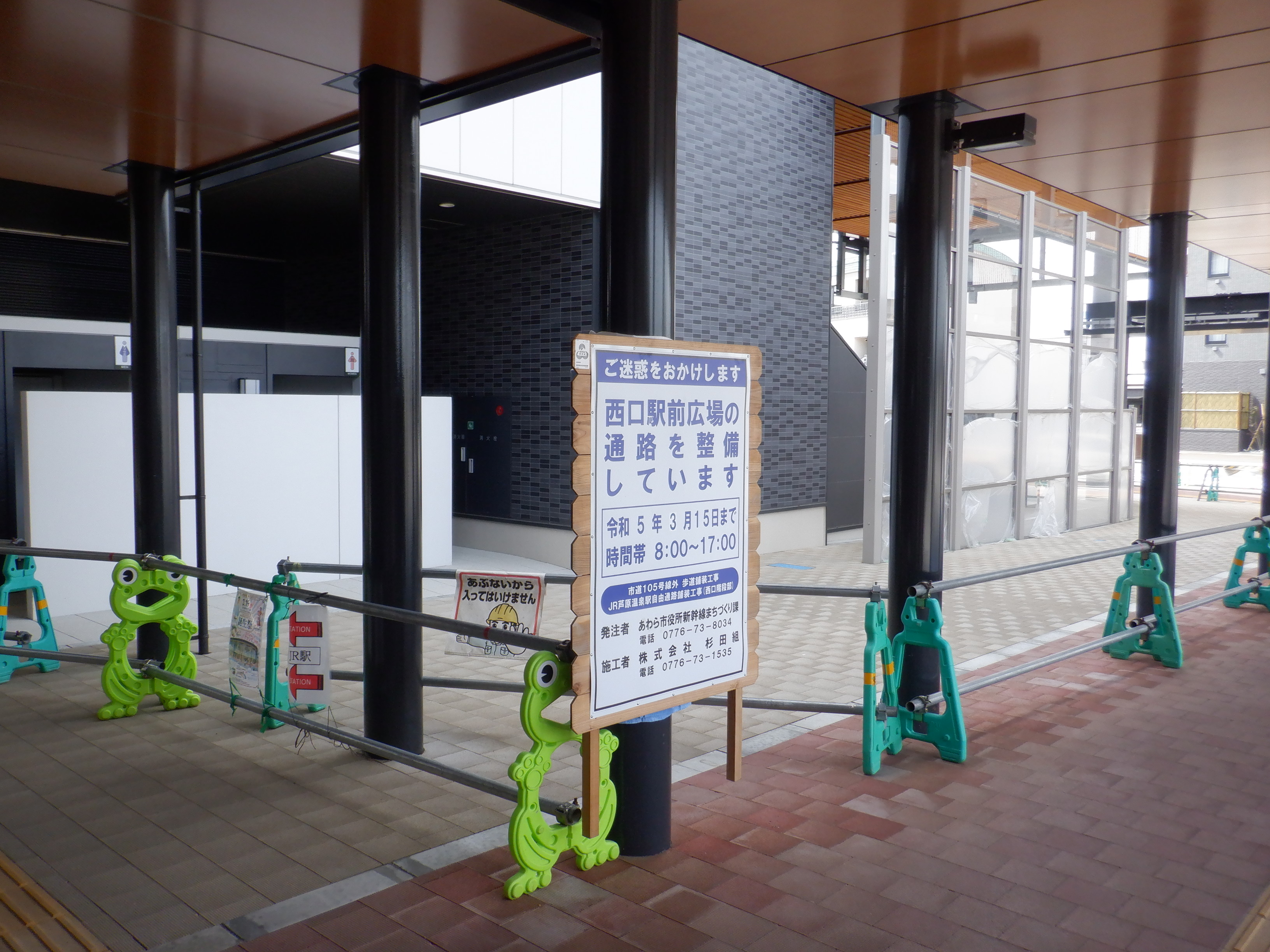 西口の出入口付近とそこから見たアフレア建設中の様子。