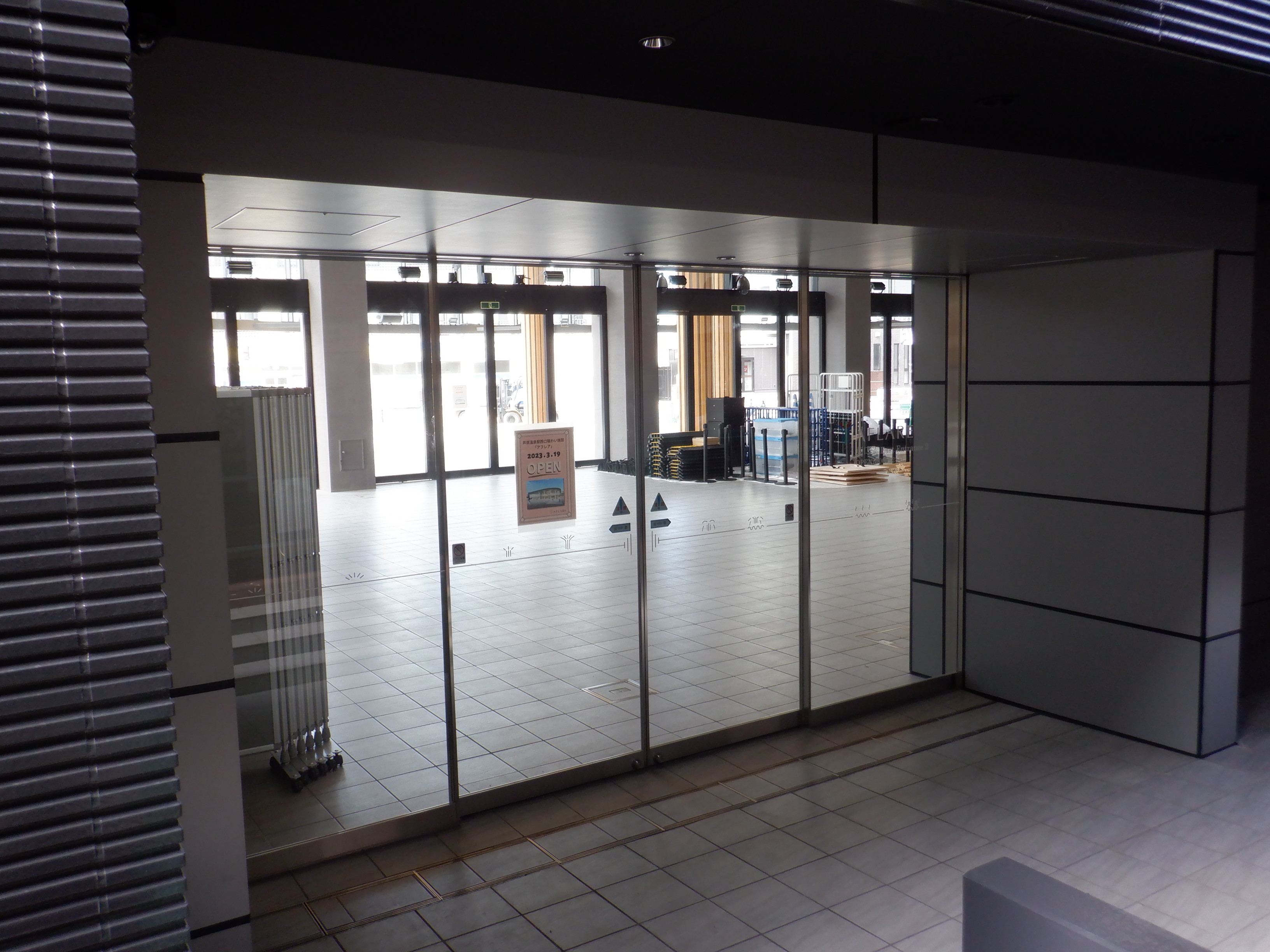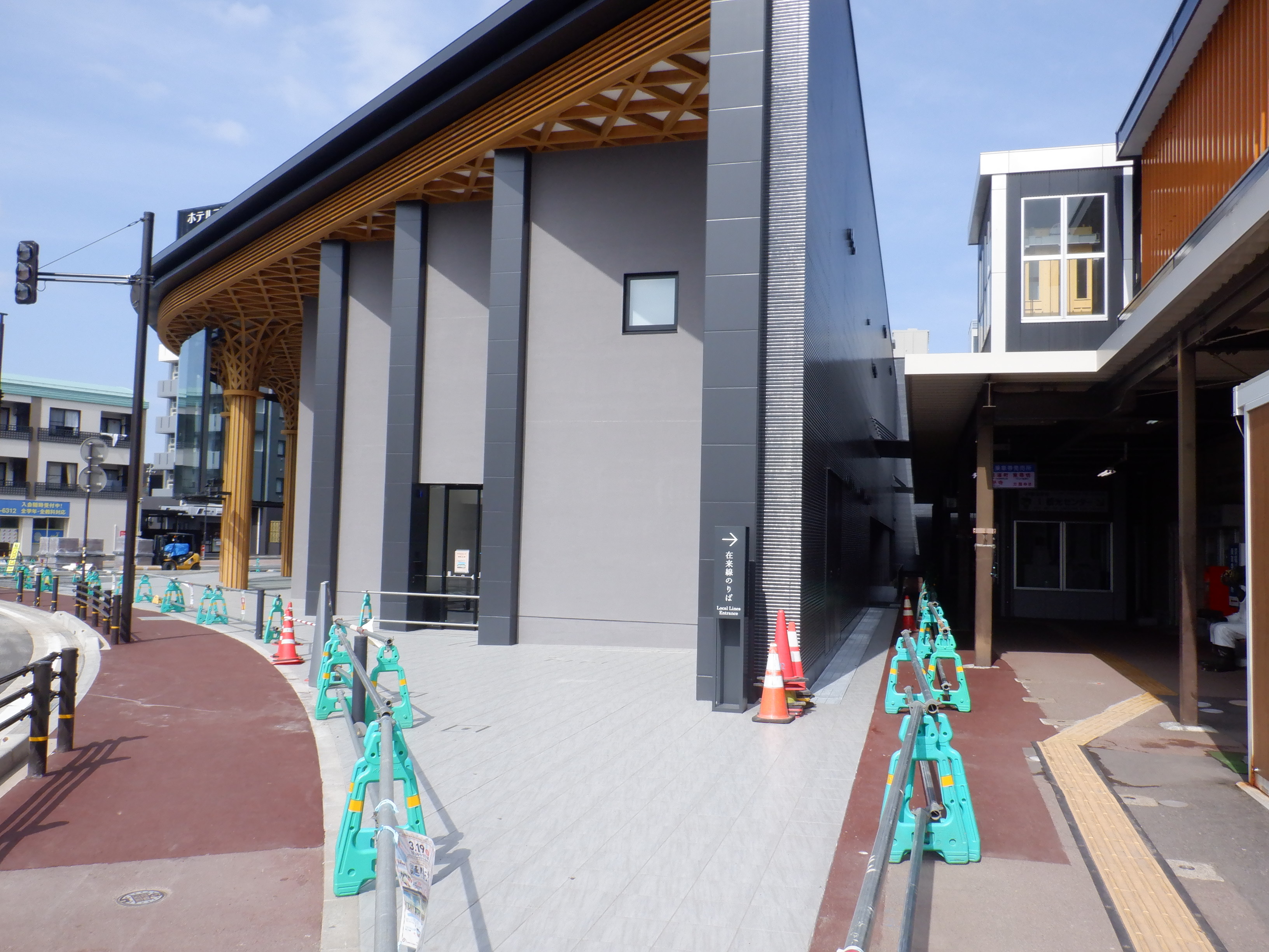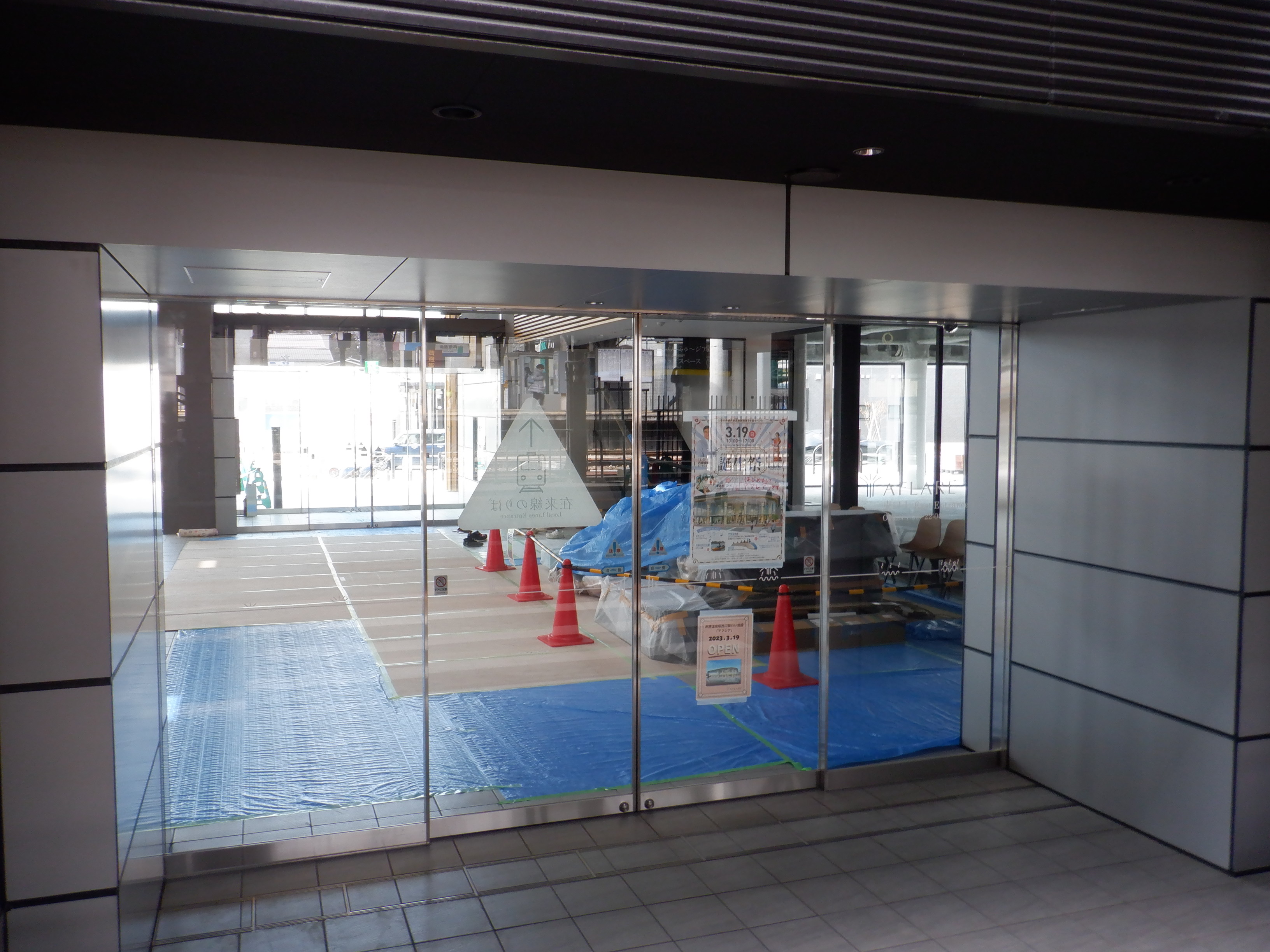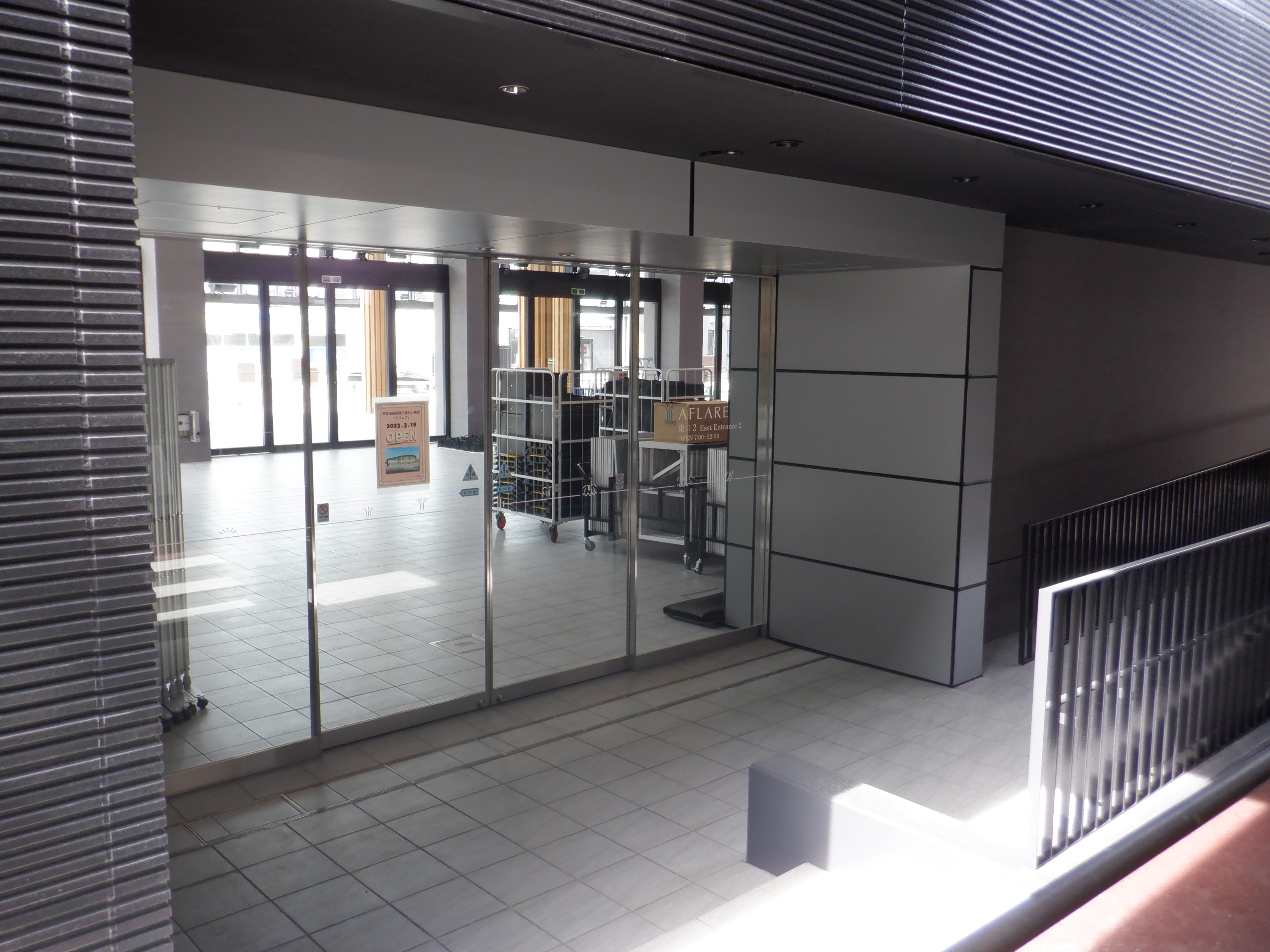 アフレアの開業を約1週間後に控え、ポスター等で雰囲気が盛り上がっているように見えました。また、東口の新幹線駅舎出入口も工事が進んでいるようです。