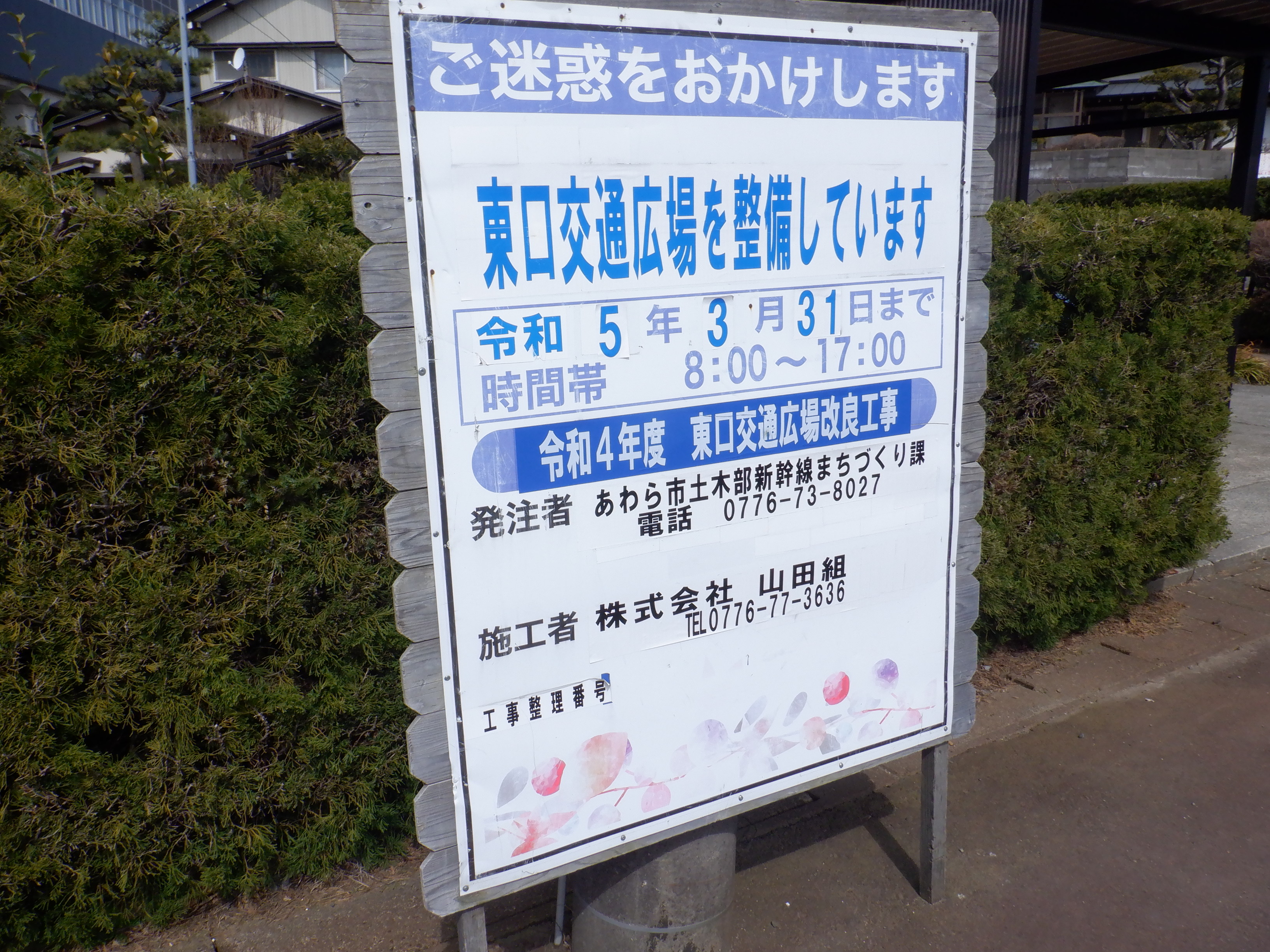福井県内の新幹線建設中の駅等にせっちされた、フラッシュを焚くことにより文字が浮き出るもの。