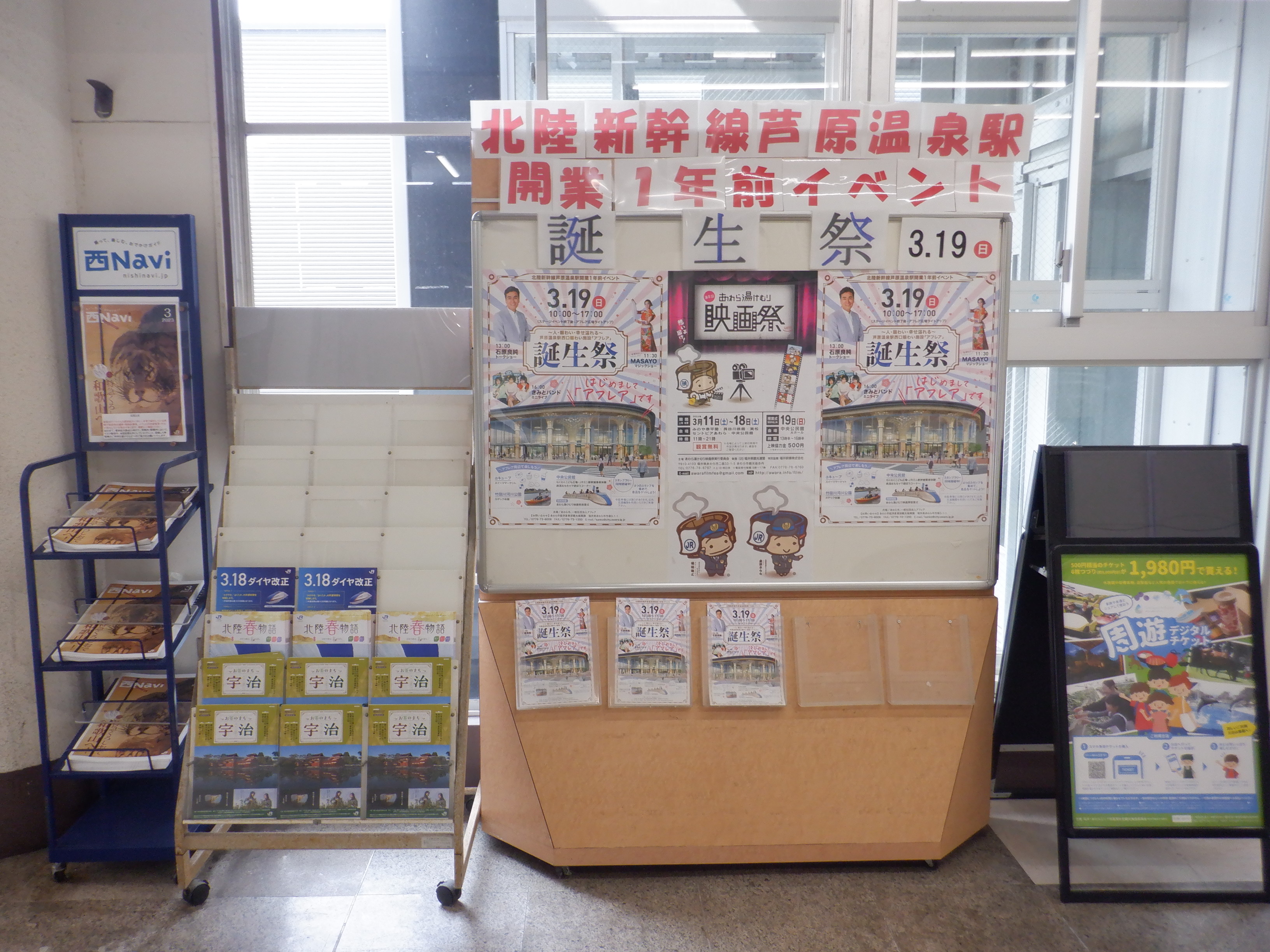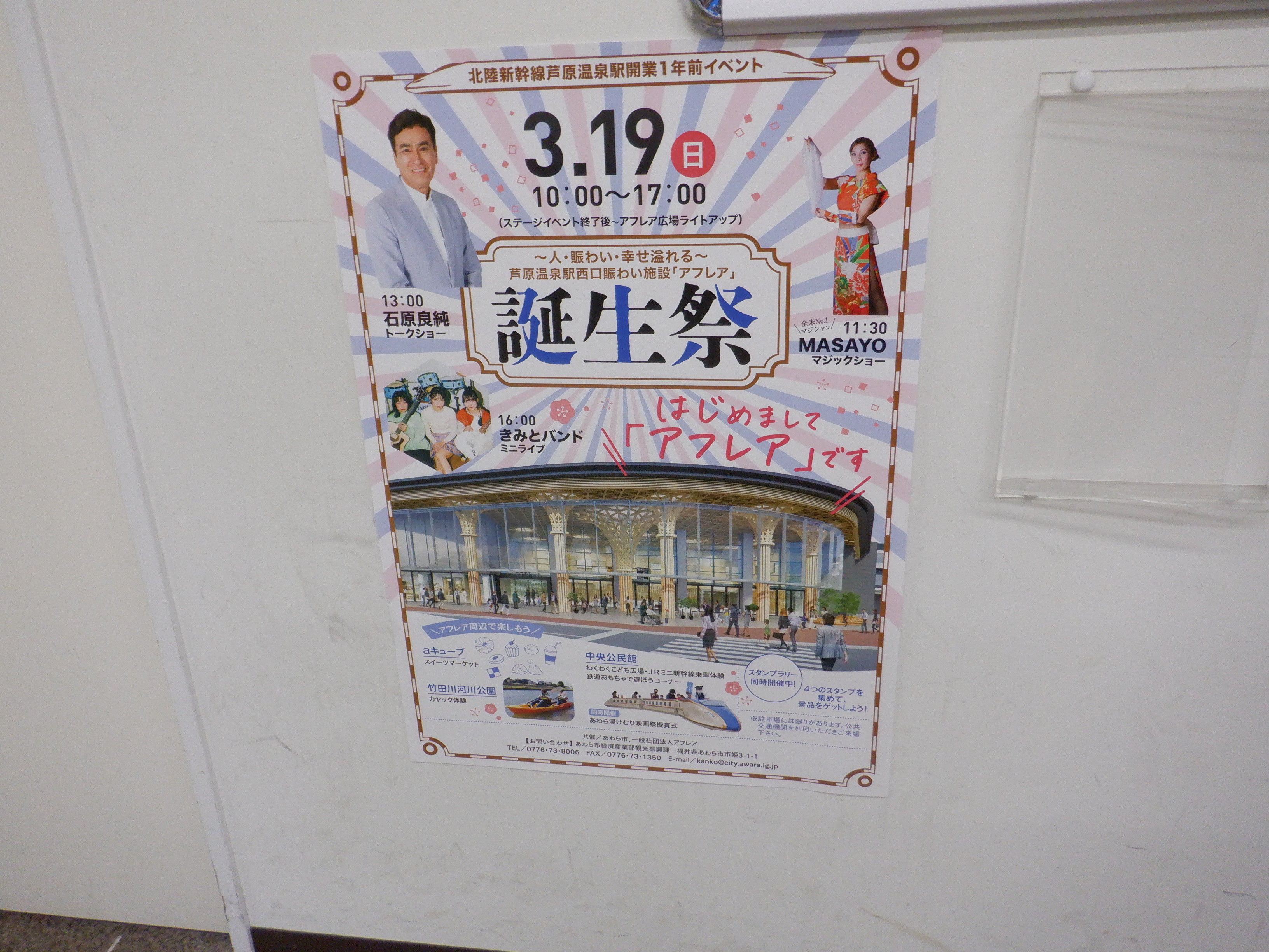 アフレアの開業を1週間後に控え、誕生祭のポスターなどが貼られていました。