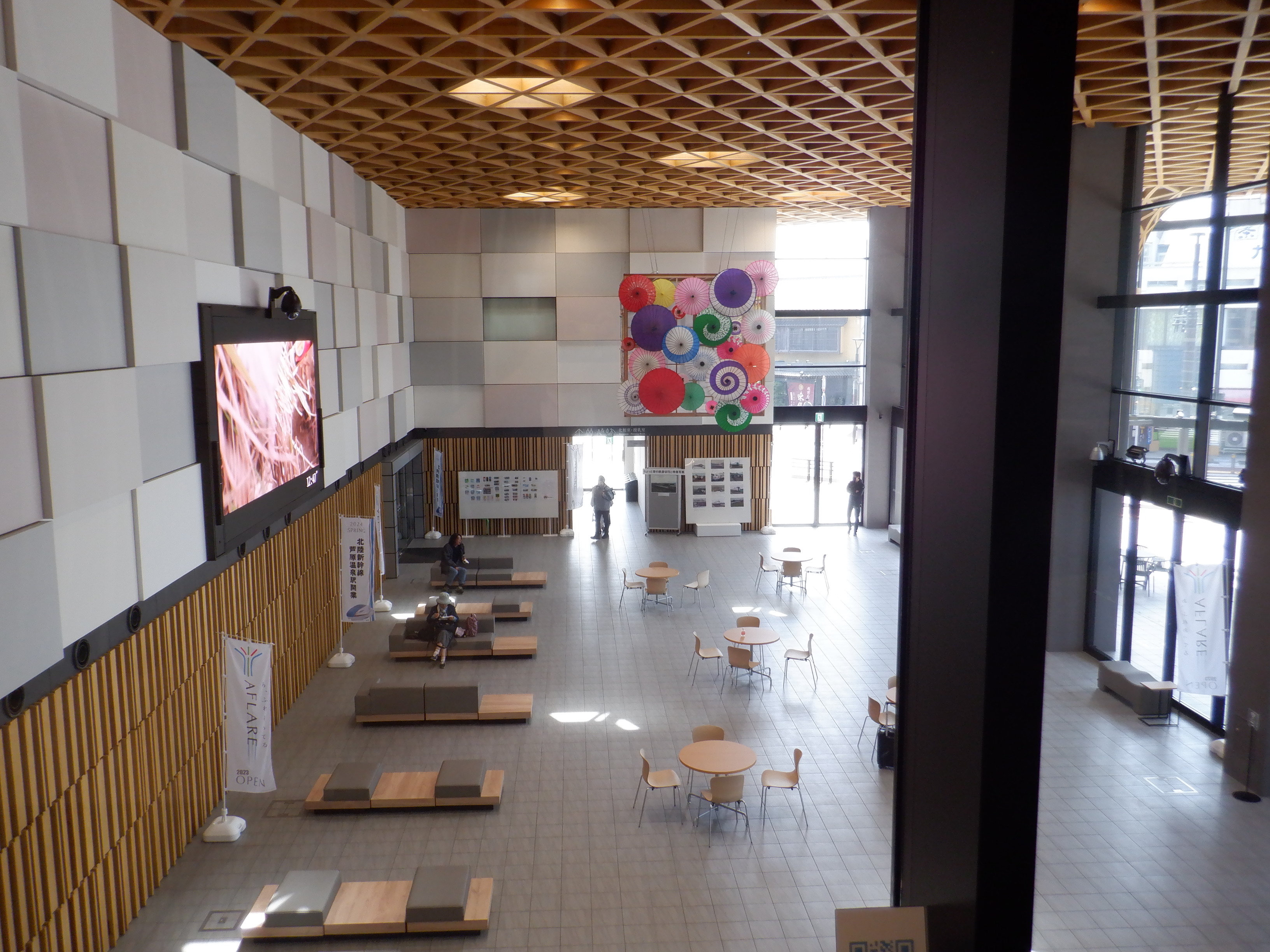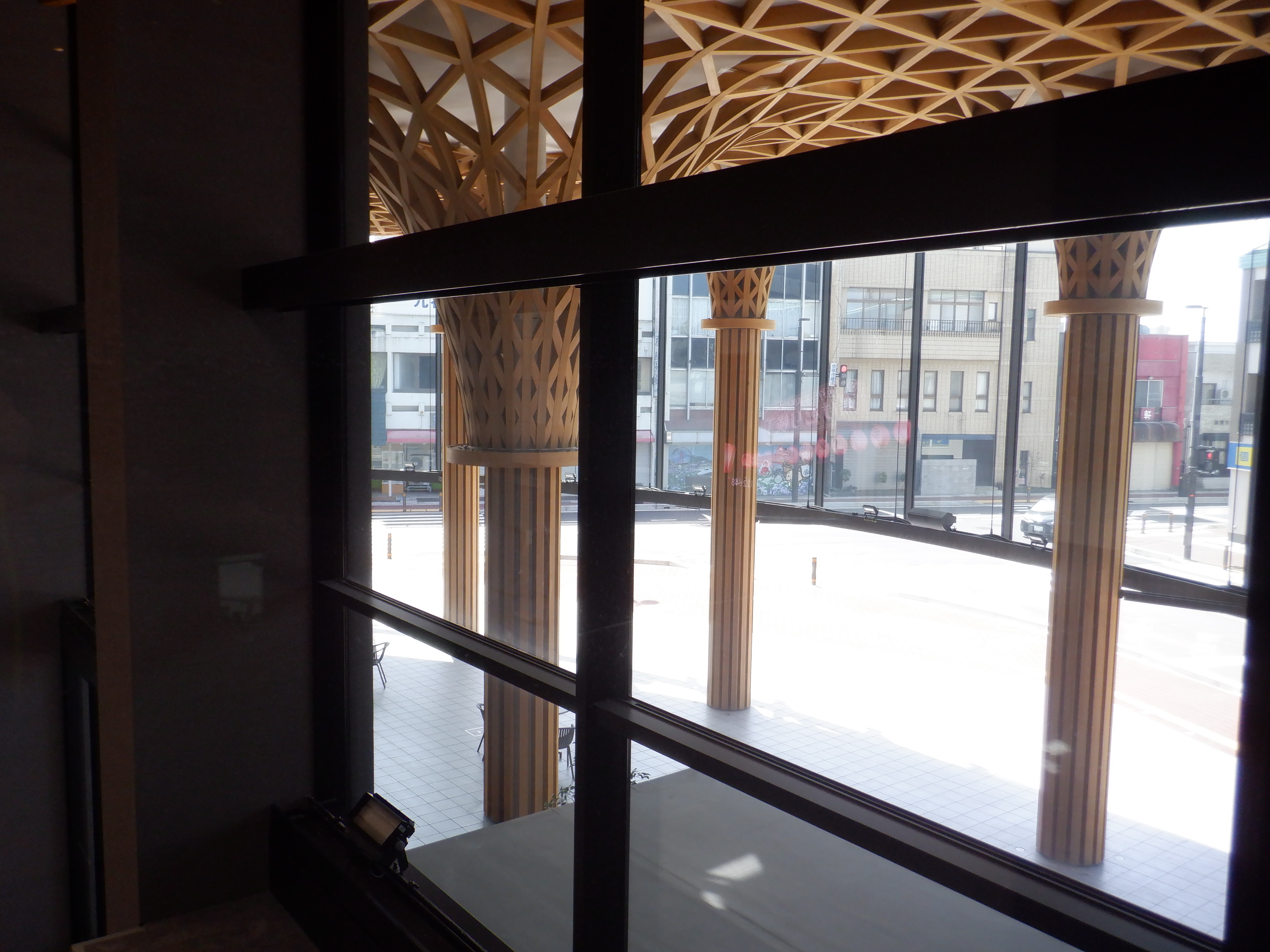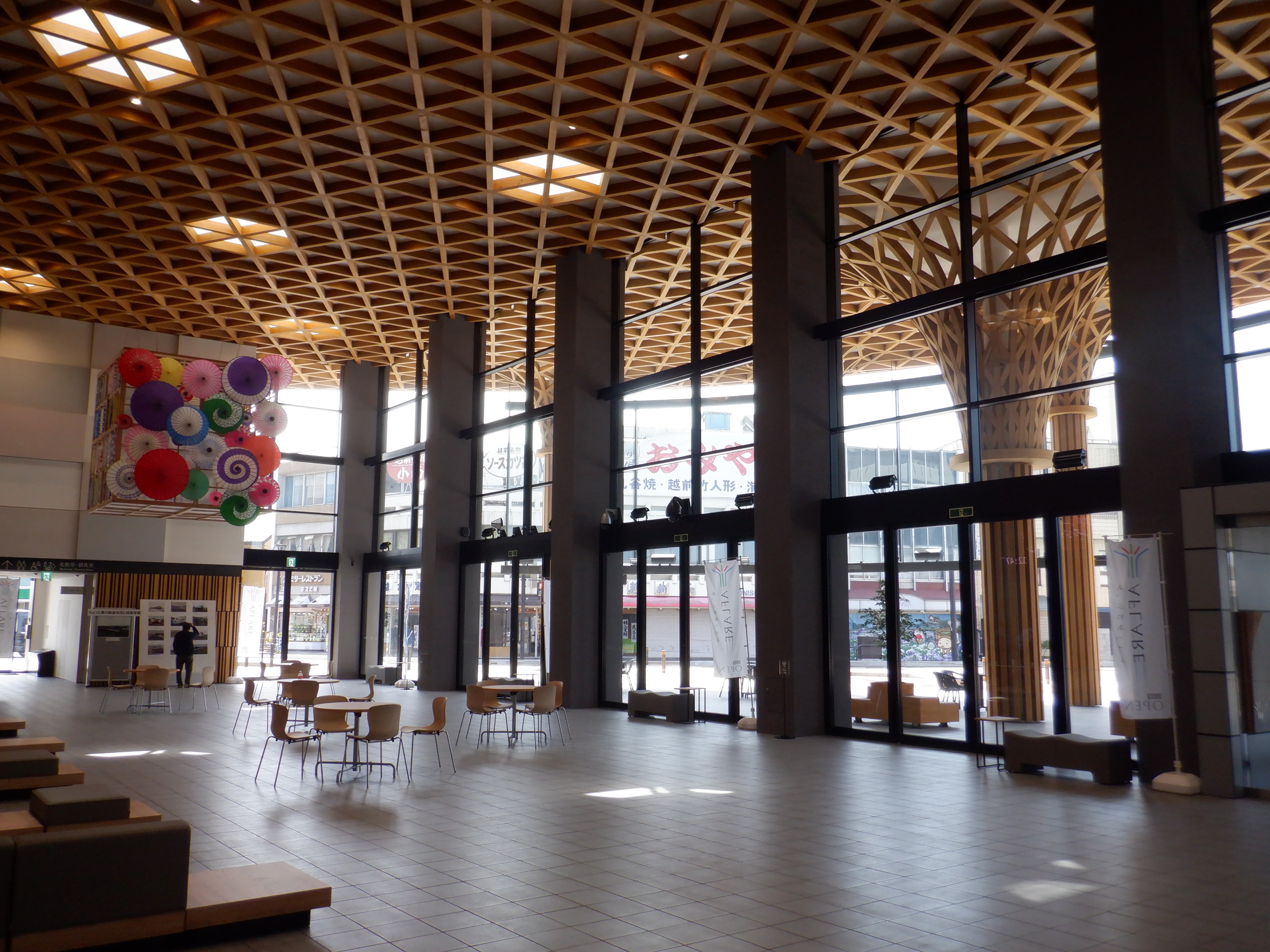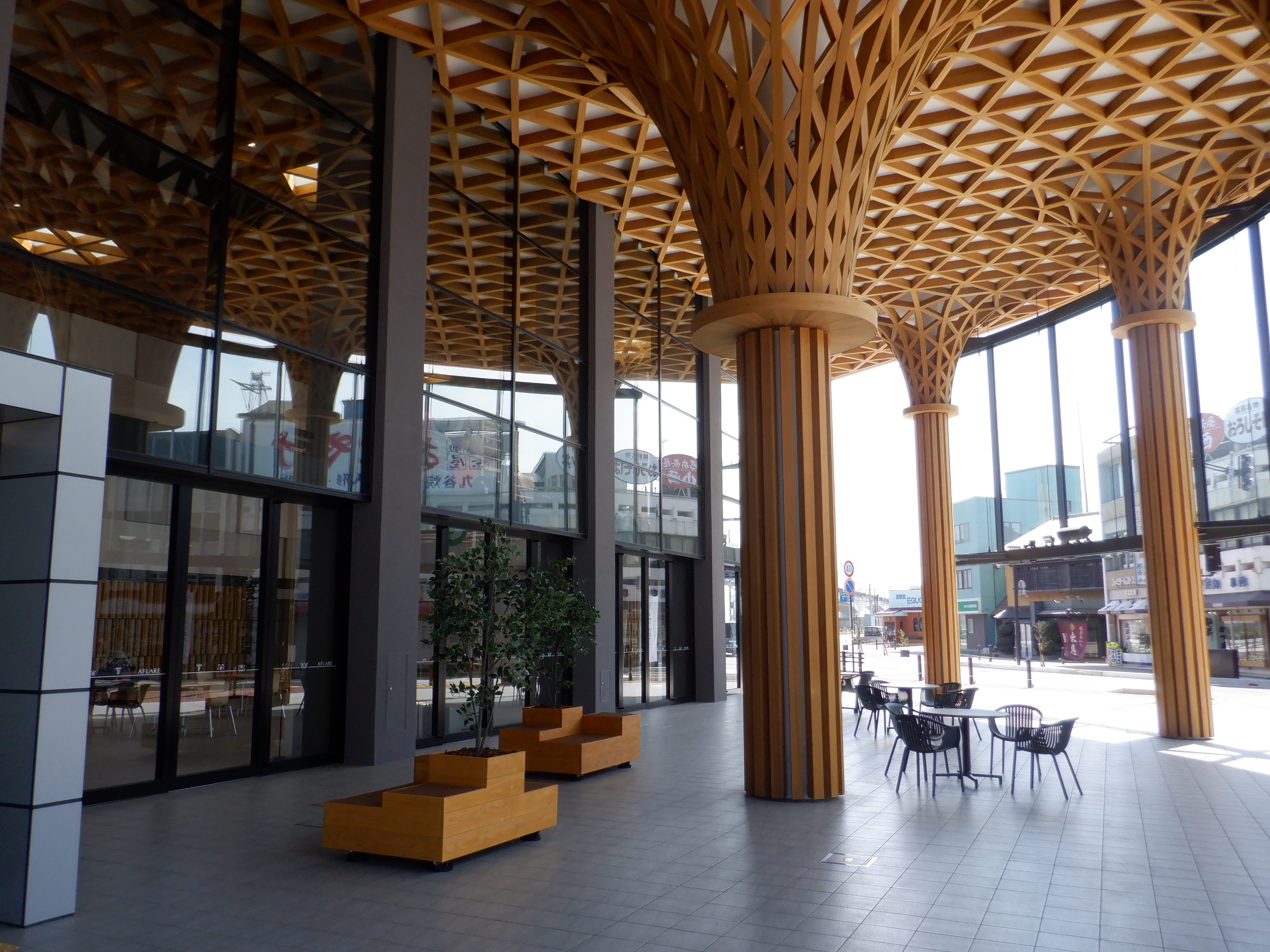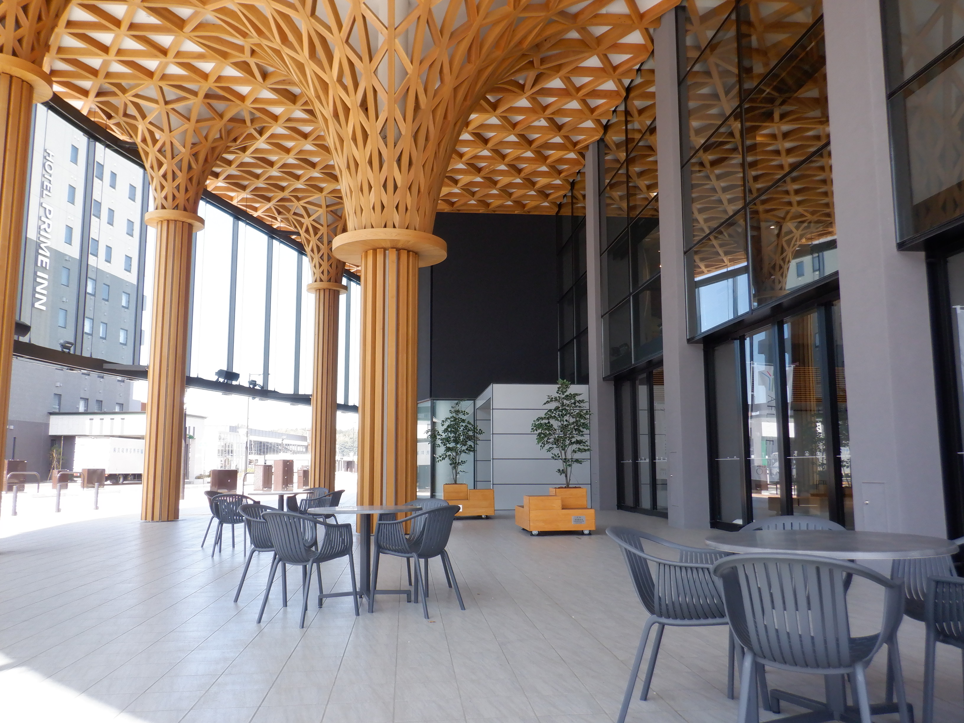 1・2番のりばから見たアフレアと通路、交通広場。