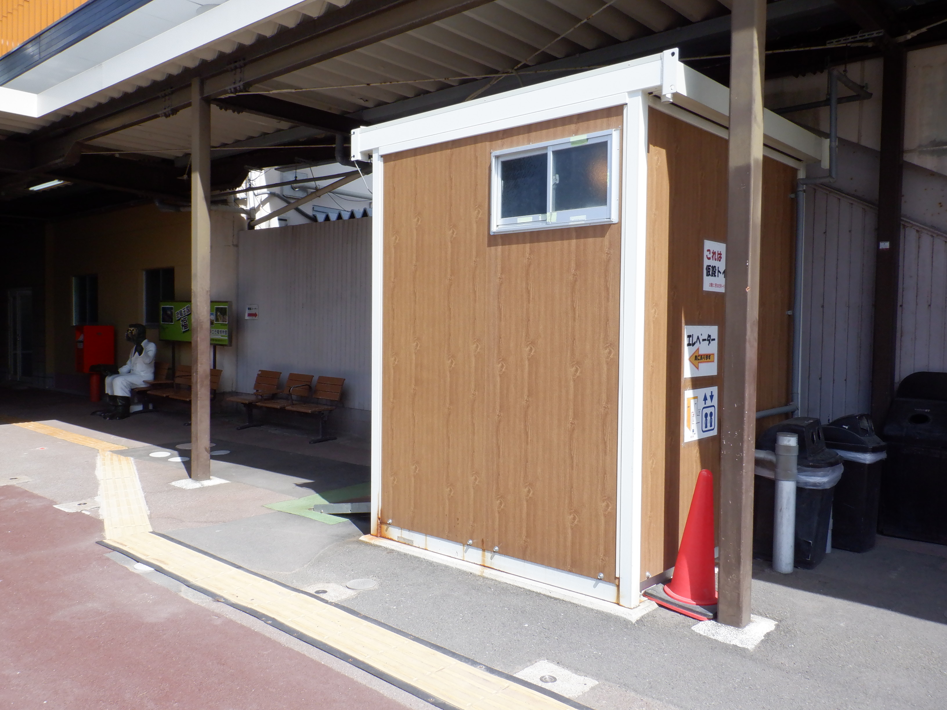 交通広場と自由通路の間のエレベーターとトイレ。