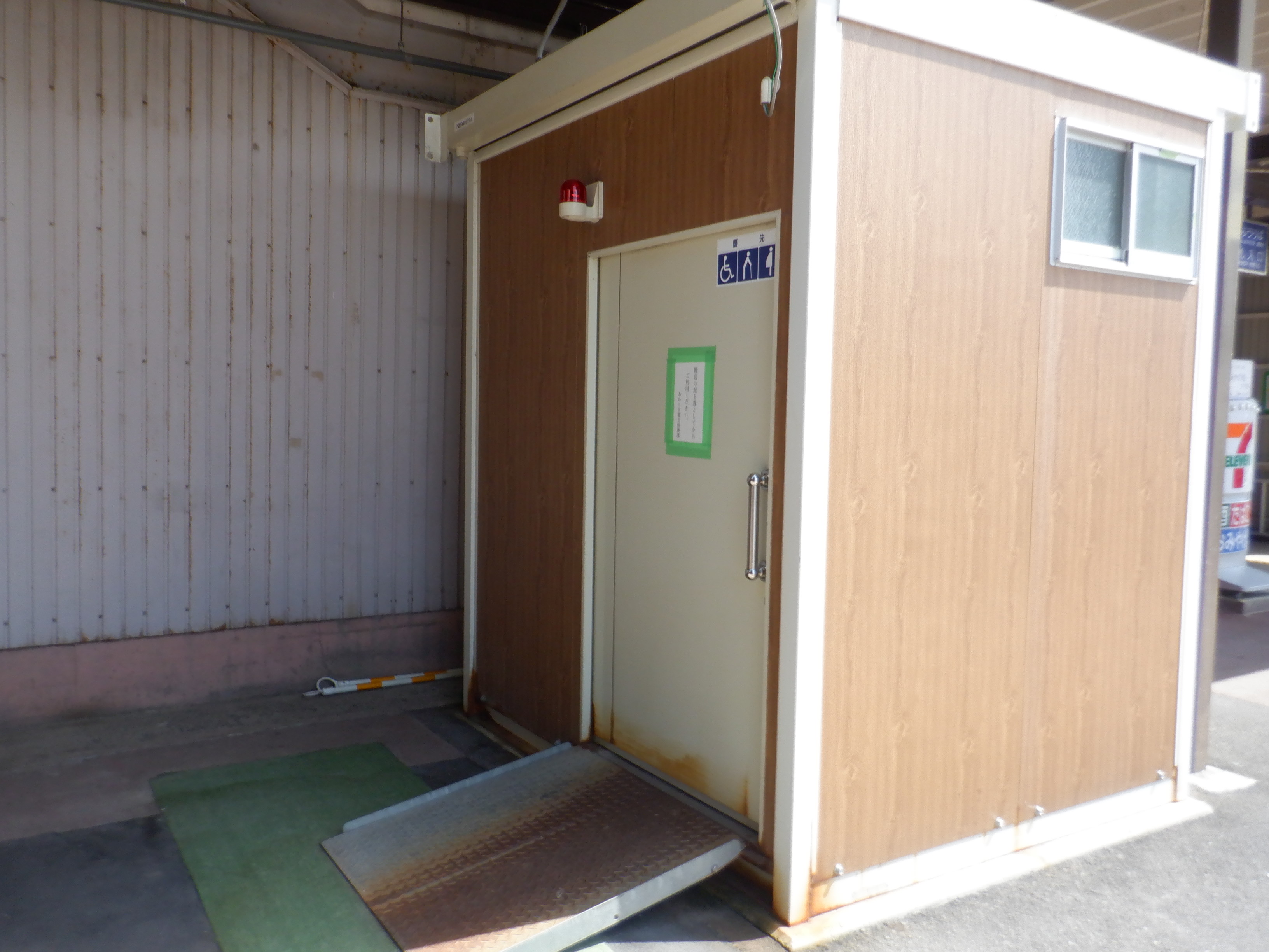 東口出入口にあるトイレ。「靴底の足を落としてからご利用ください」と書かれています。