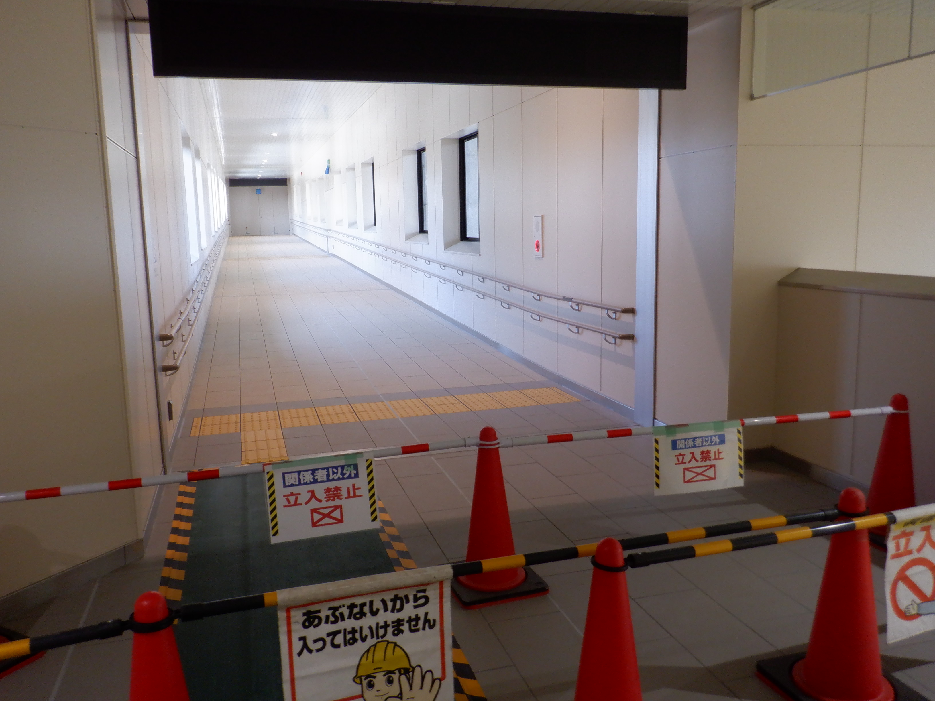 西口へ向かいます、というところですが、この青看板に変化があり、今まで隠されていたものが外され、西口への新たな道路が開通したことが分かります。