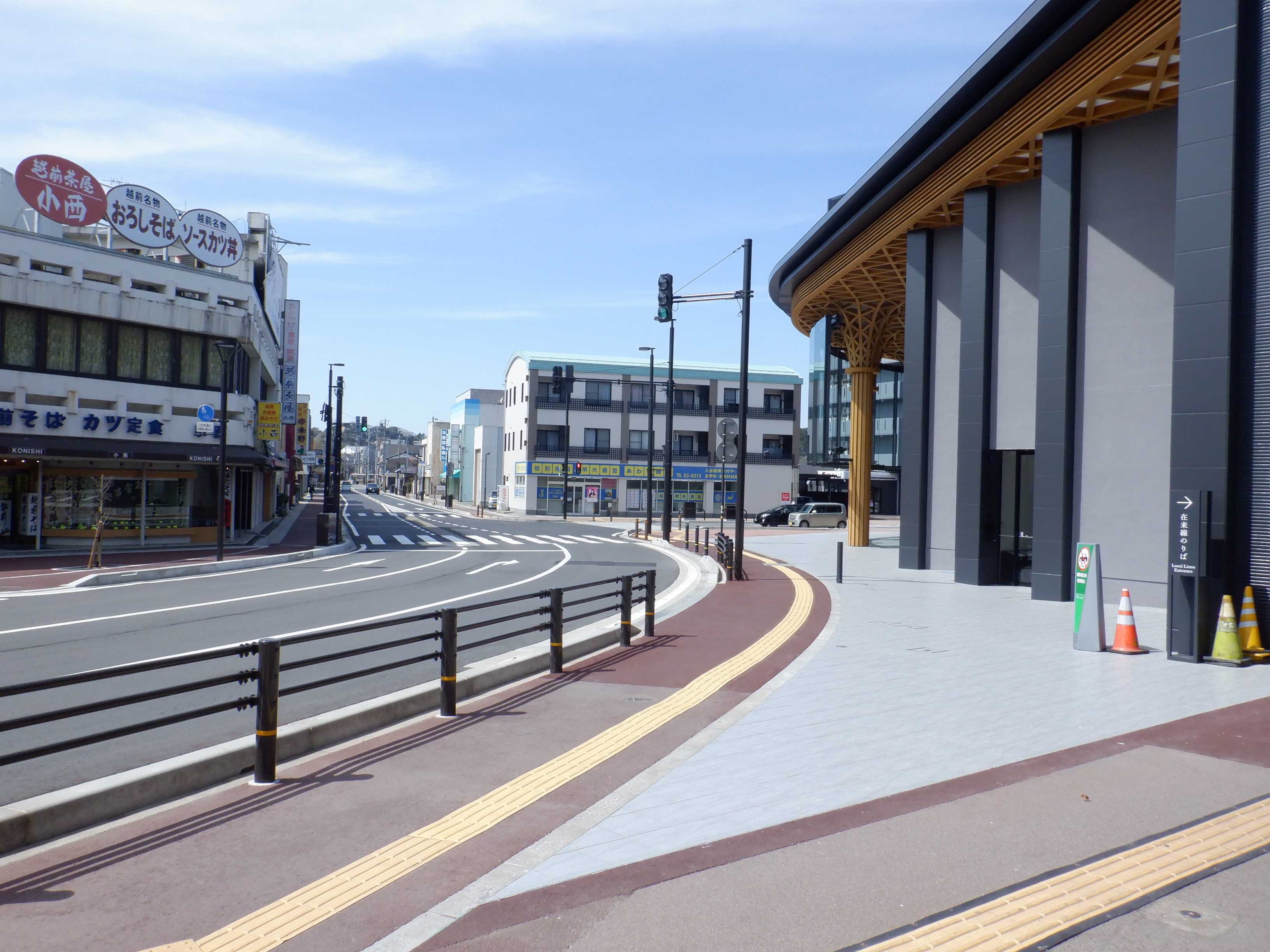 東口の出入口から。道路がきれいになりました。