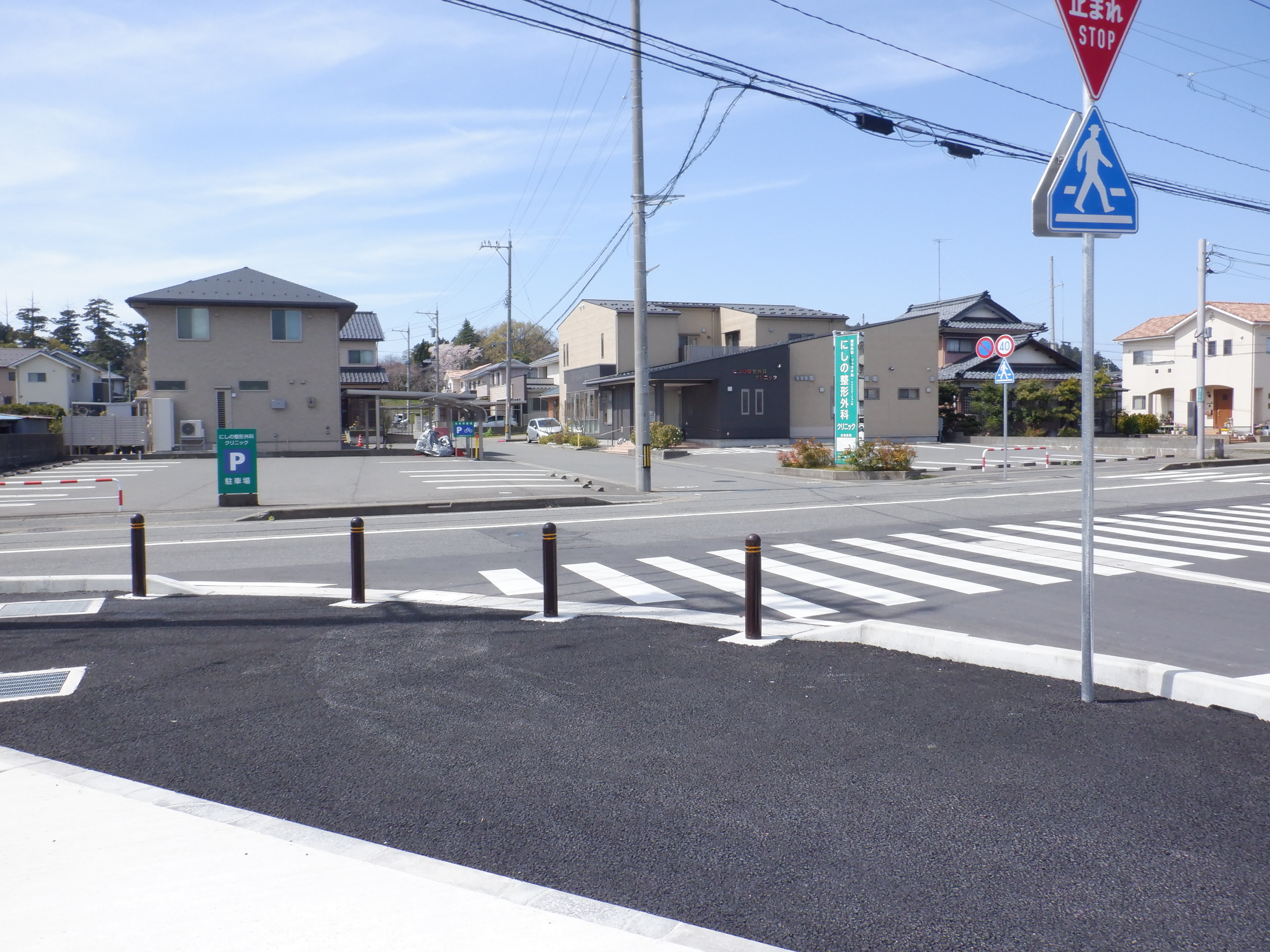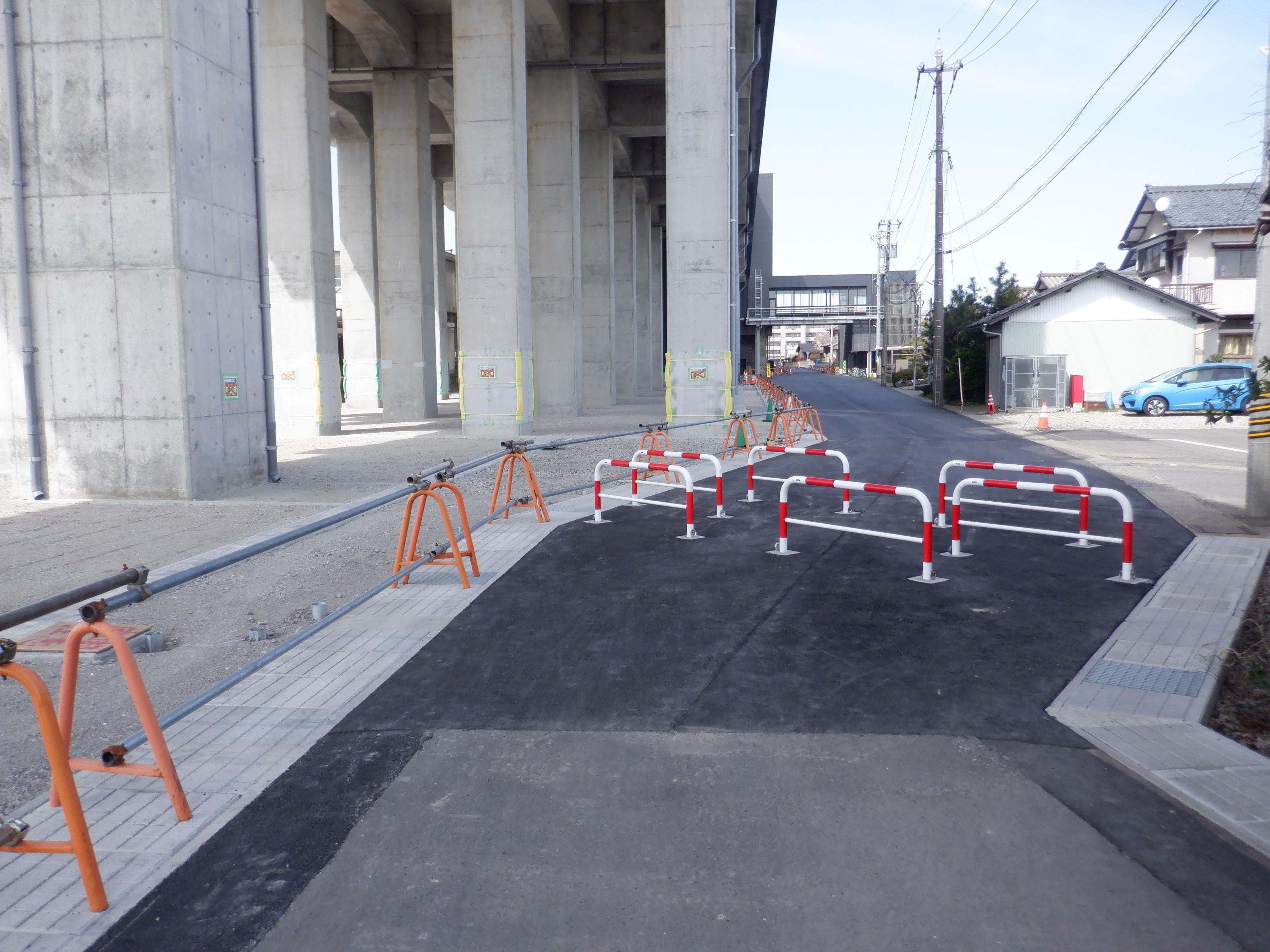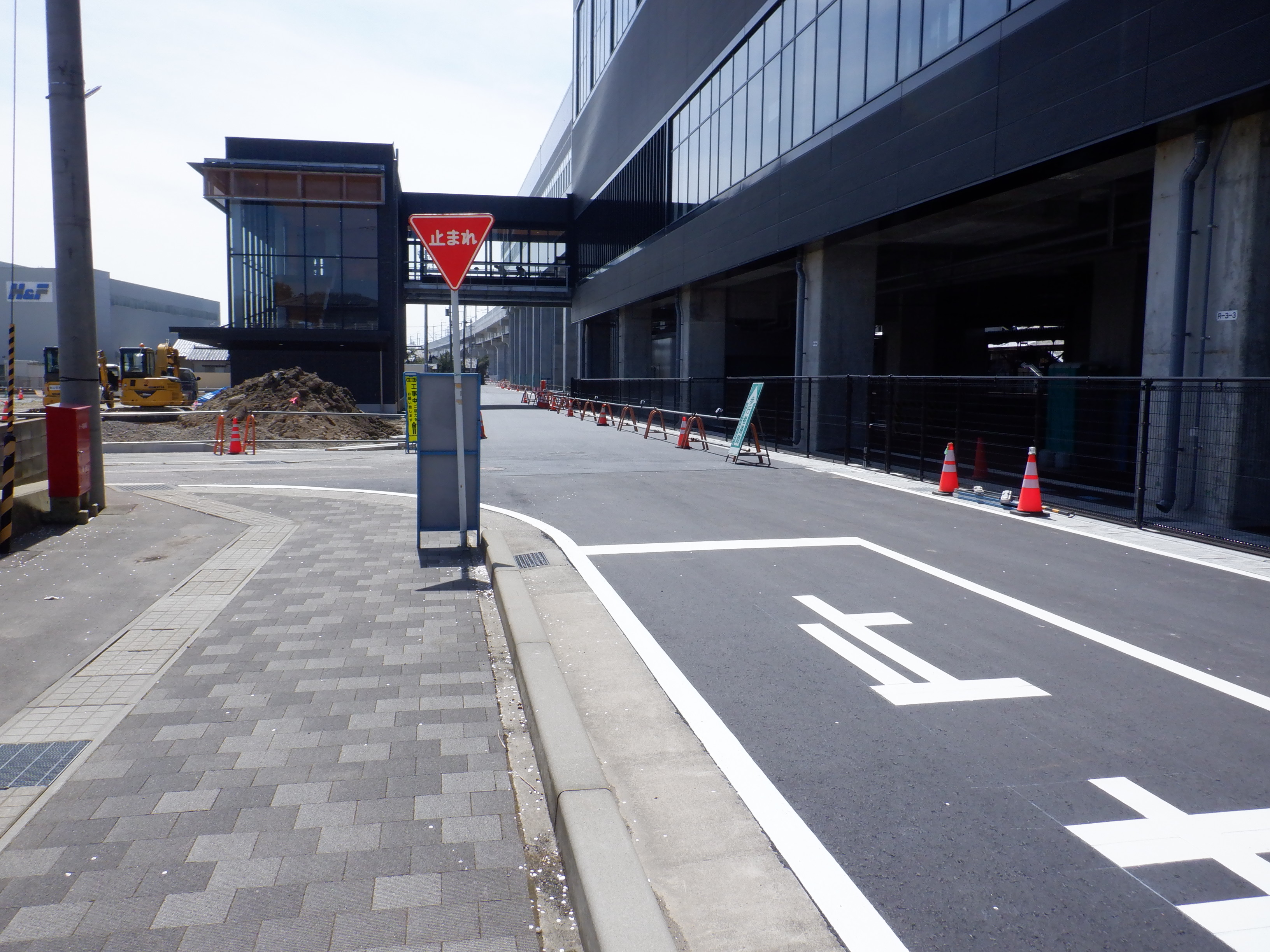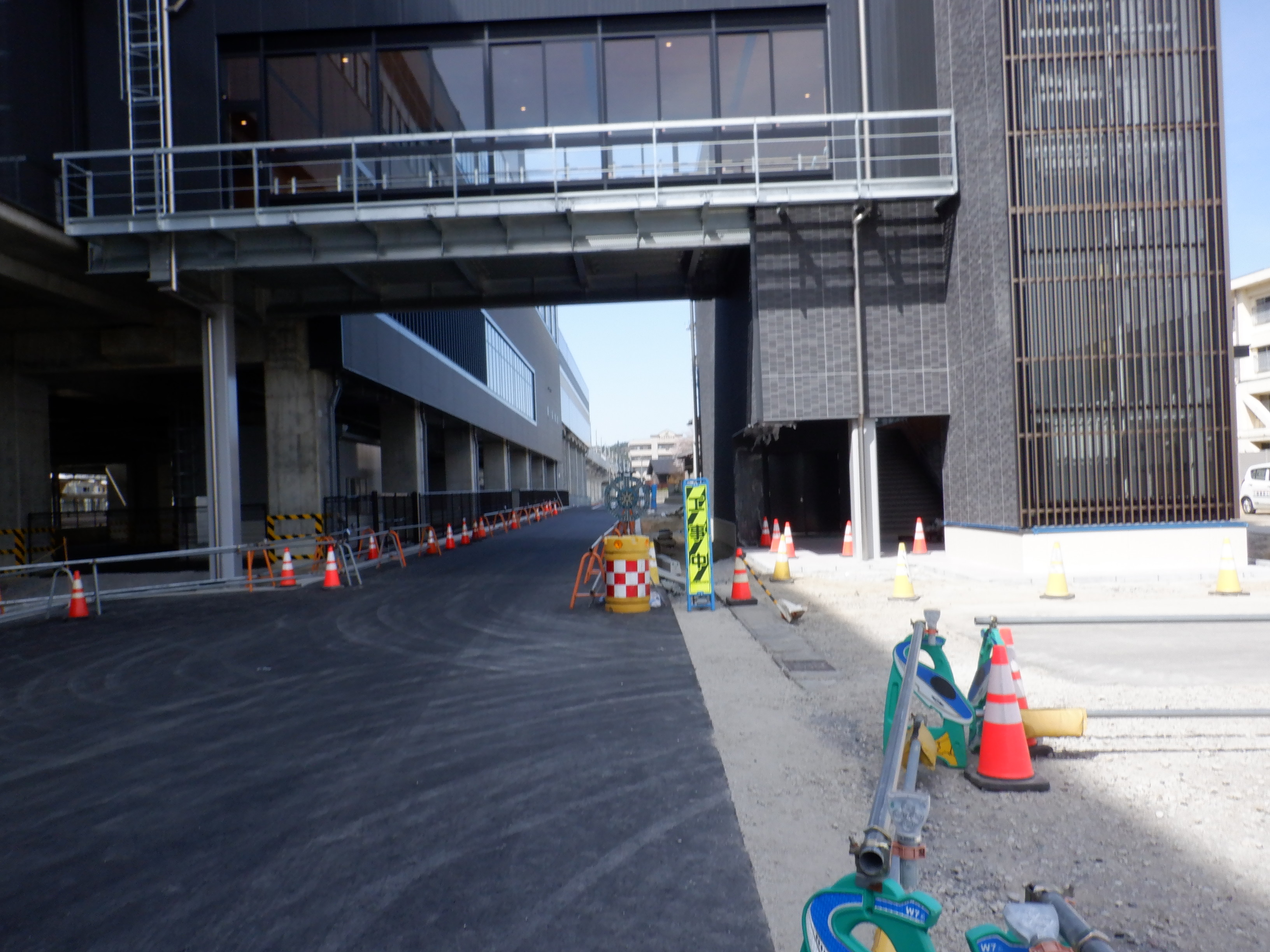 西口の道路の延長部分出入口。いよいよこの道路が開通しました。