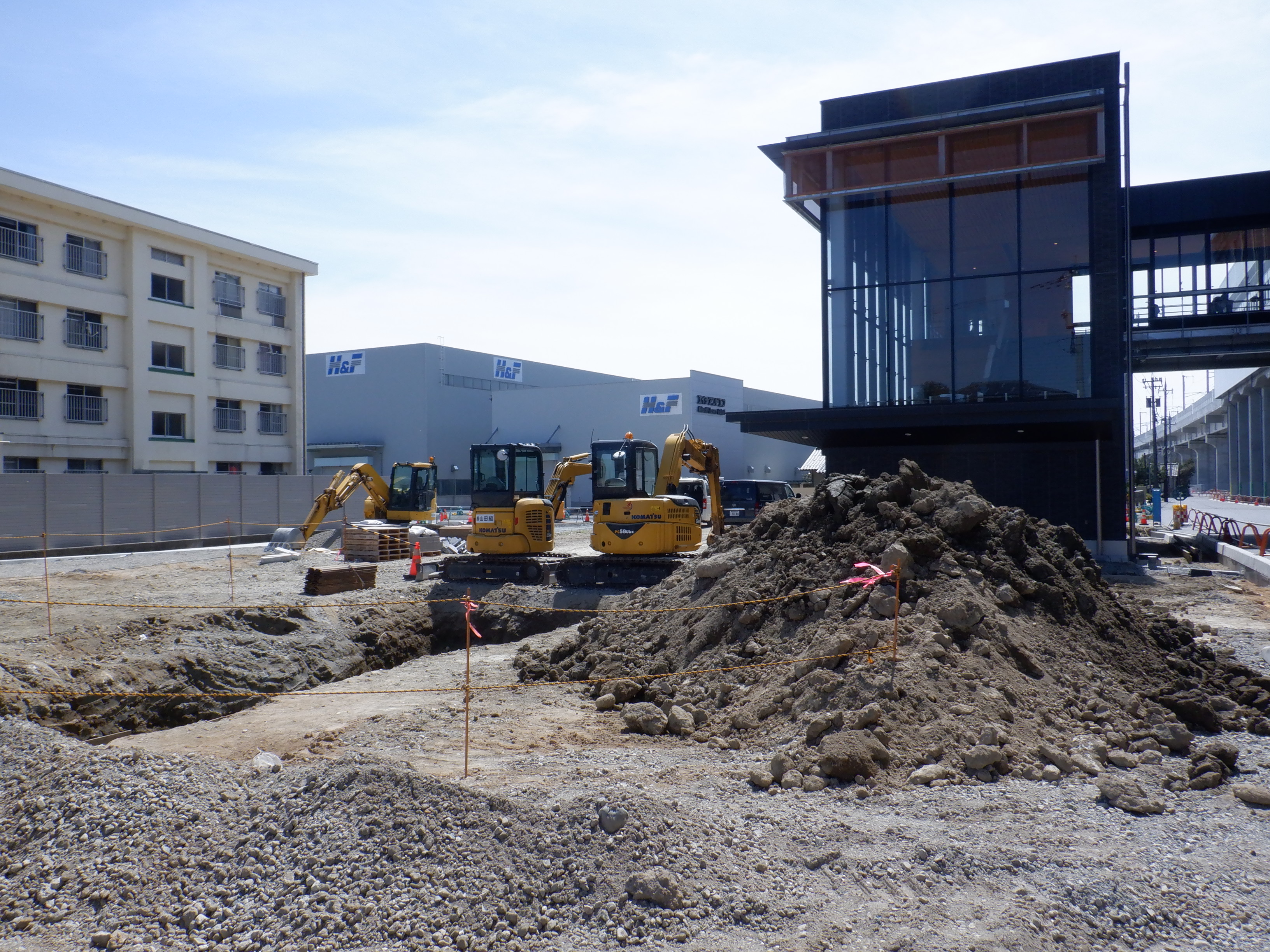 前回、アフレアの誕生祭ということで人が多くて撮れなかった分、今回はアフレアを少し多めに撮ってあります。また、西口からの道路の延長部分が開通しましたので、開通区間を少し多めに撮ってあります。さらに桜の花の時期なので、竹田川対岸からも撮ってあります。そのため今回も1回分で1ページですが、普段の2回分の分量になっています。