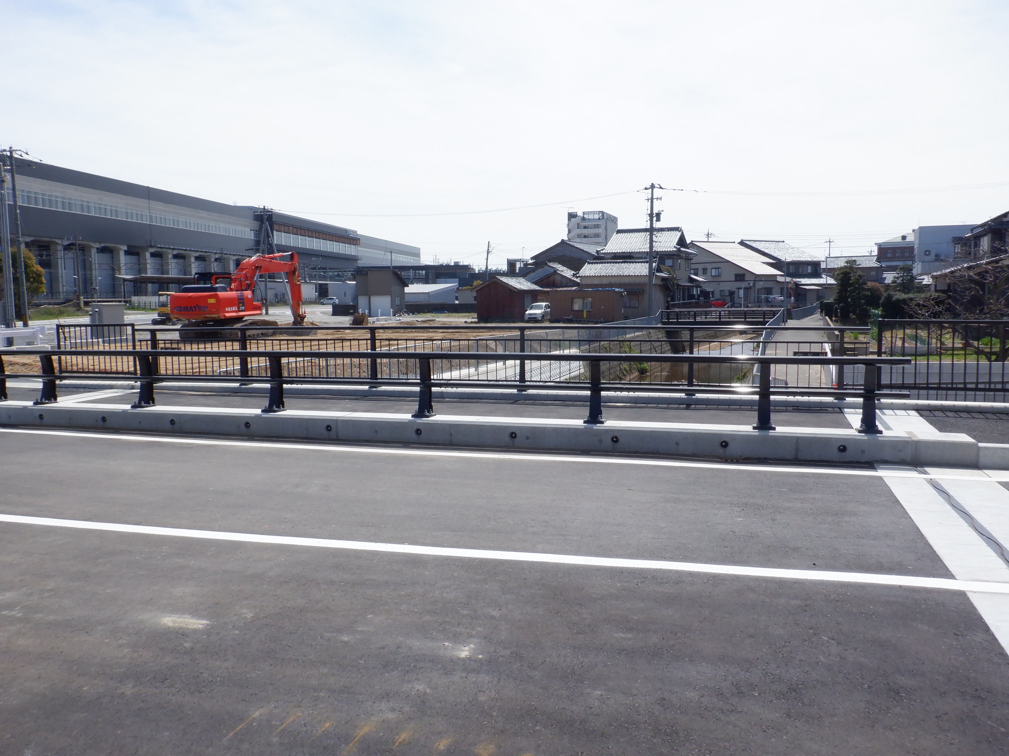 一旦元の道路に戻り、今まで通っていた道へ進みます。新しく架かった橋を見ます。