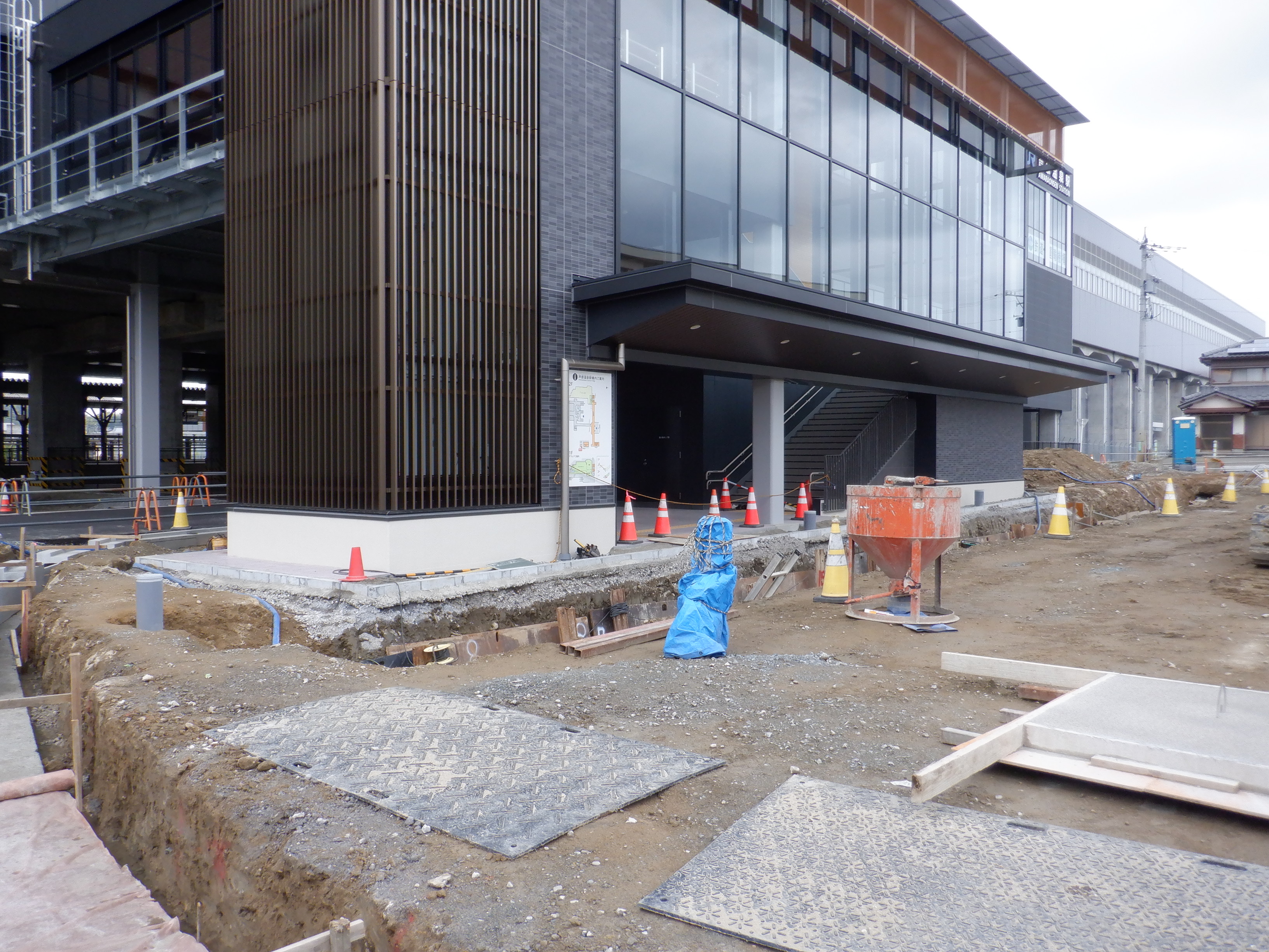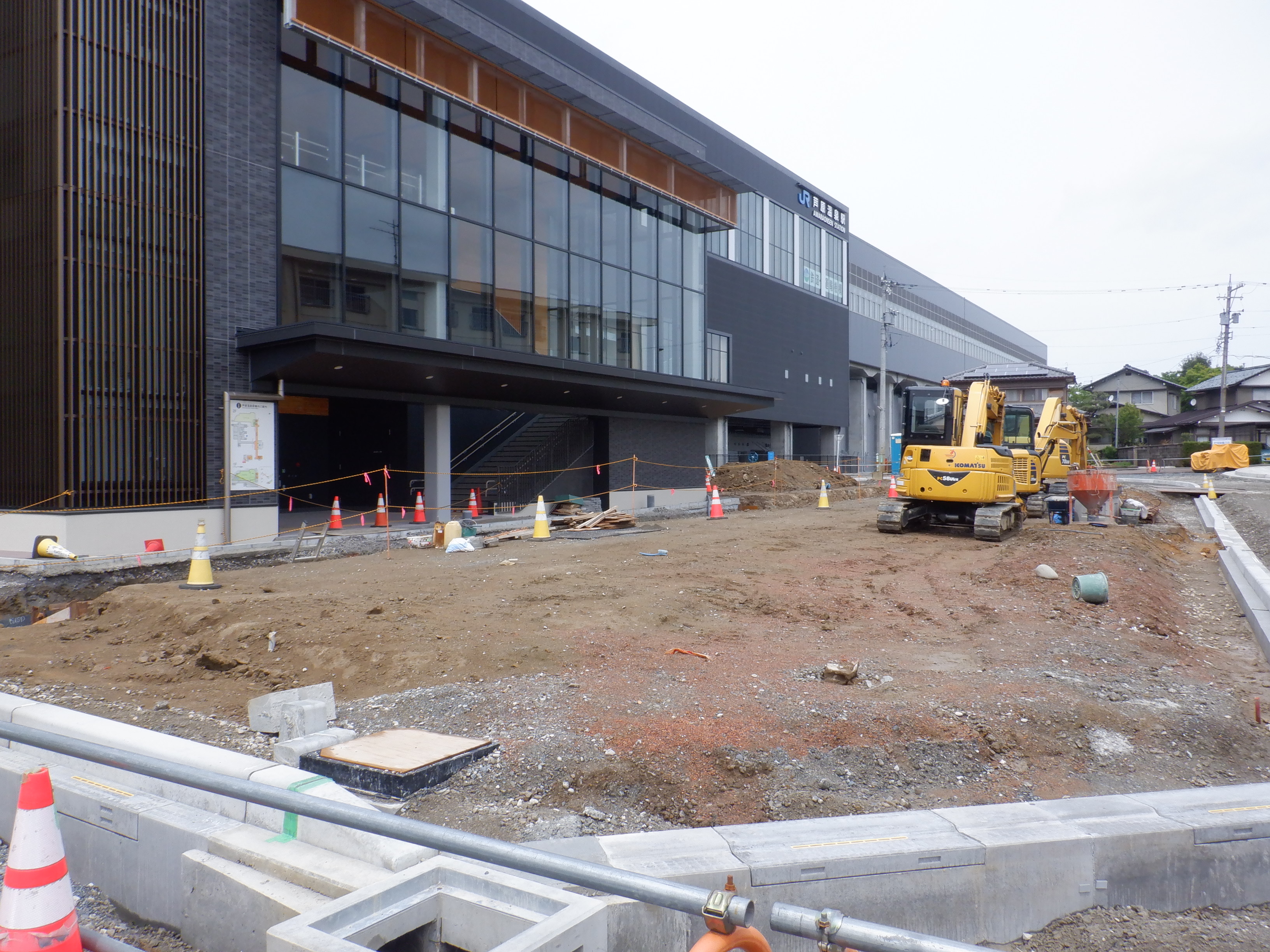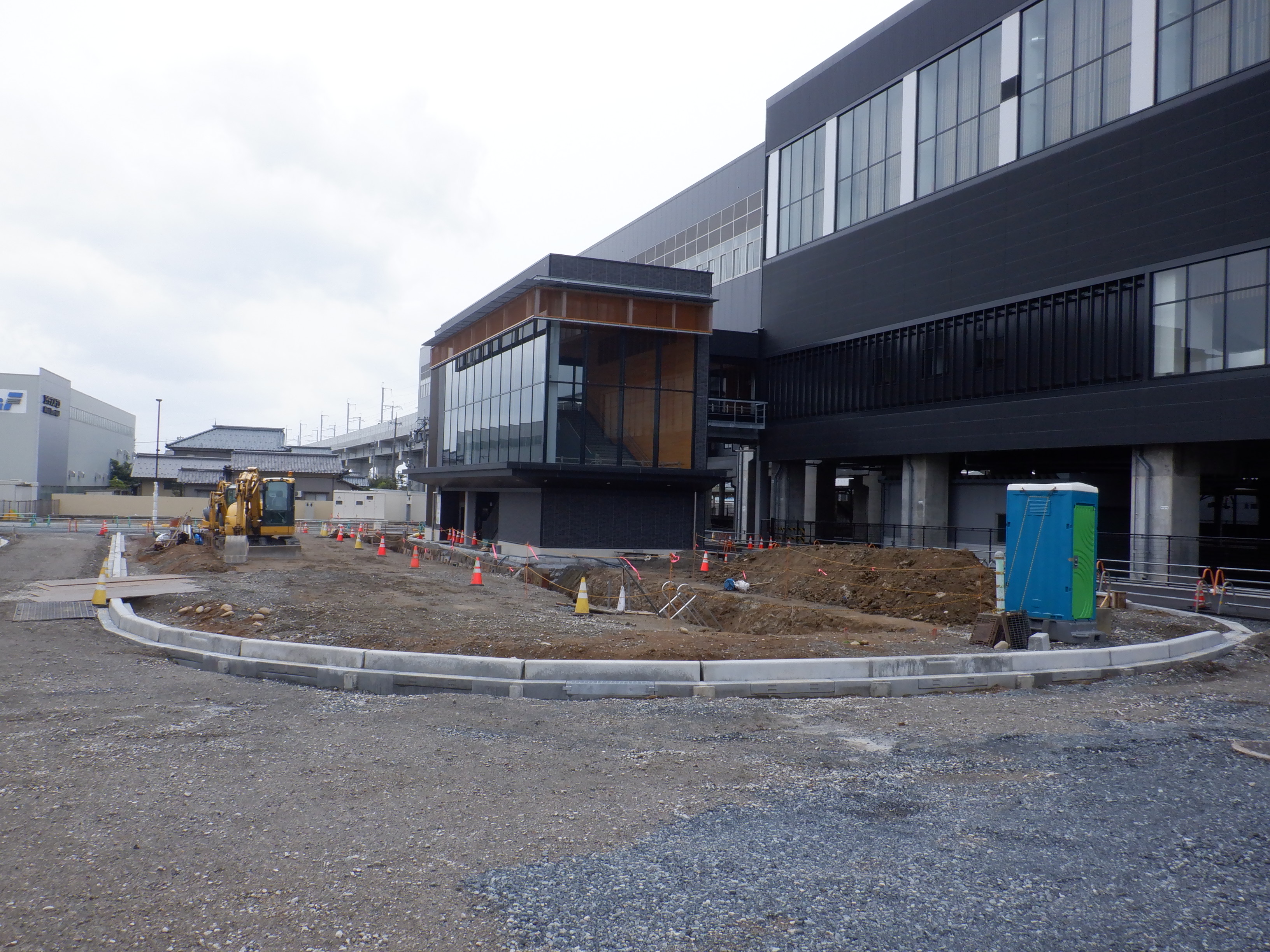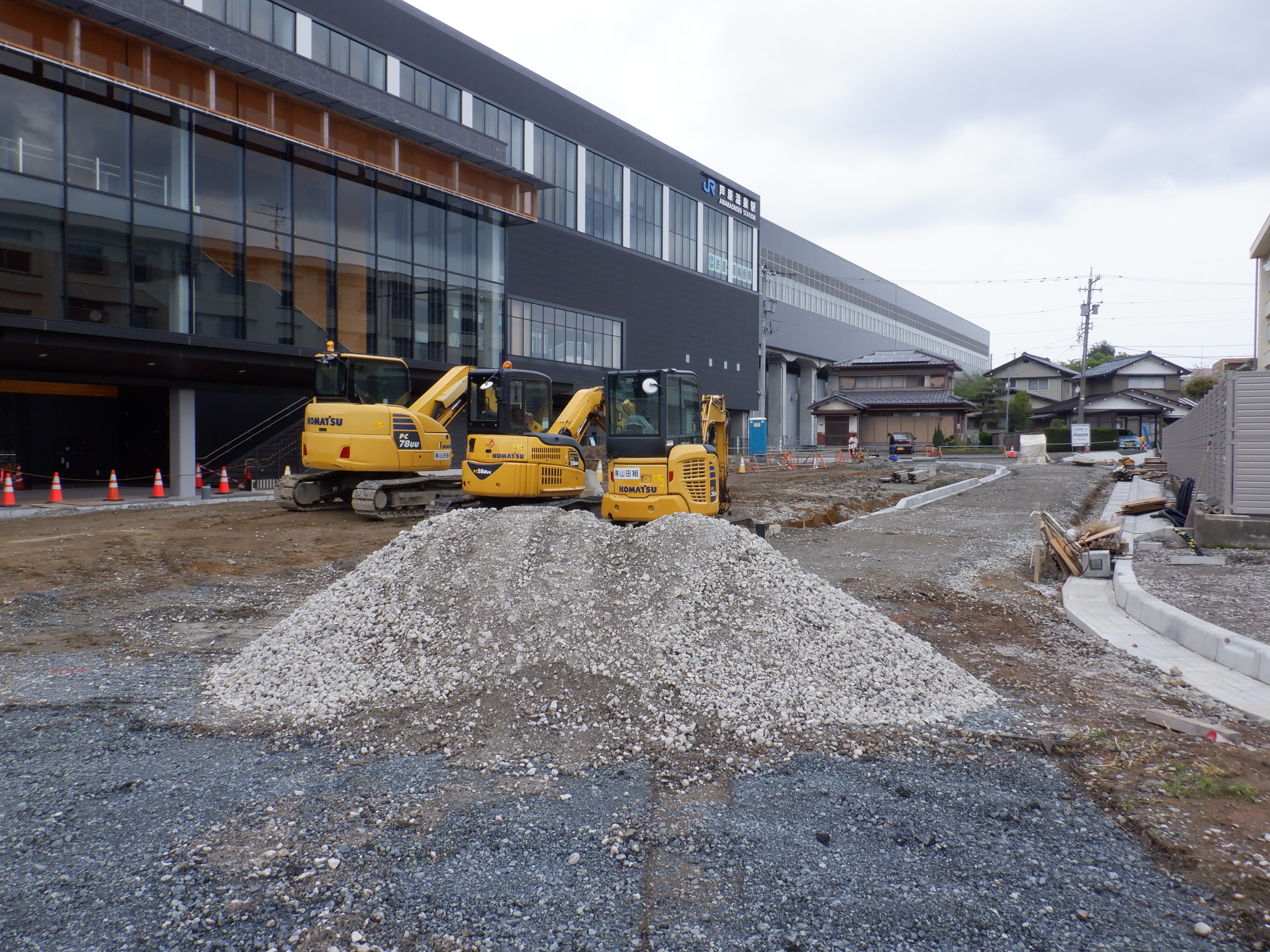 前回から大きくは変化していませんが、東口の交通広場の工事が進んでいます。