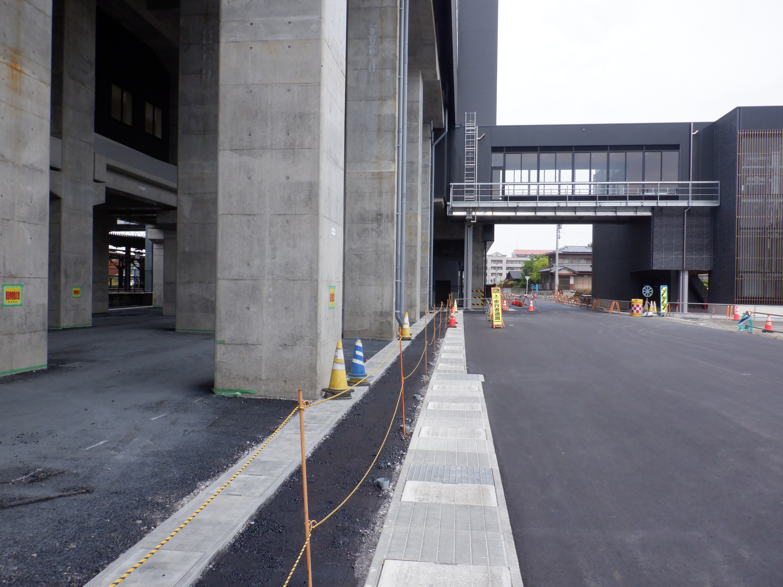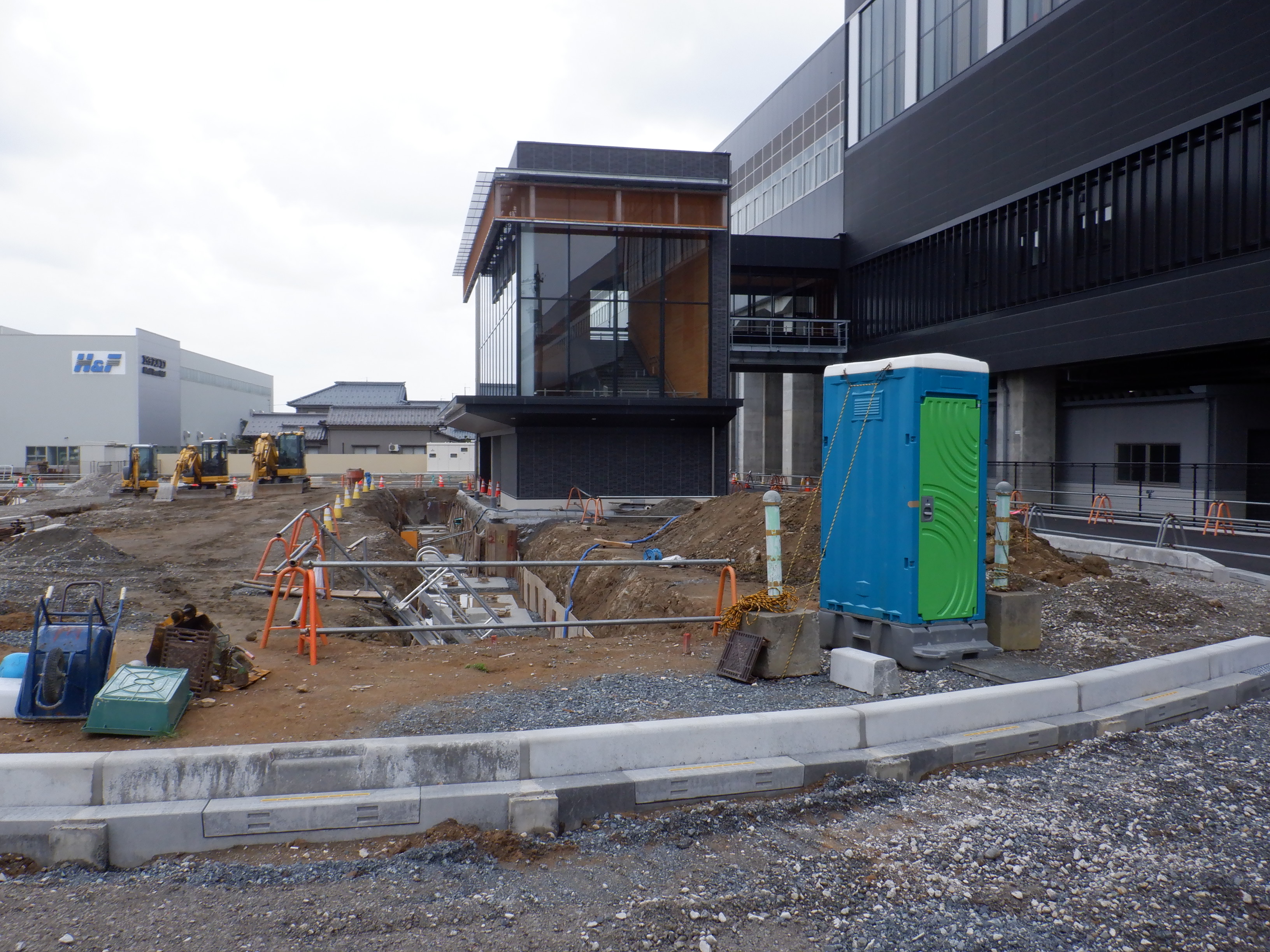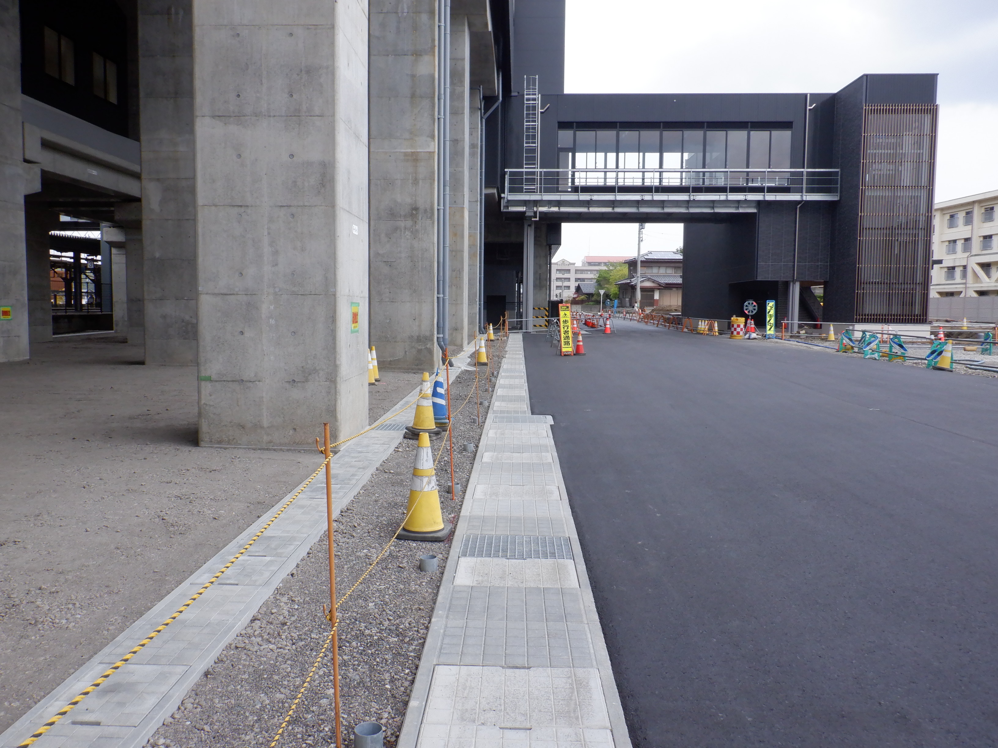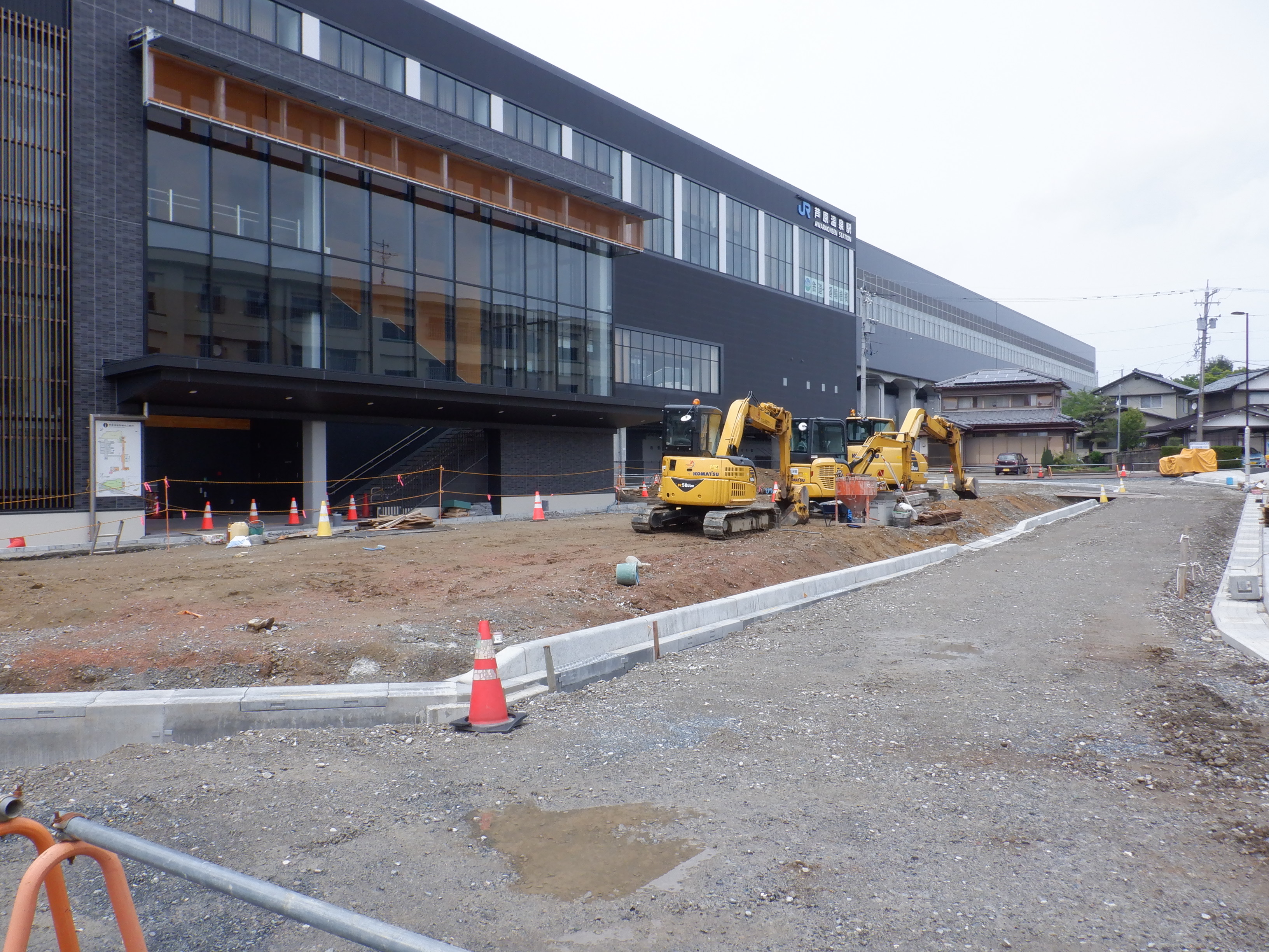 前回から大きくは変化していませんが、東口の交通広場の工事が進んでいます。