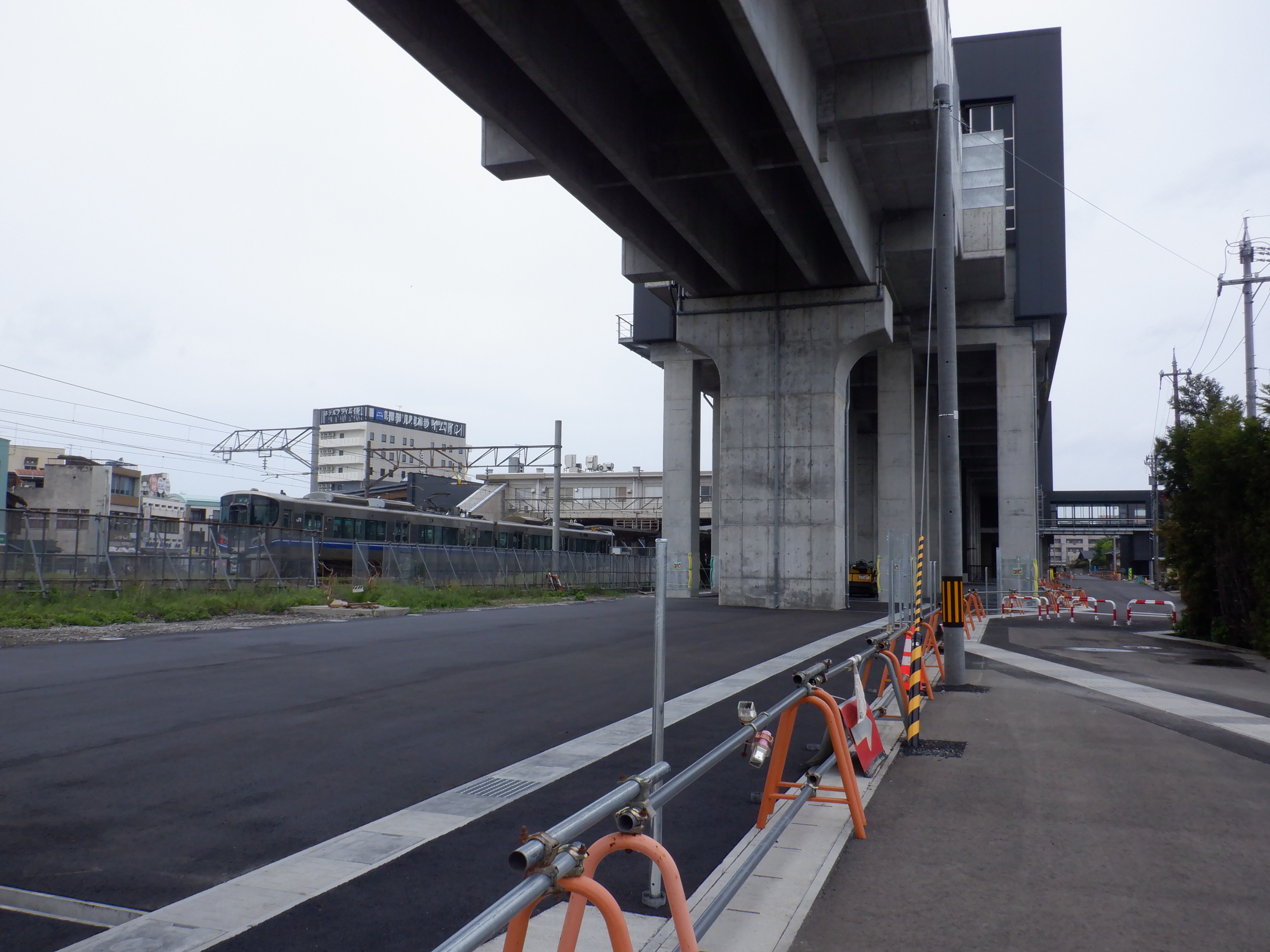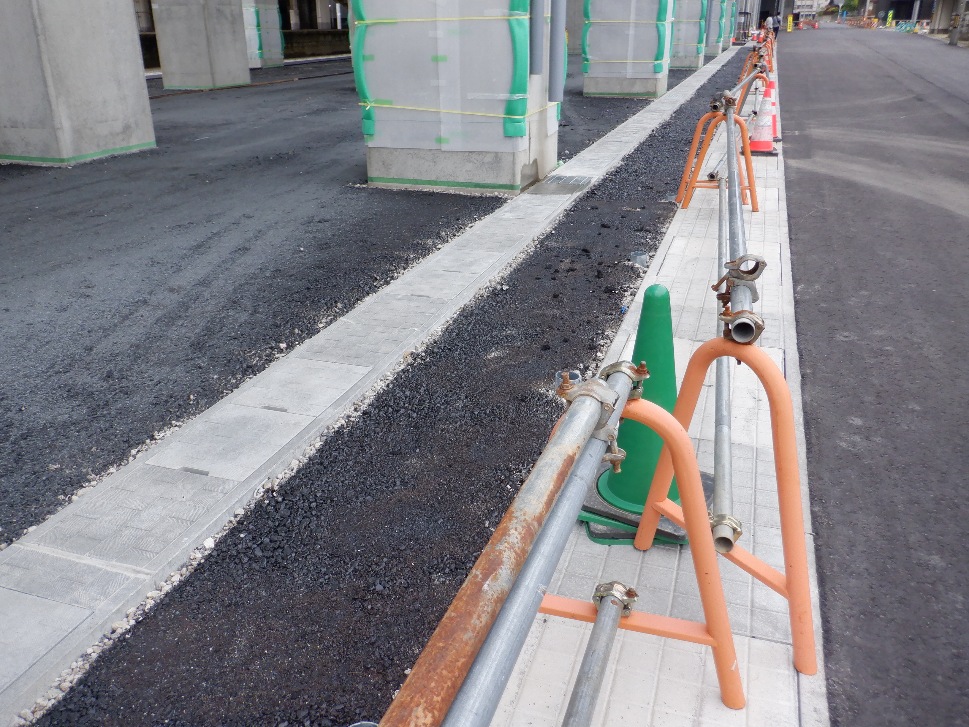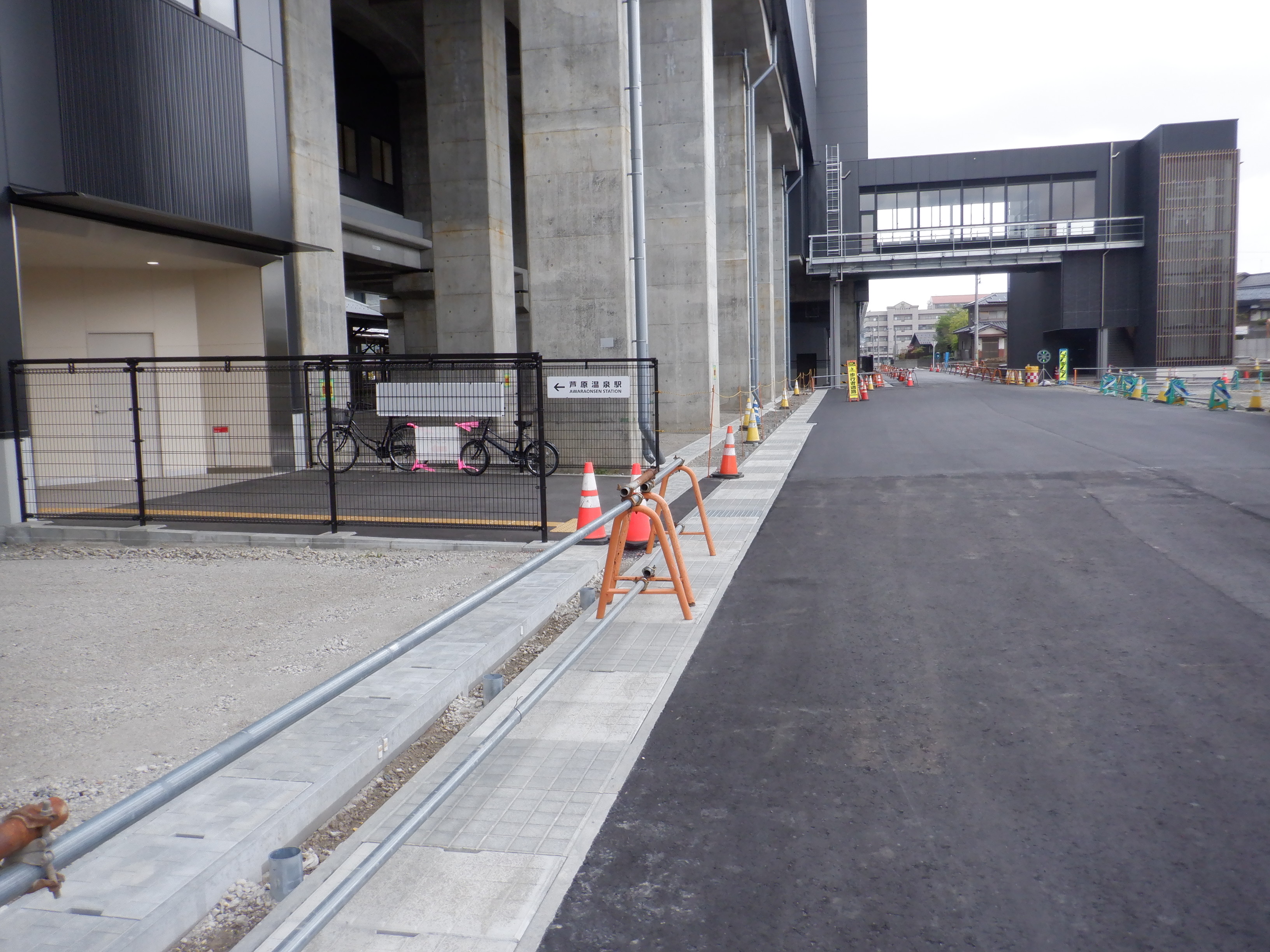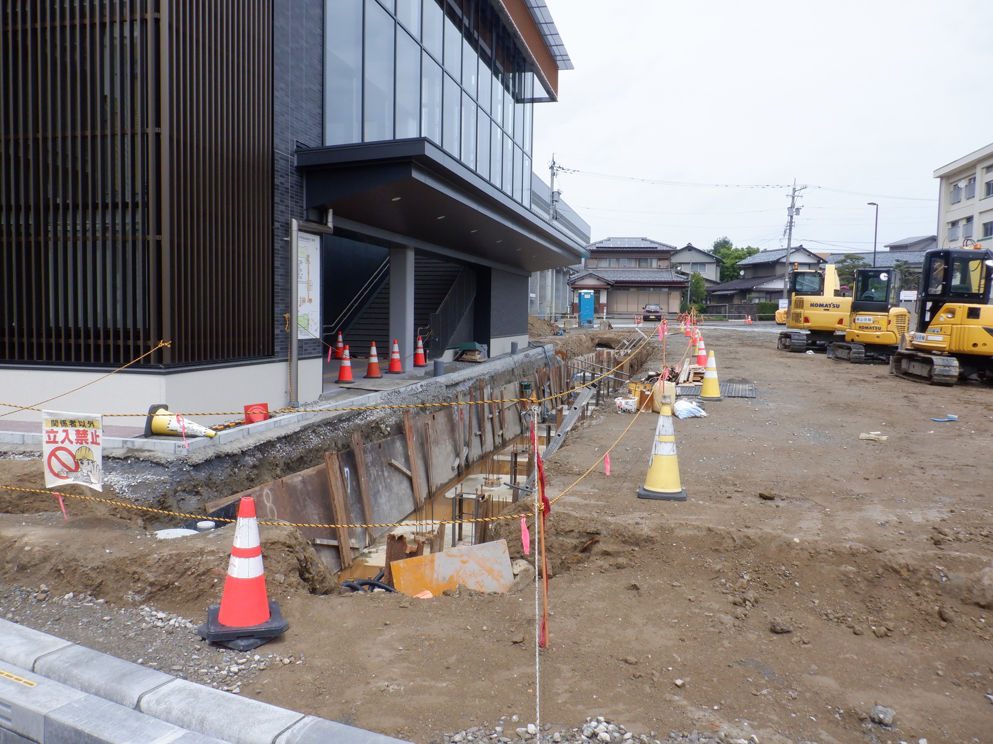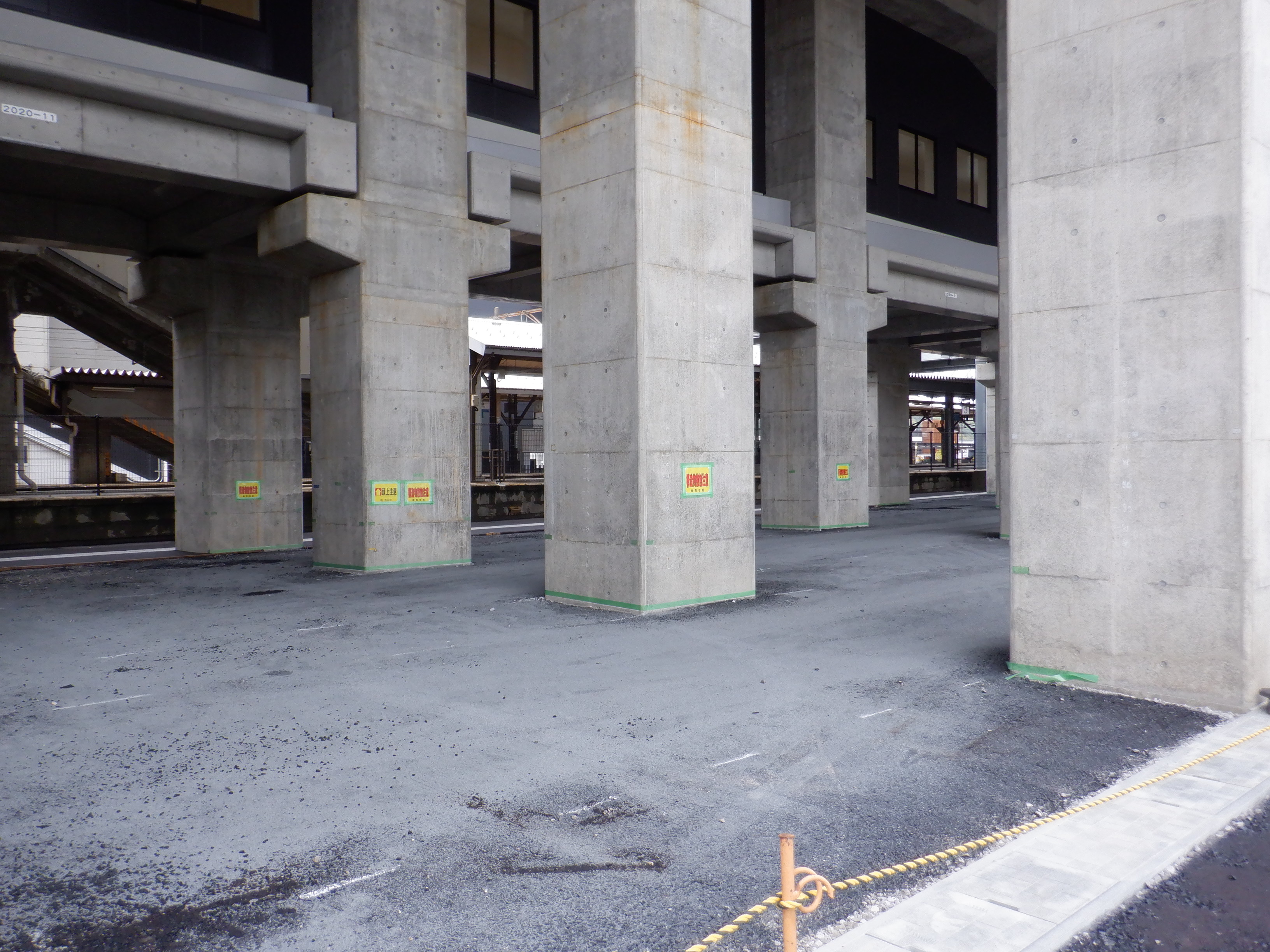 前回から大きくは変化していませんが、東口の交通広場の工事が進んでいます。