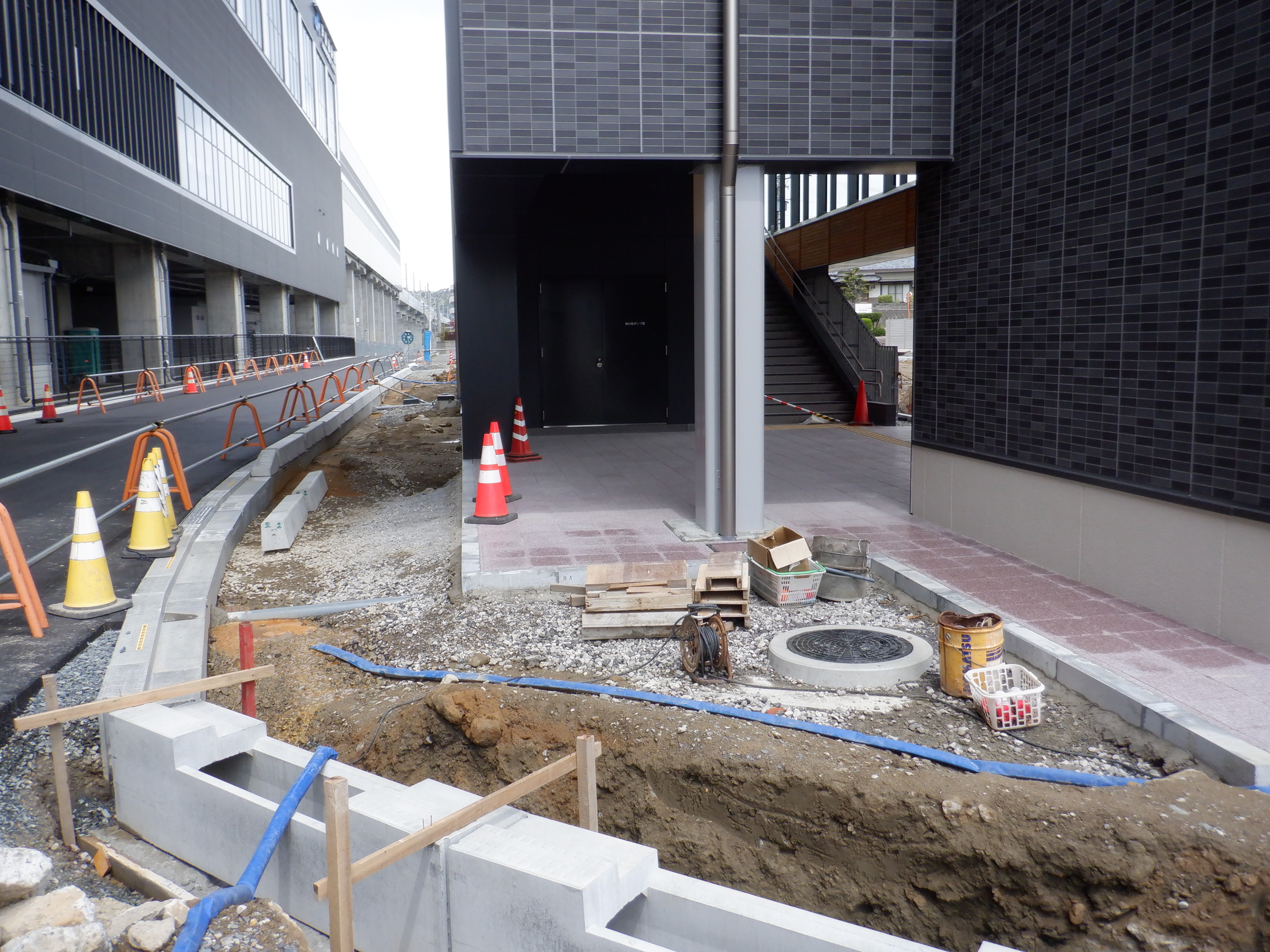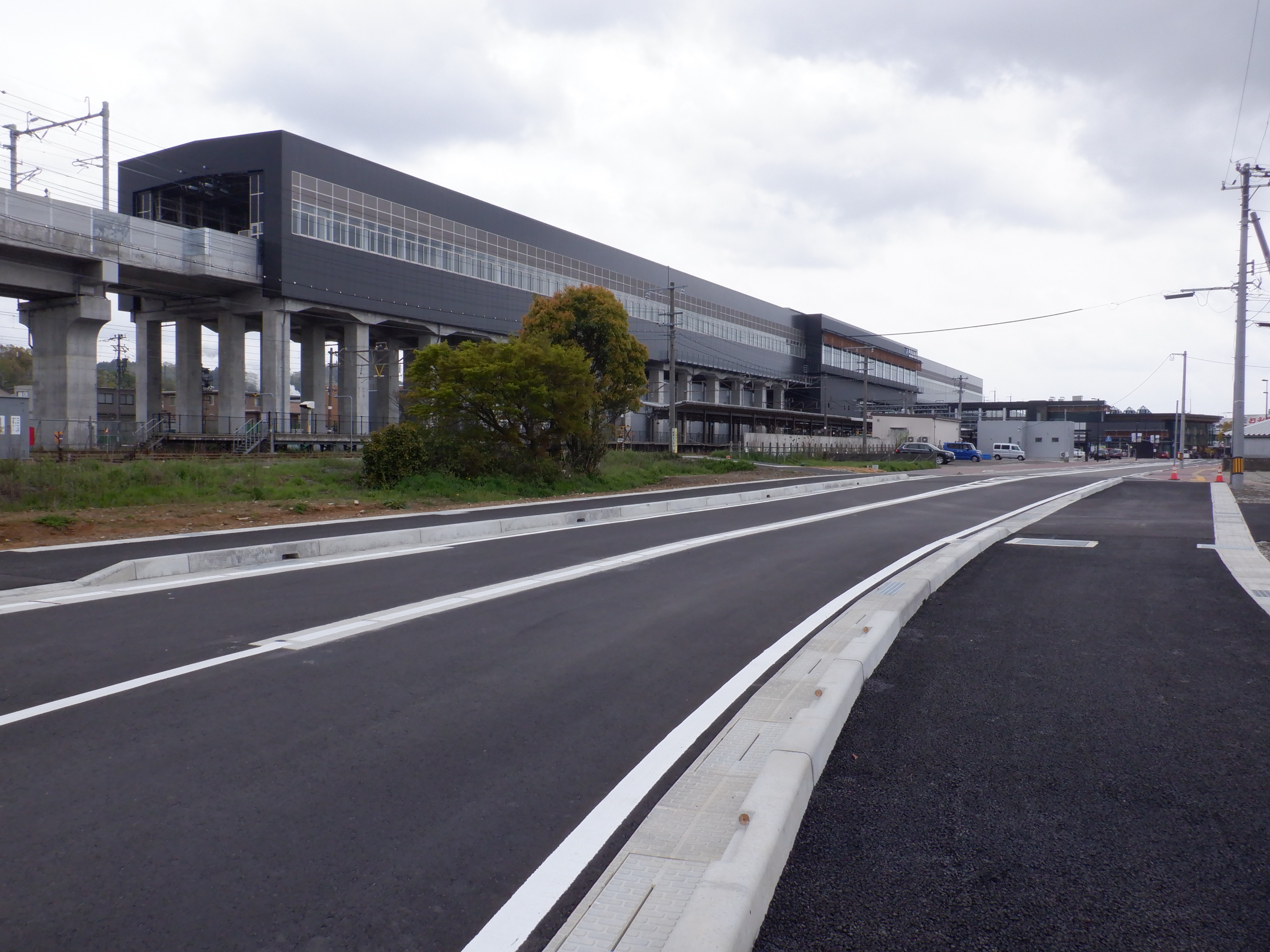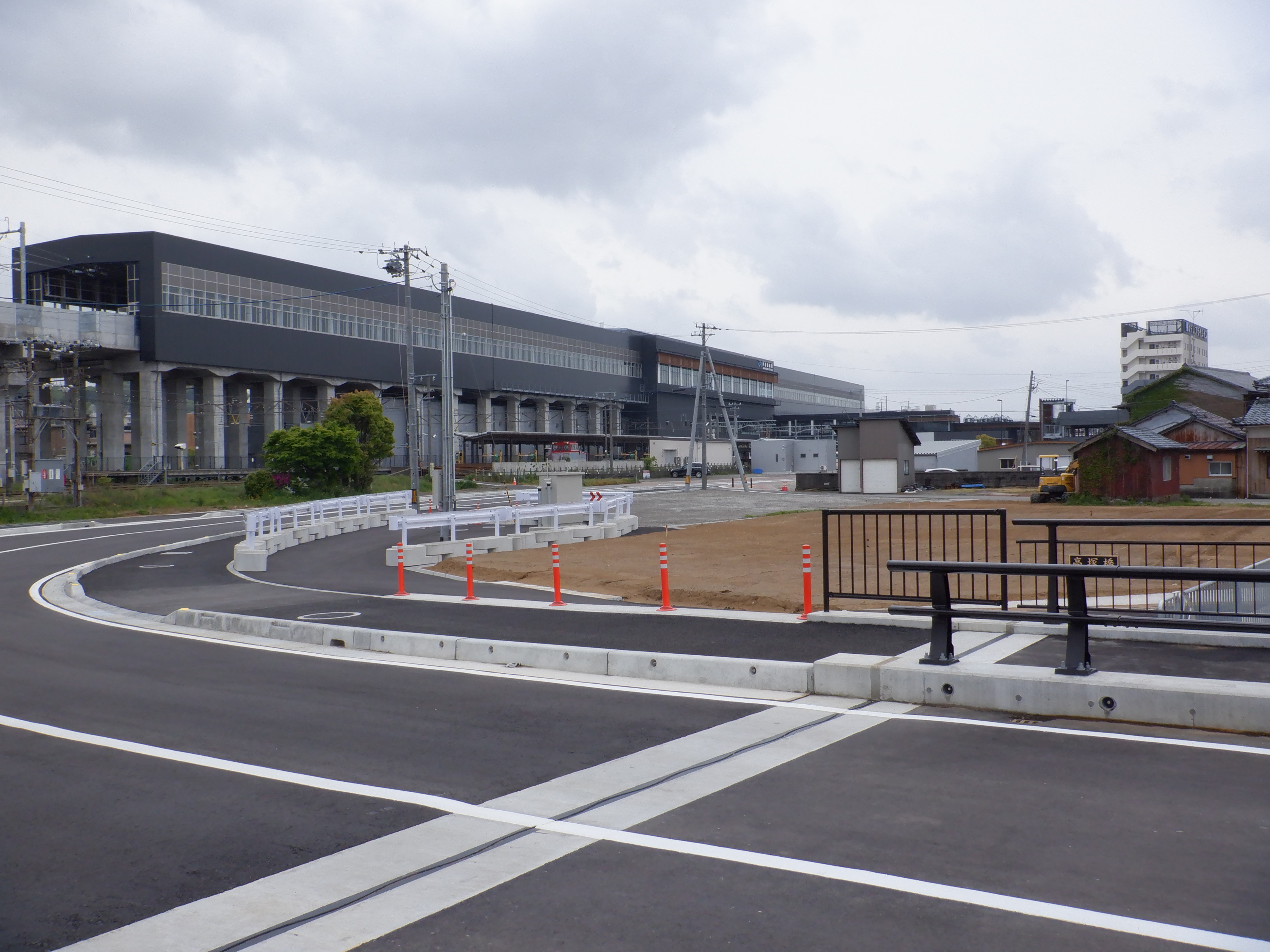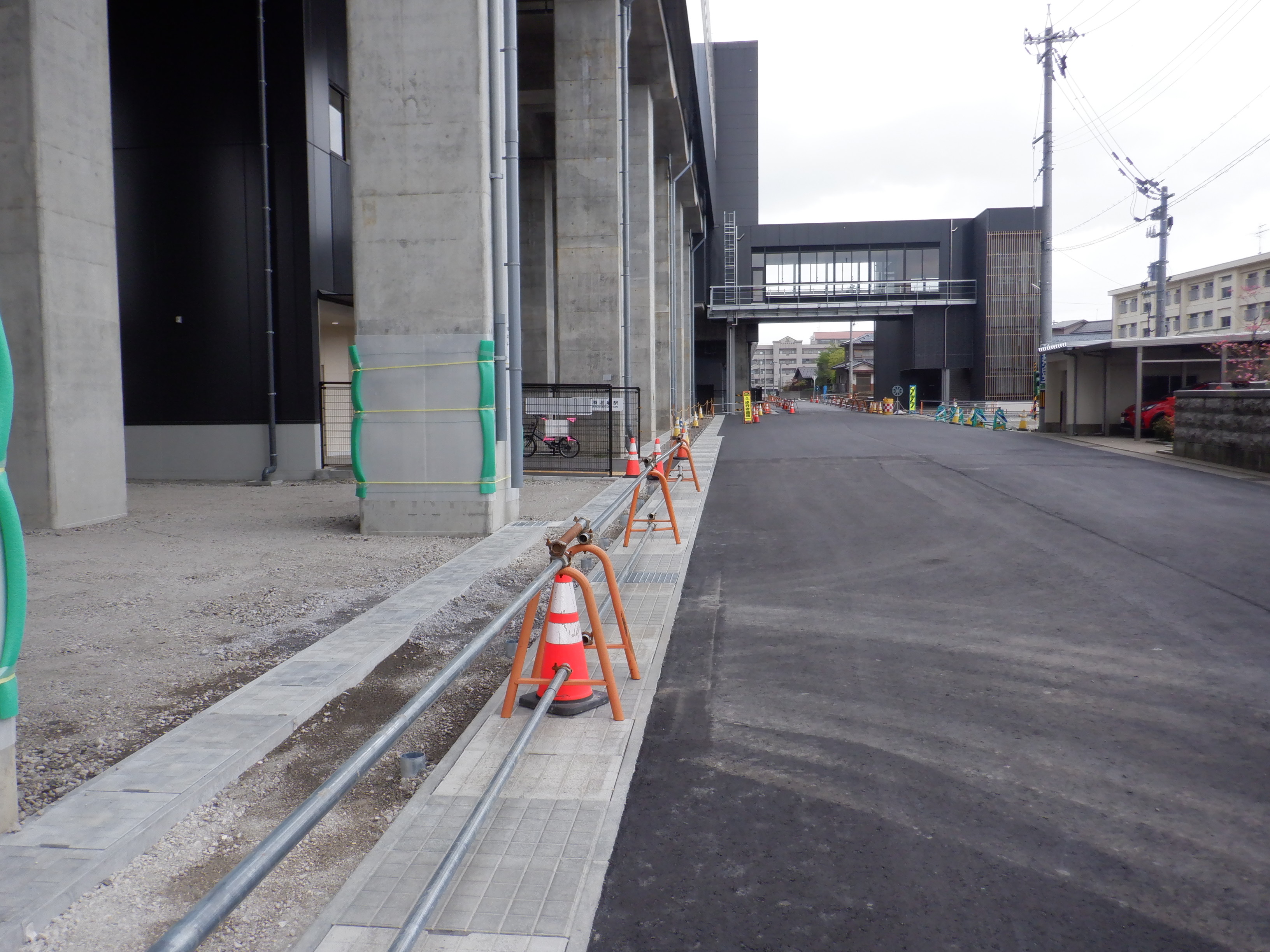 前回から大きくは変化していませんが、東口の交通広場の工事が進んでいます。