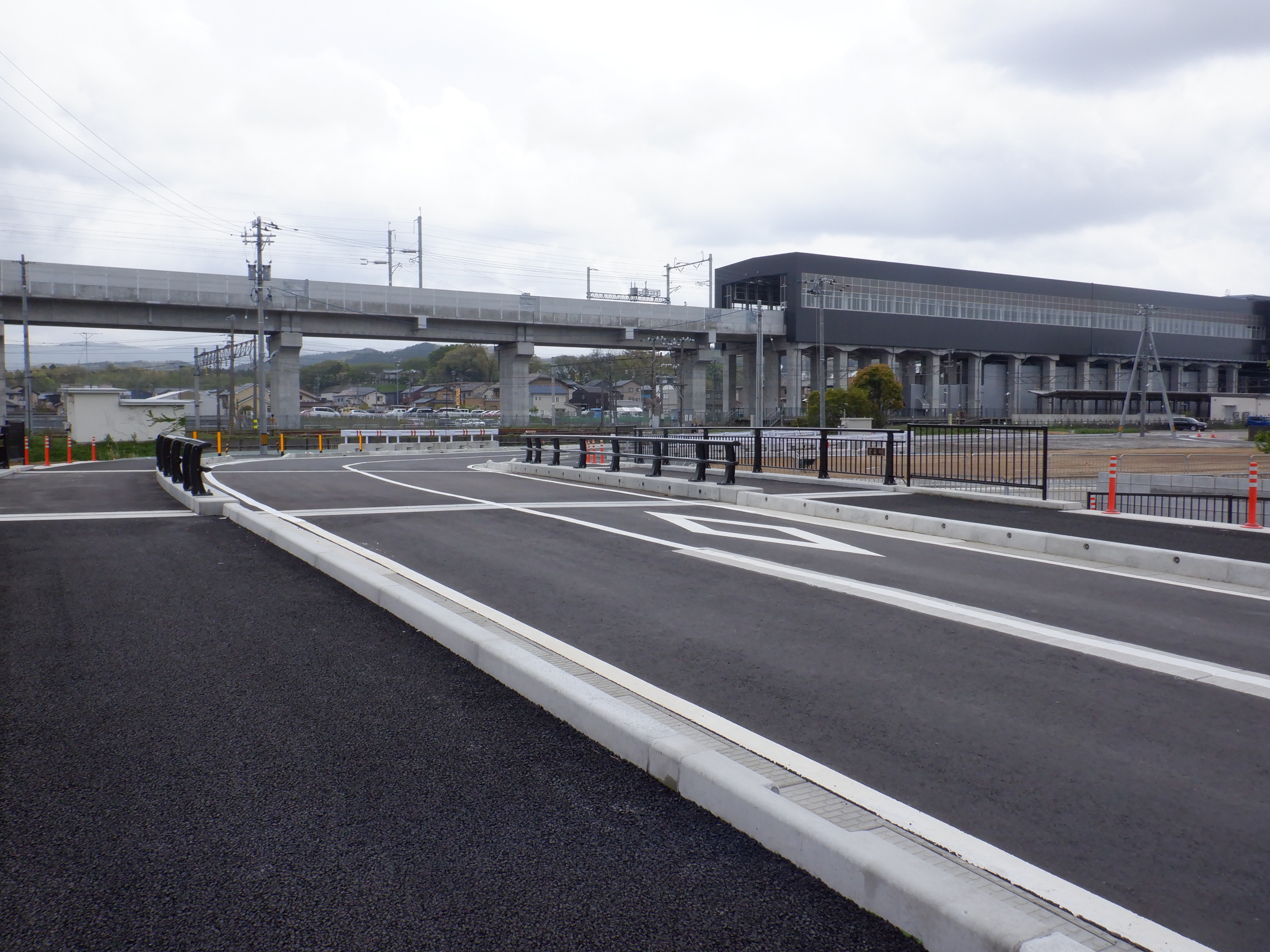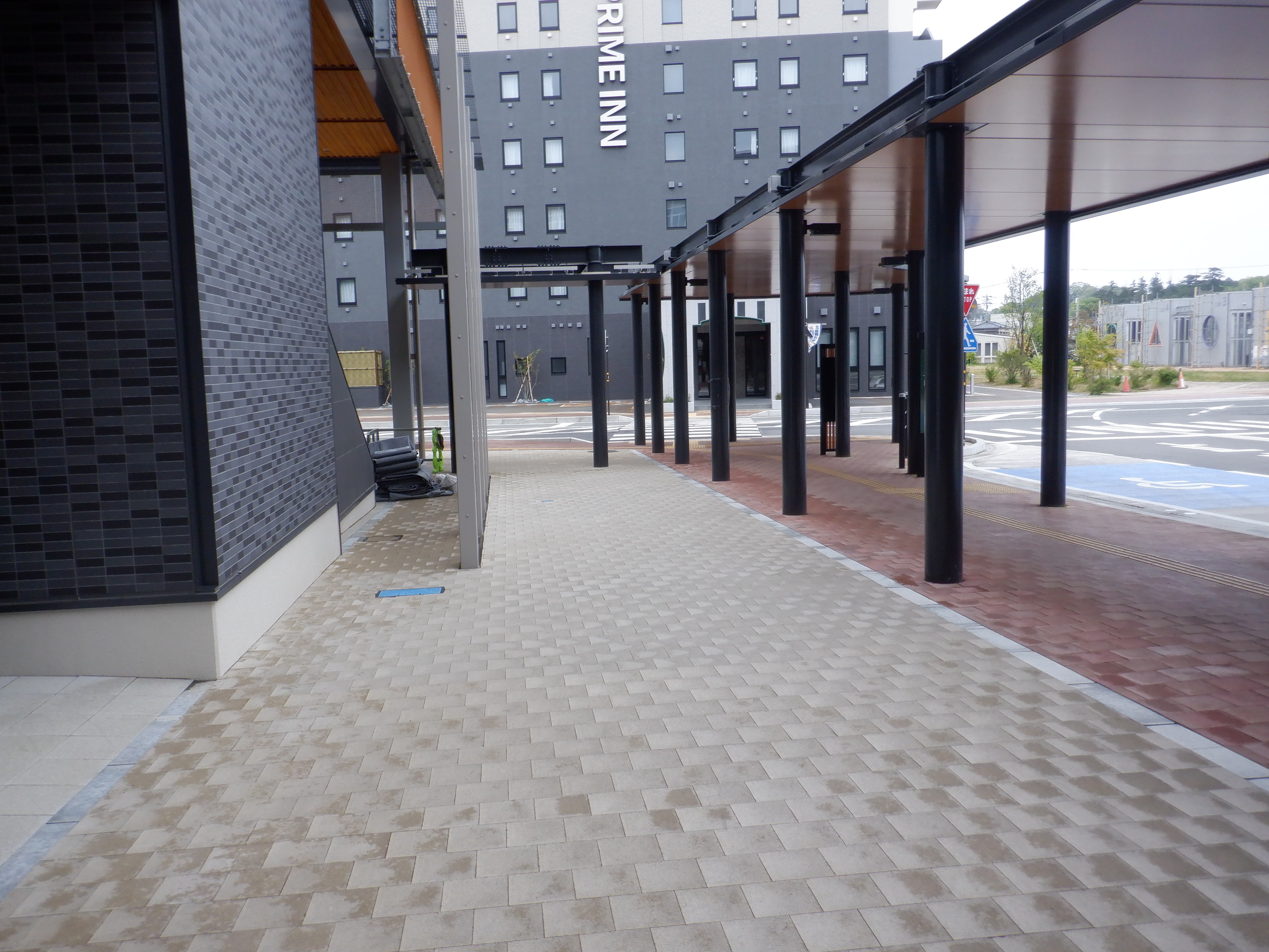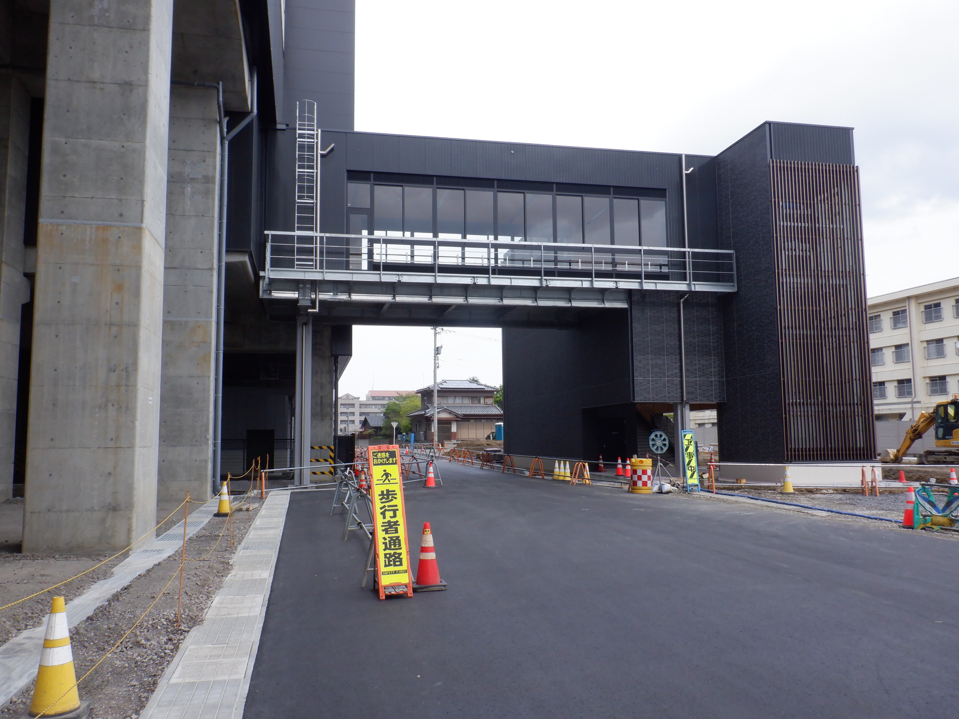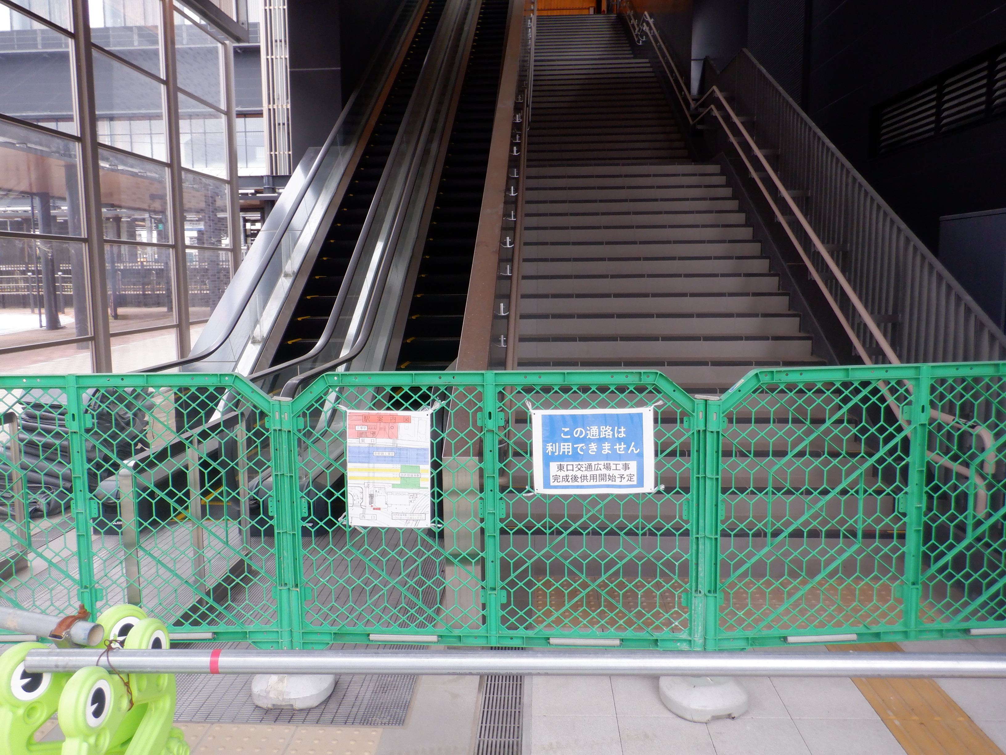 自由通路のエレベーターは東口交通広場供用開始後の供用となりました。