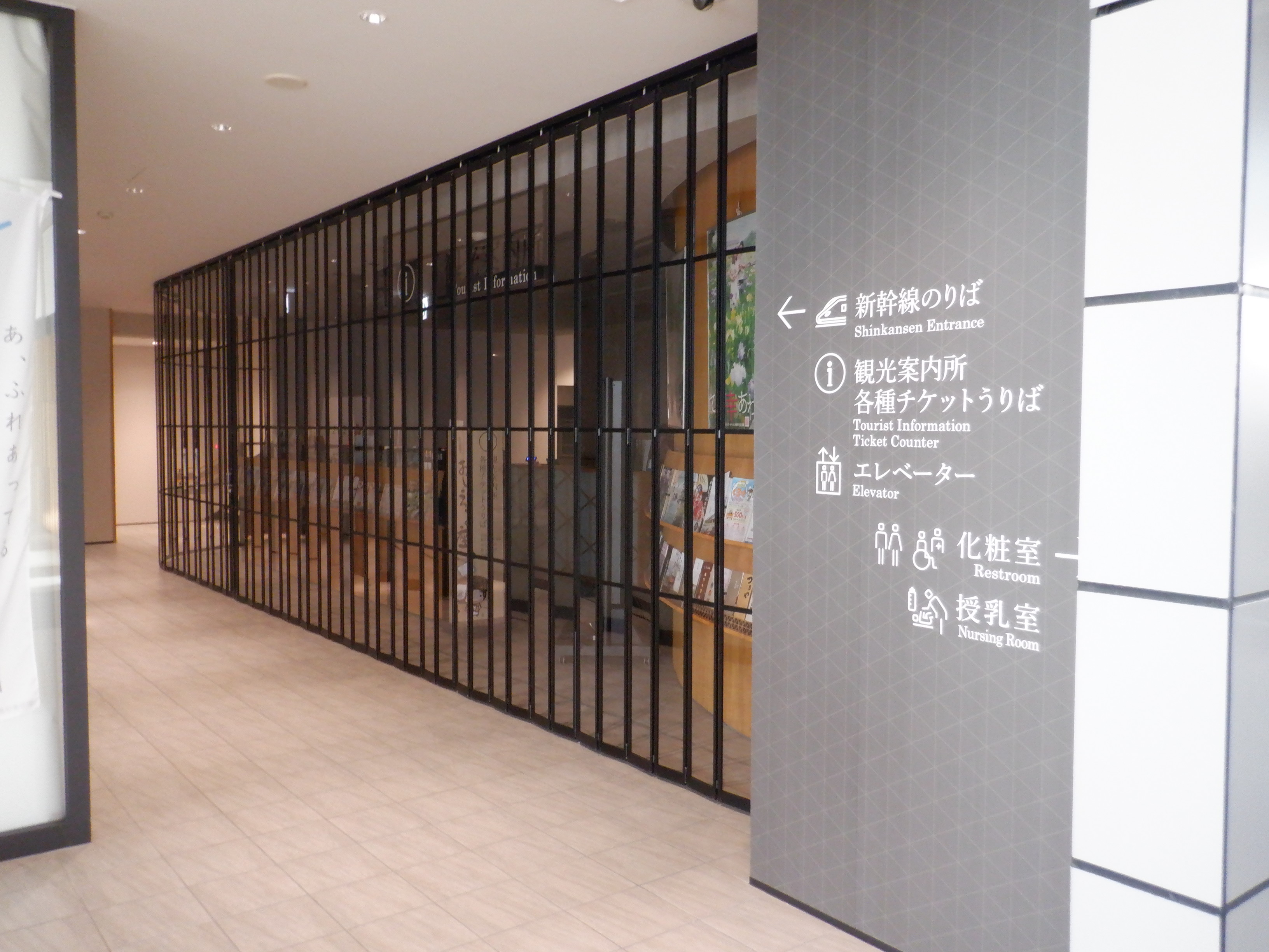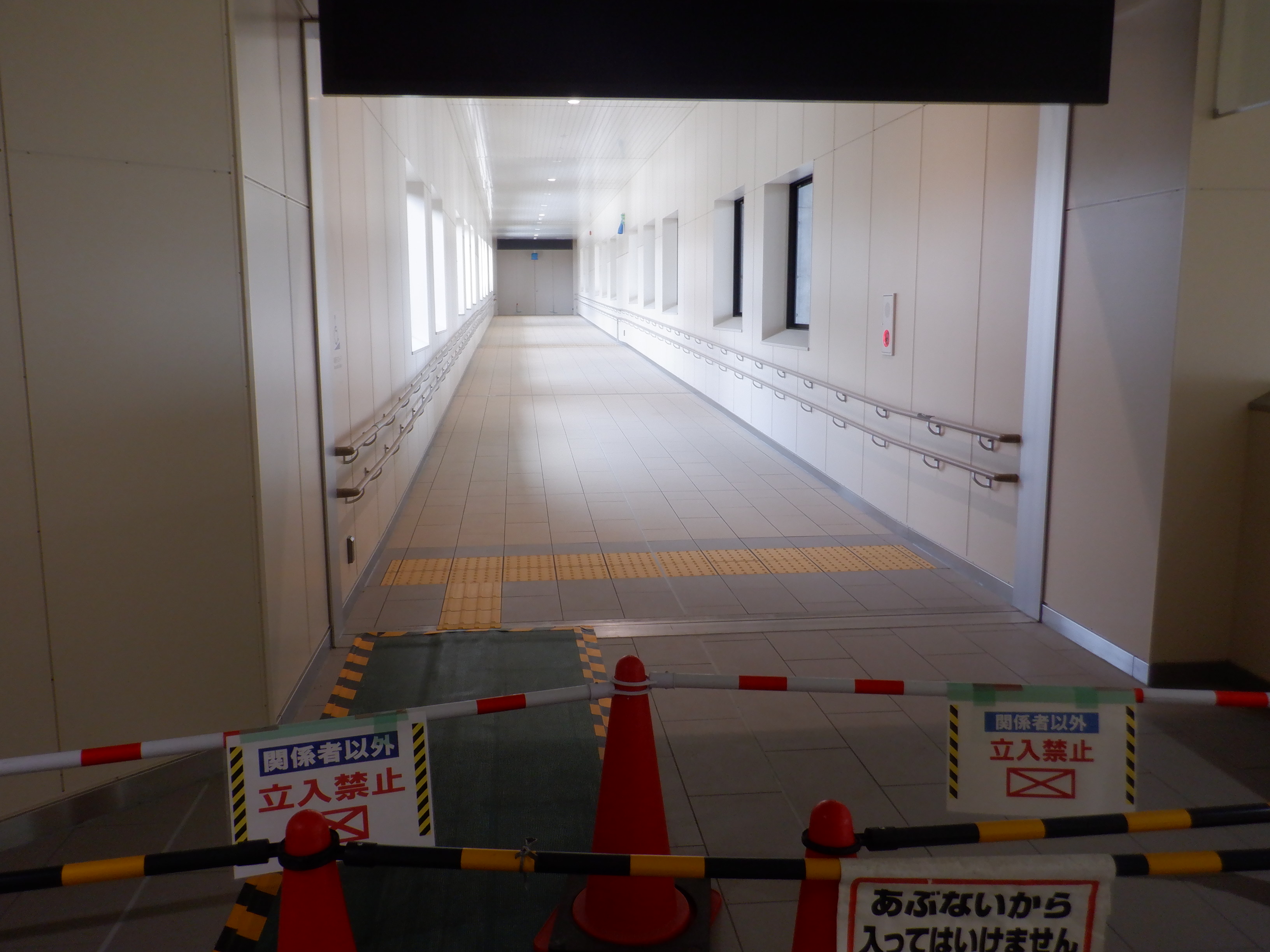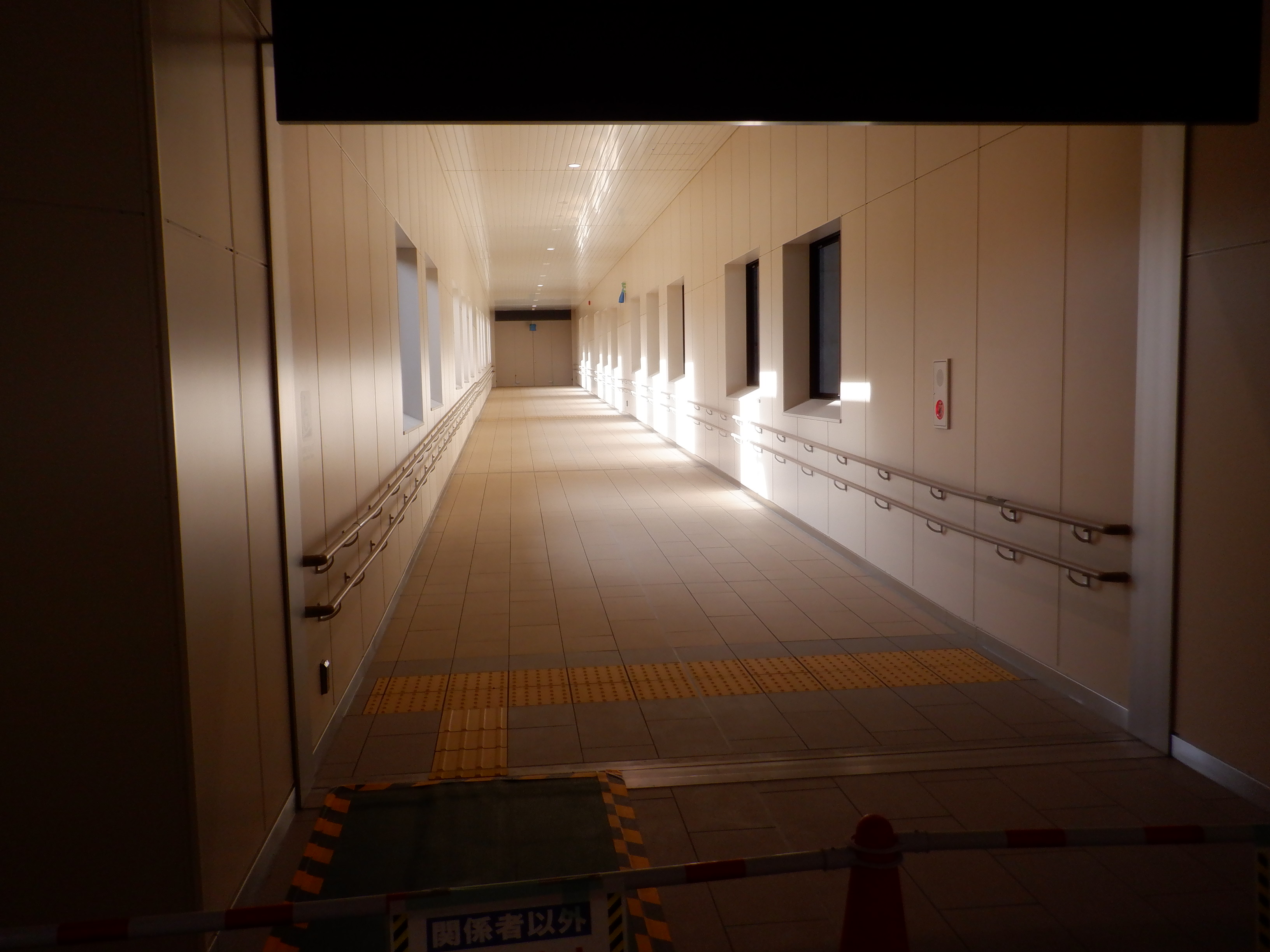 東口へ向かうところから見た新幹線のりばへの連絡通路。