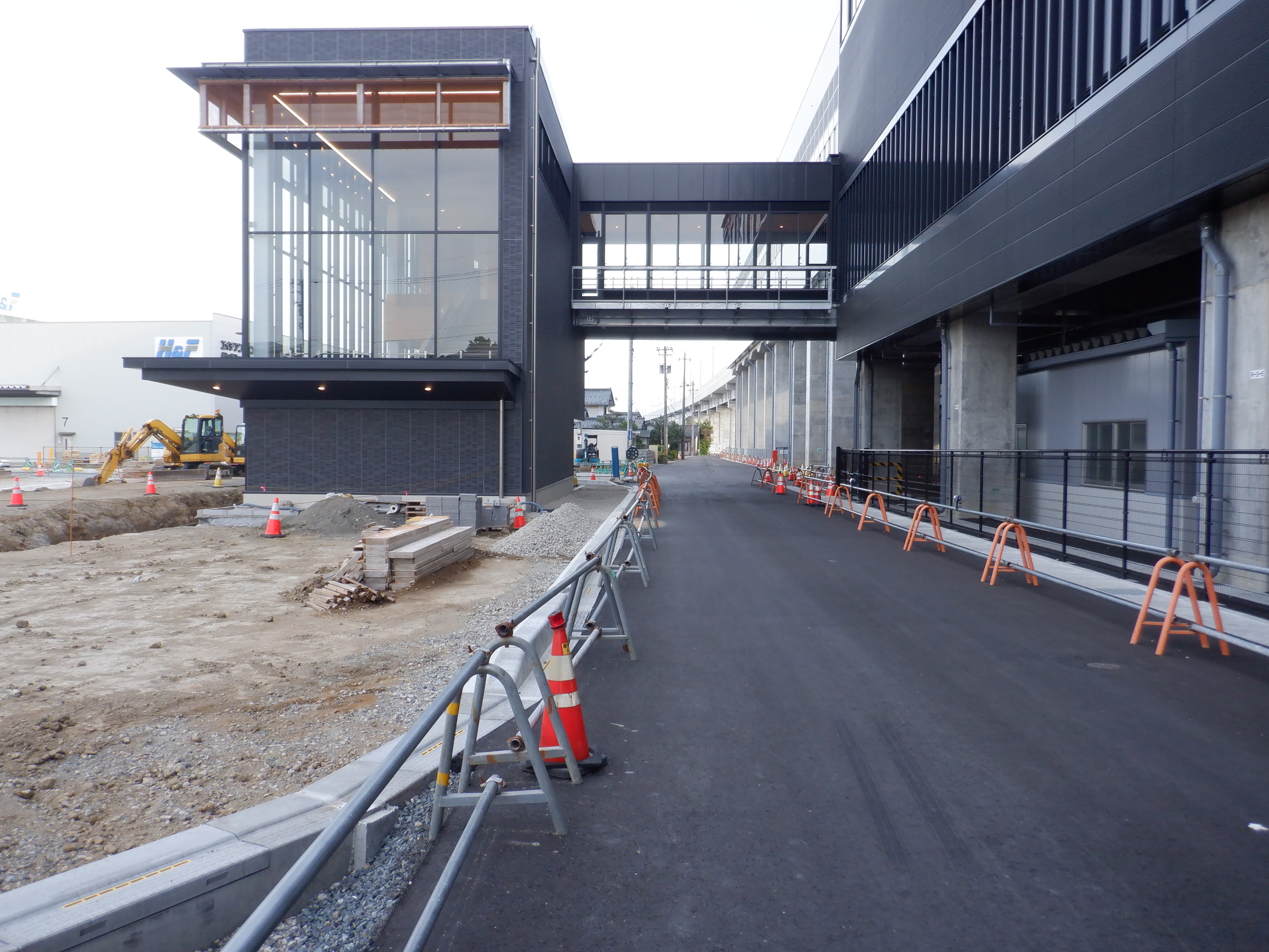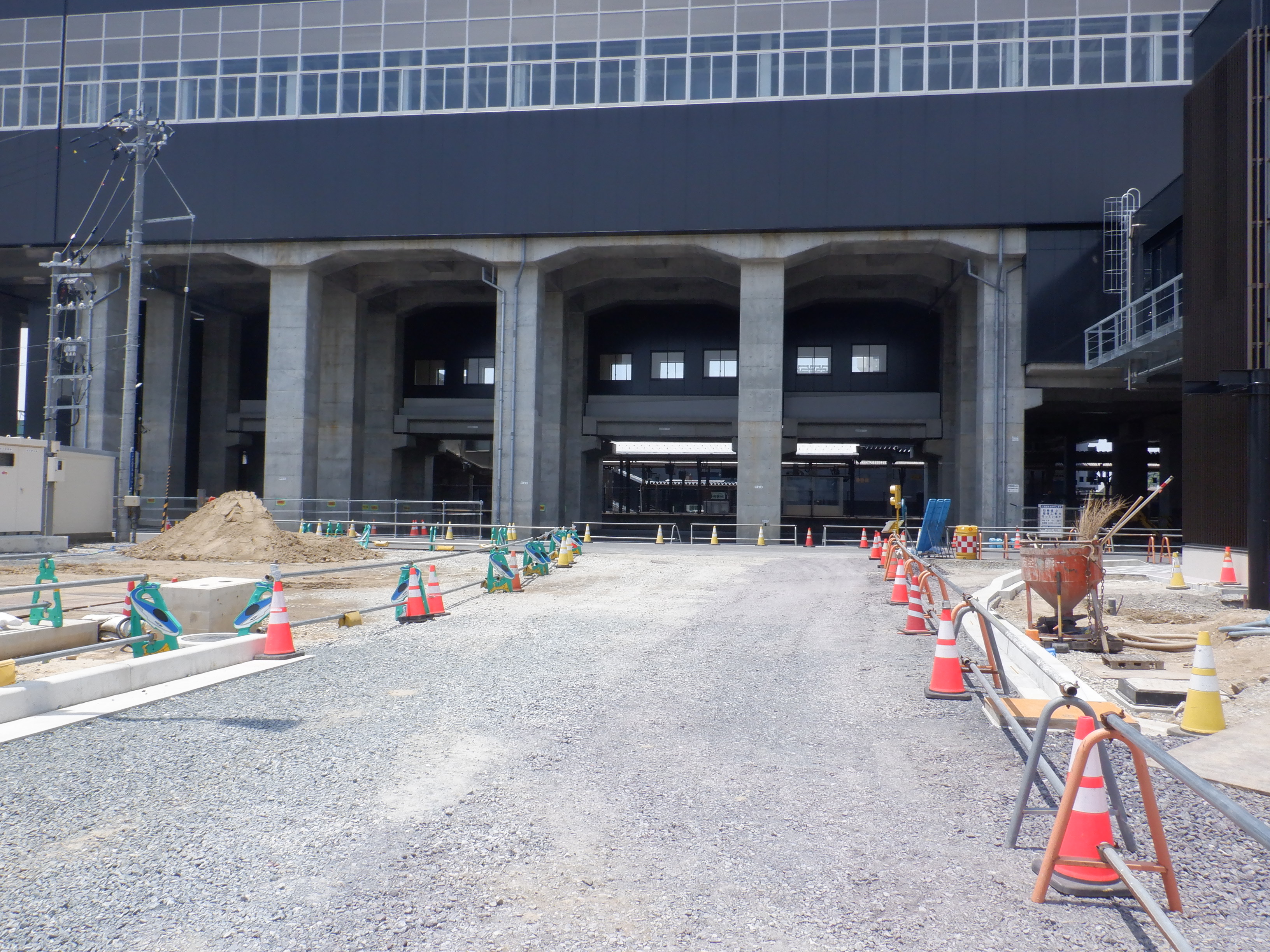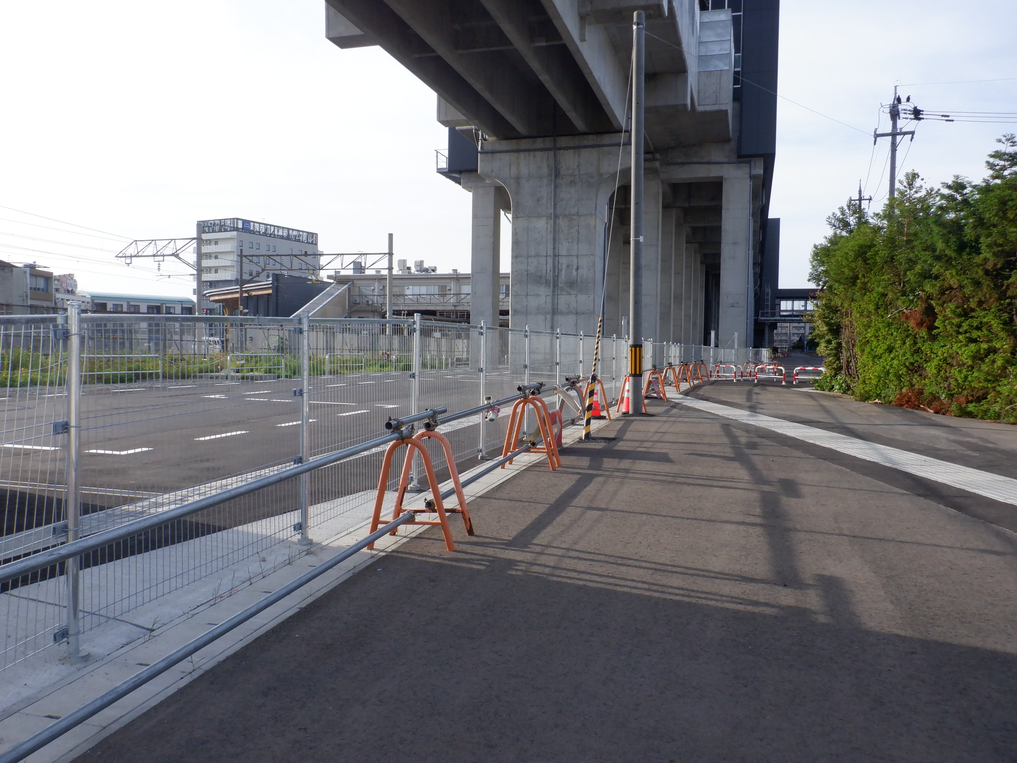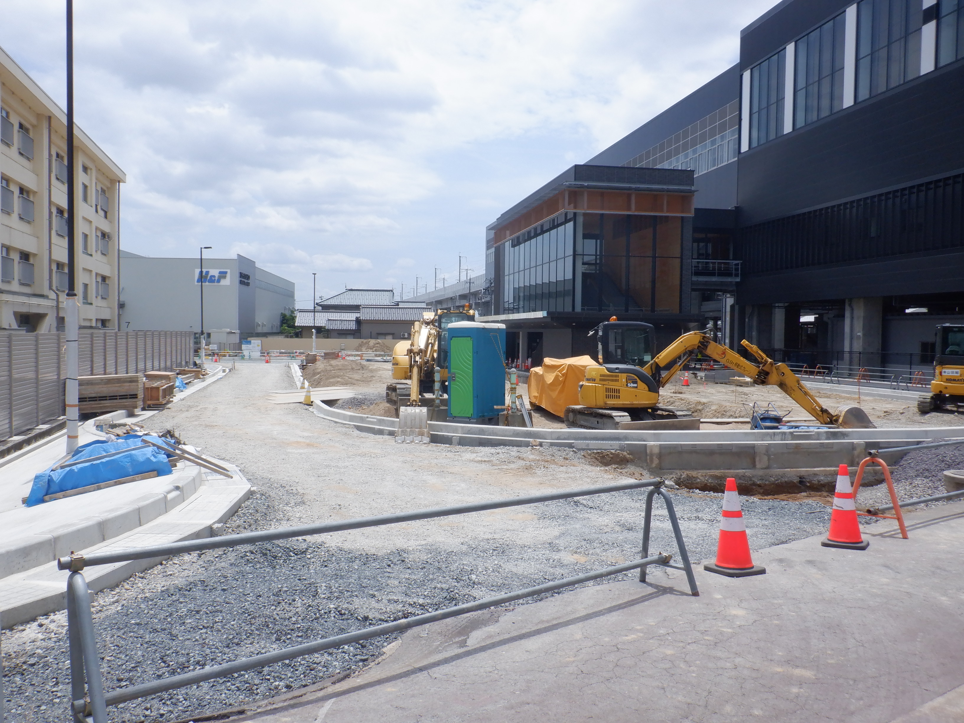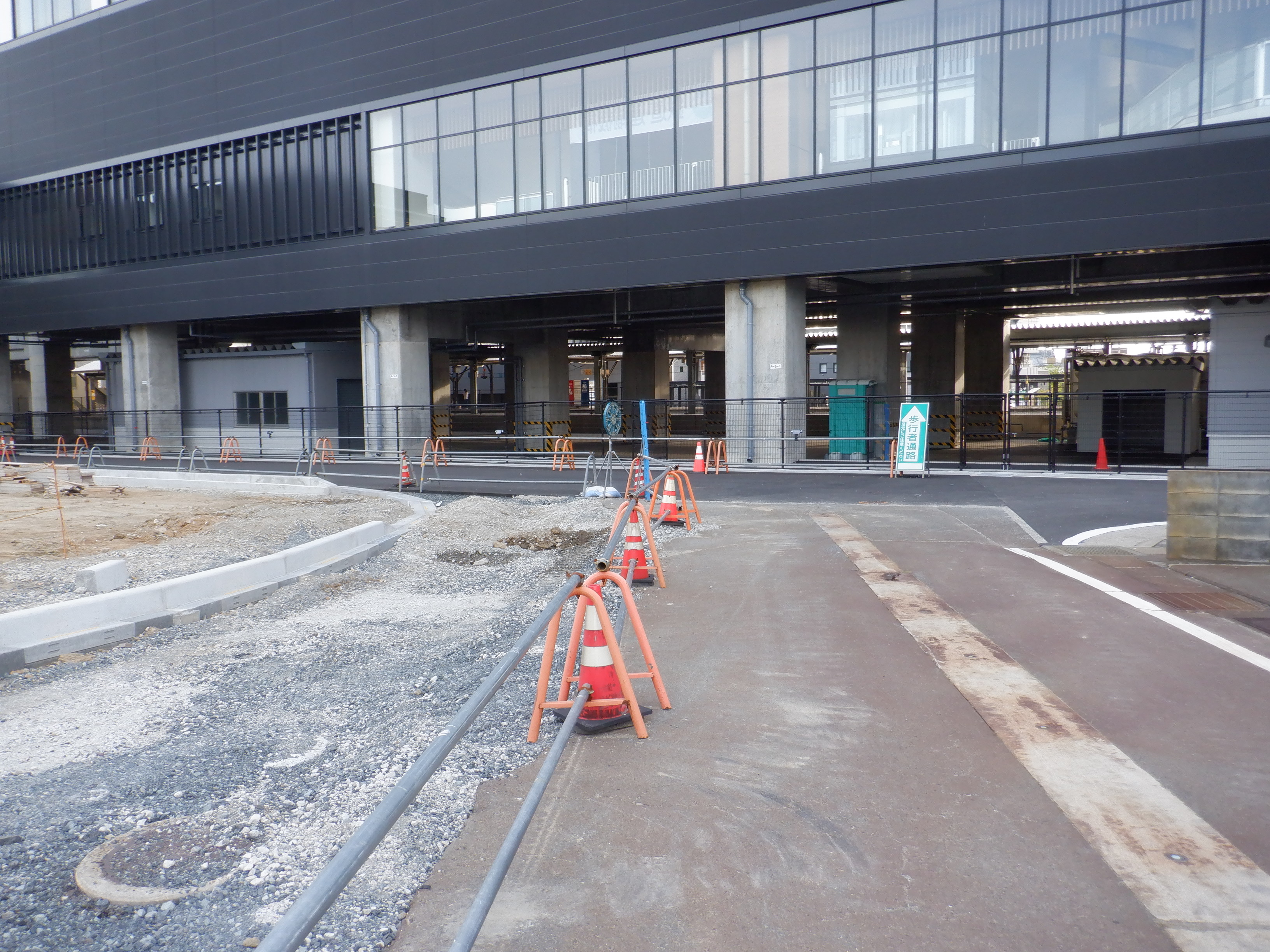新しい道路から西口へ。駅前の新しいホテルの駐車場もできていました。