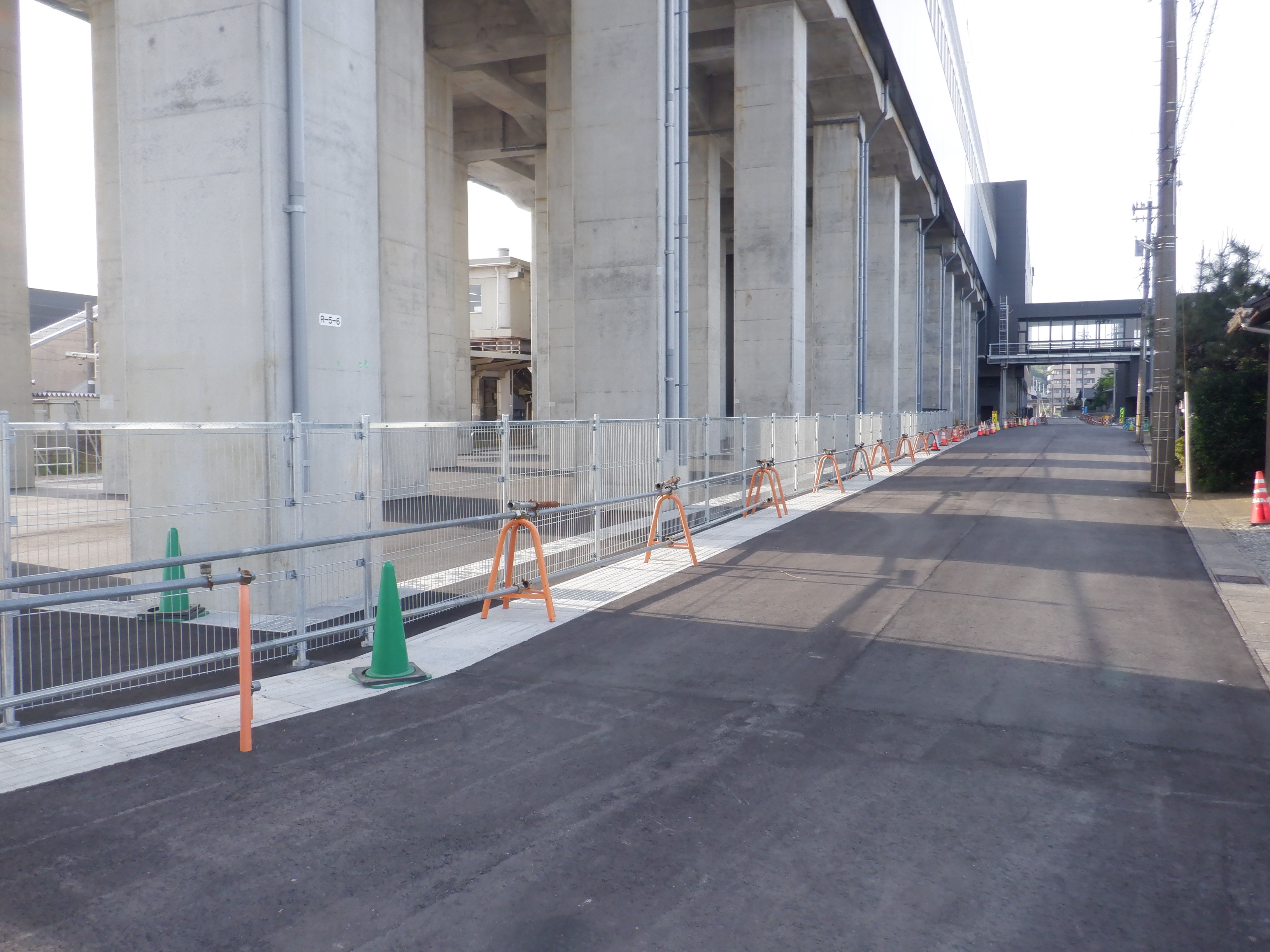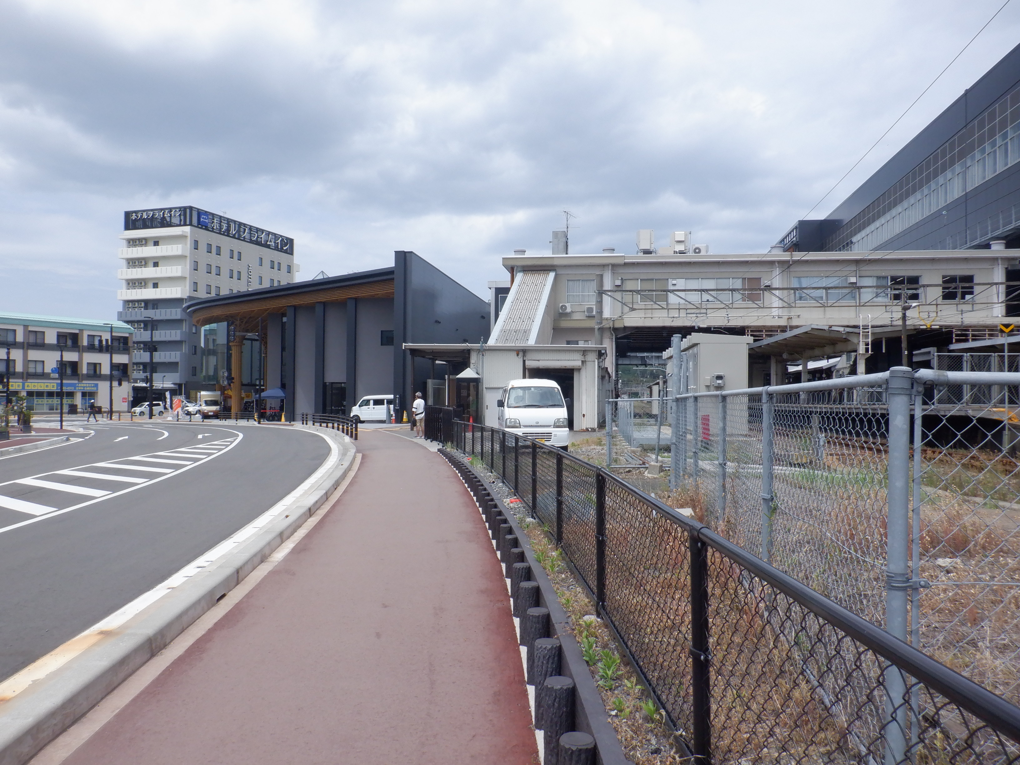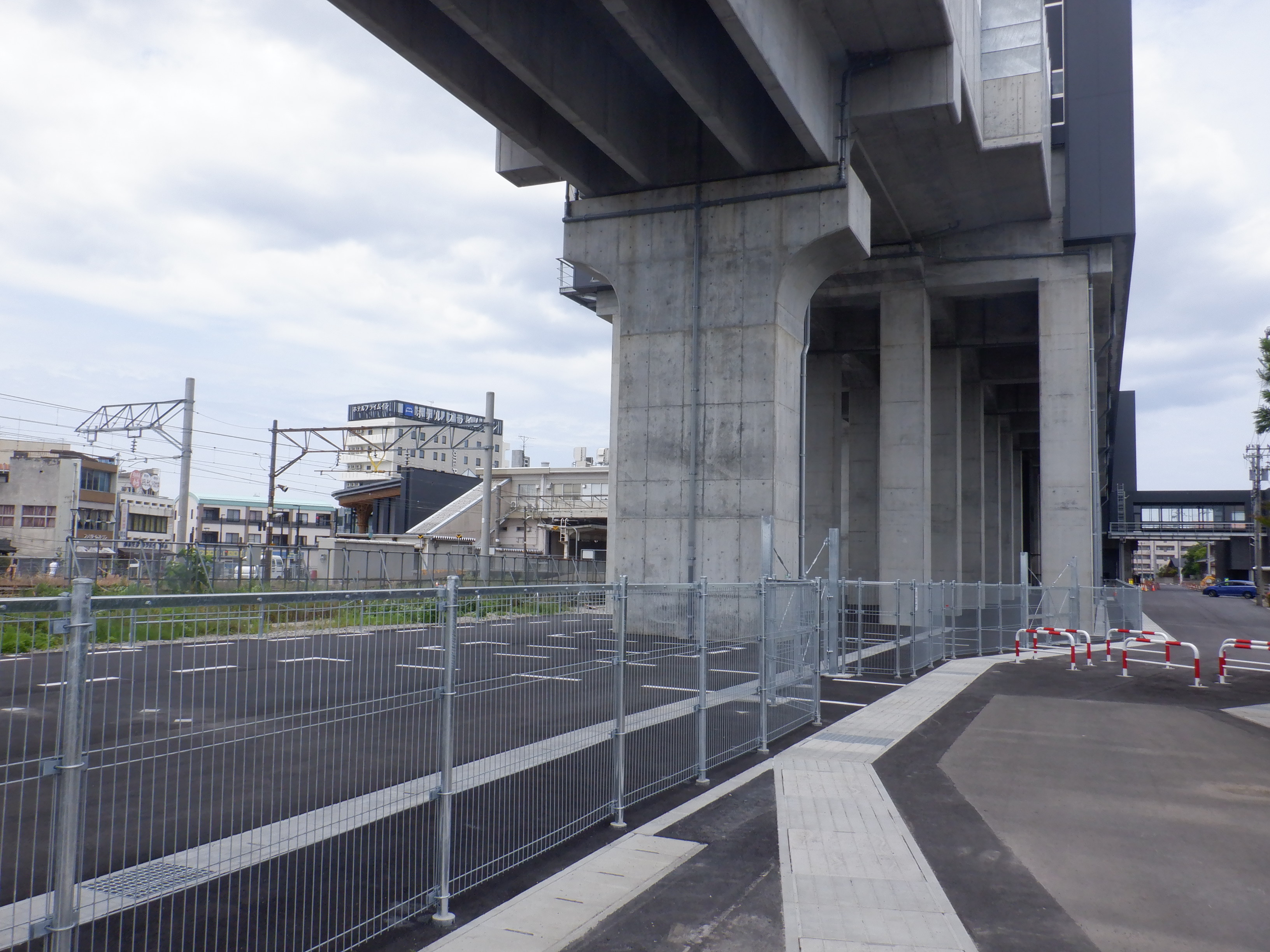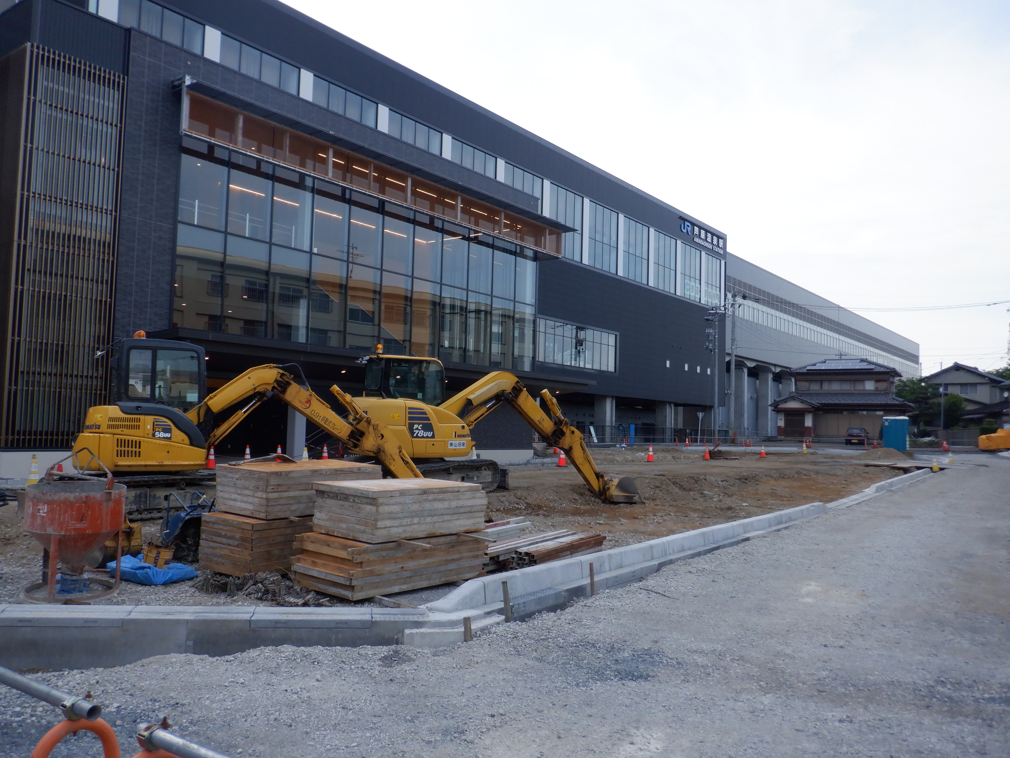 新しい道路から西口へ。駅前の新しいホテルの駐車場もできていました。