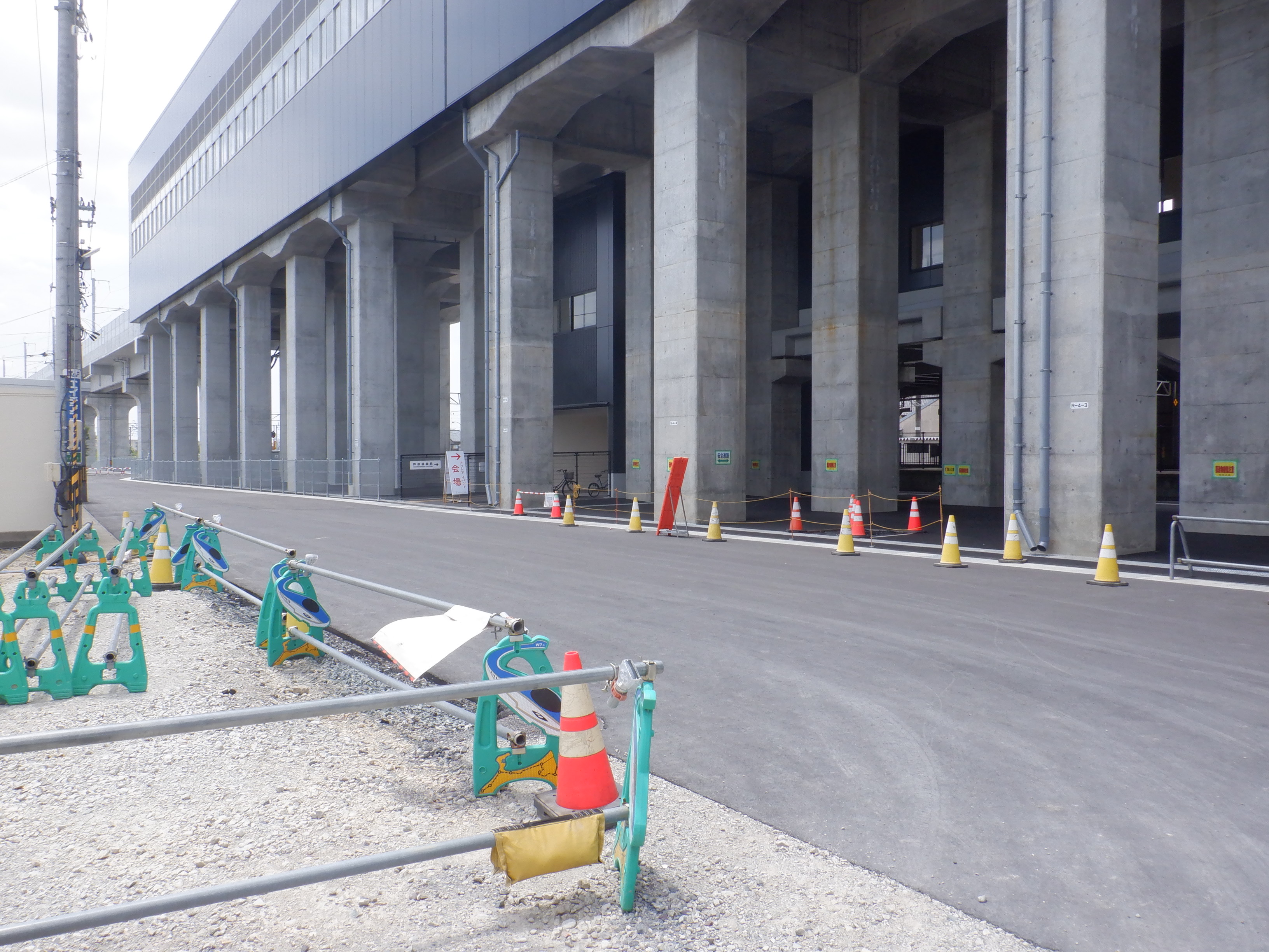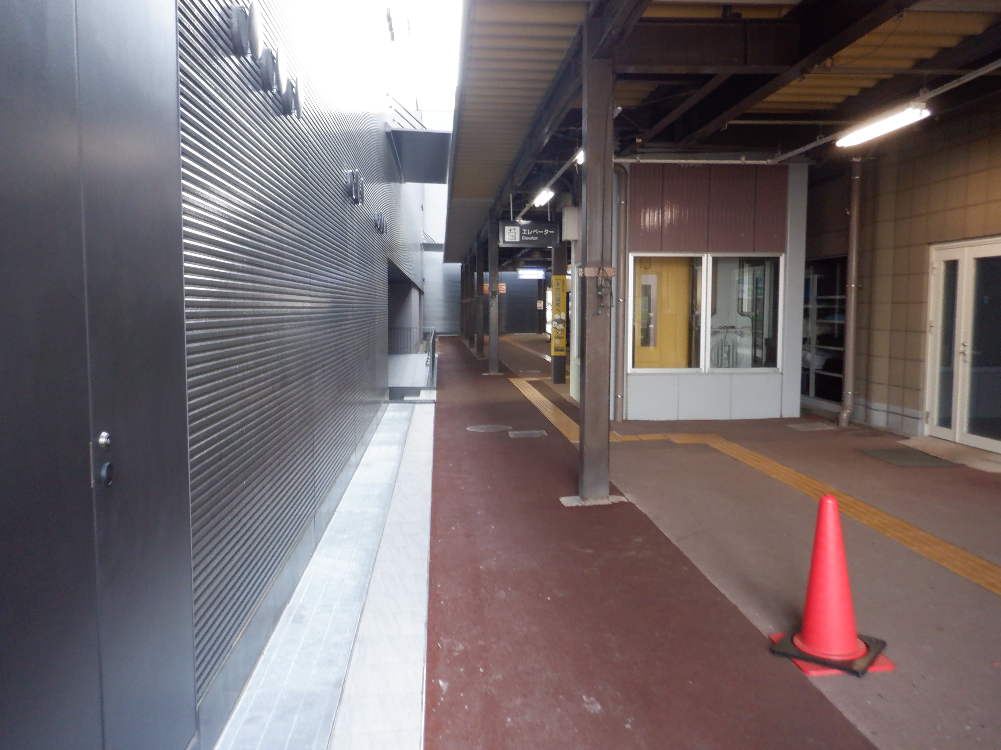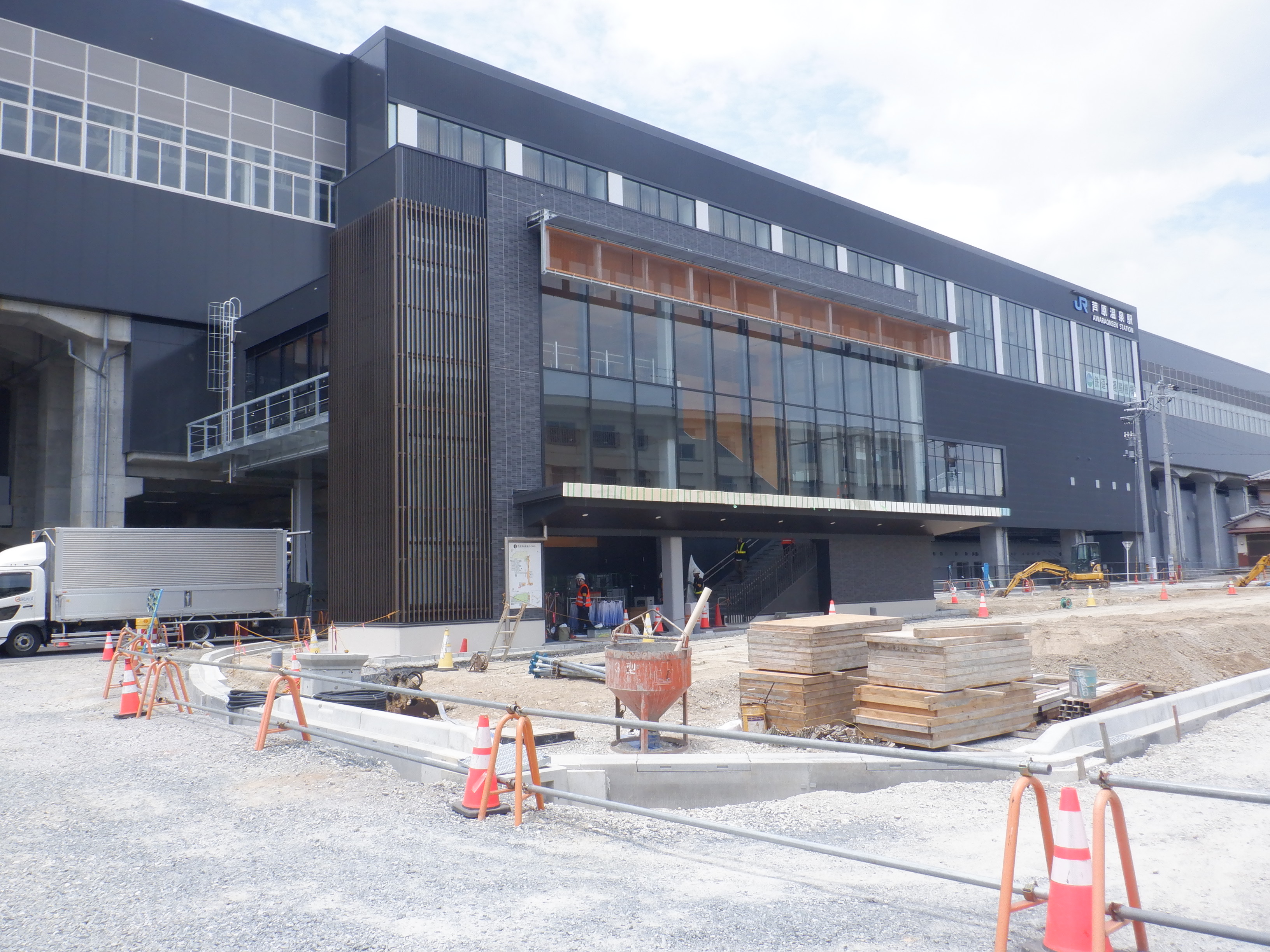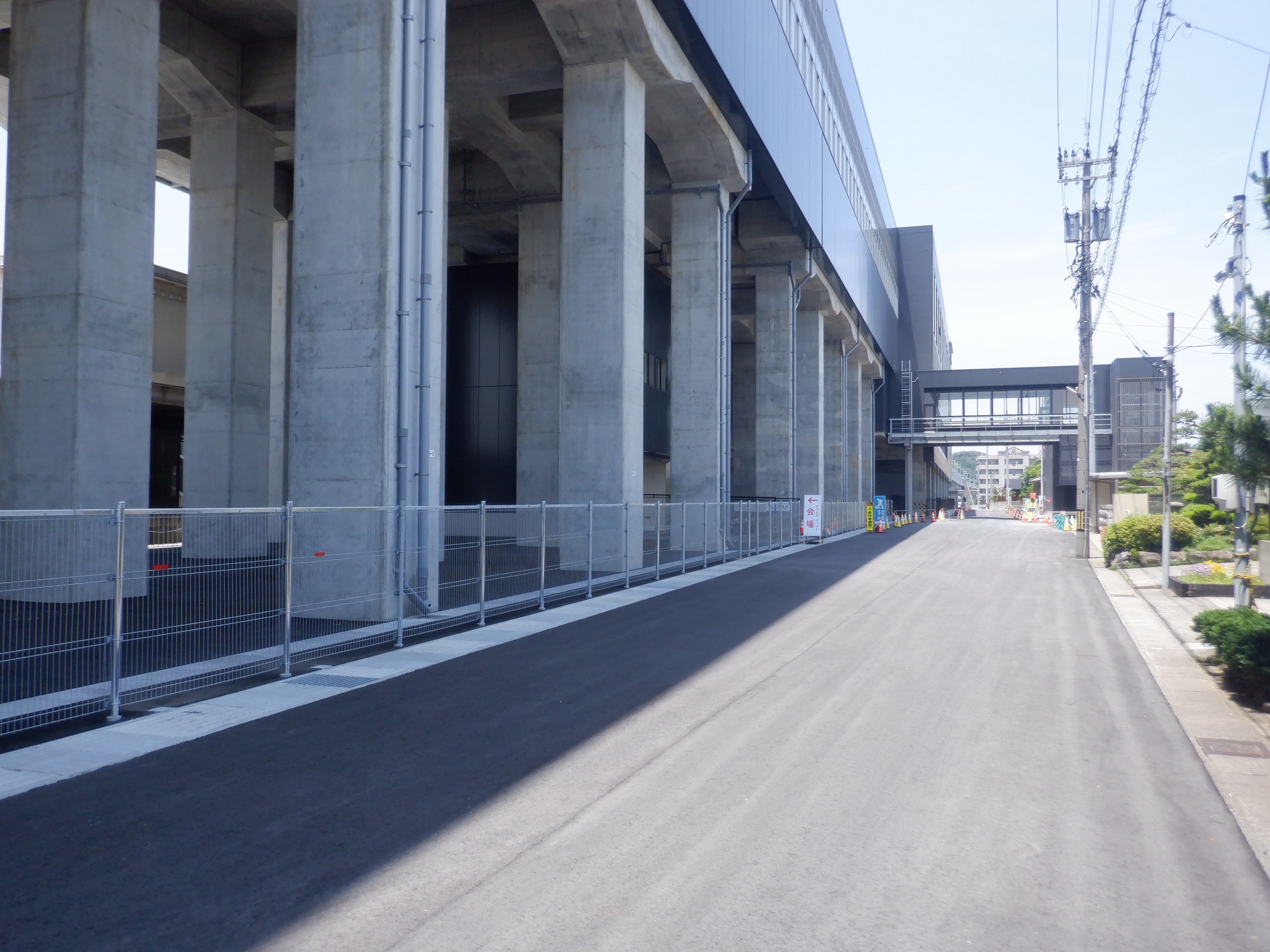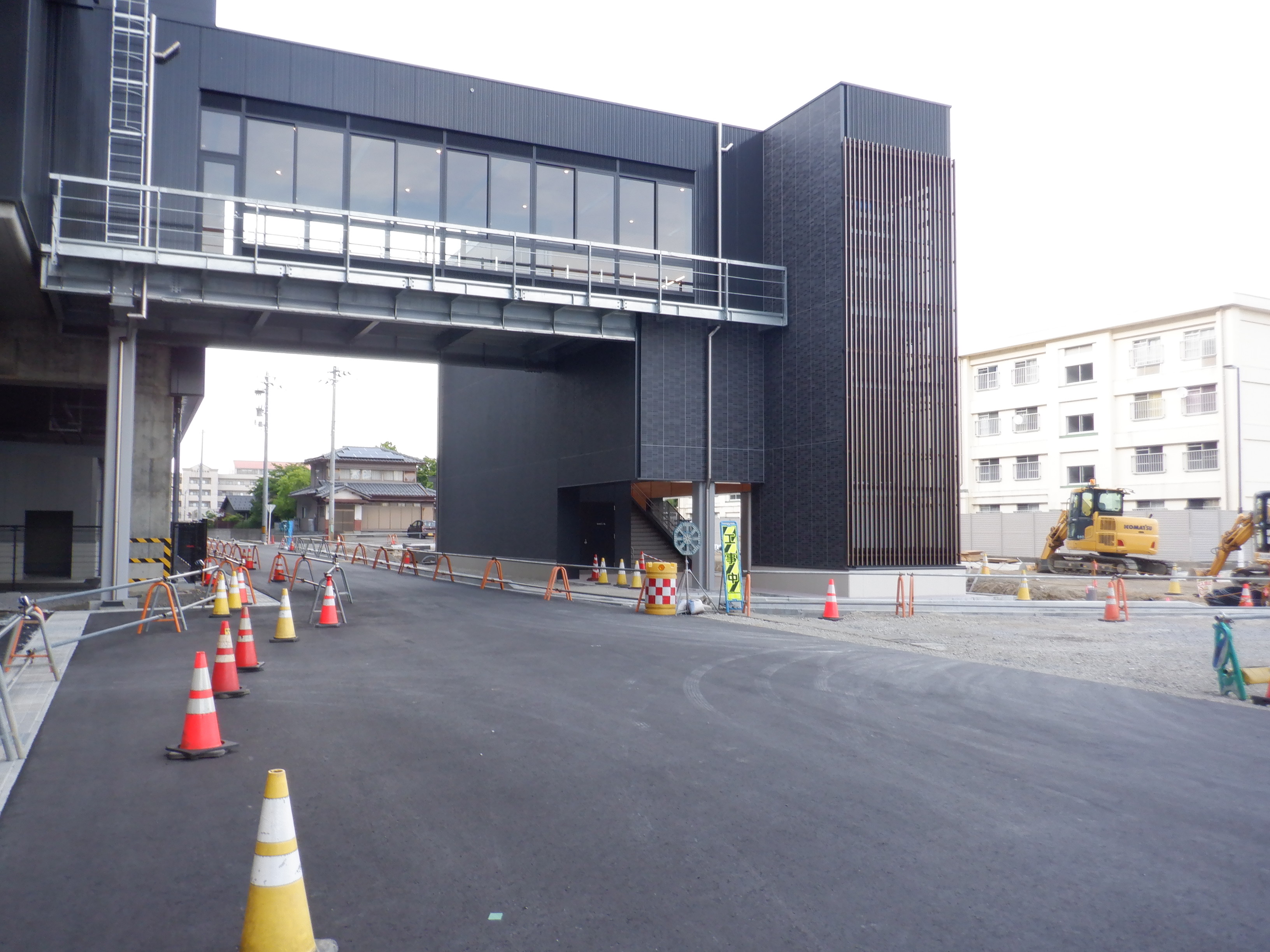 新しい道路から西口へ。駅前の新しいホテルの駐車場もできていました。