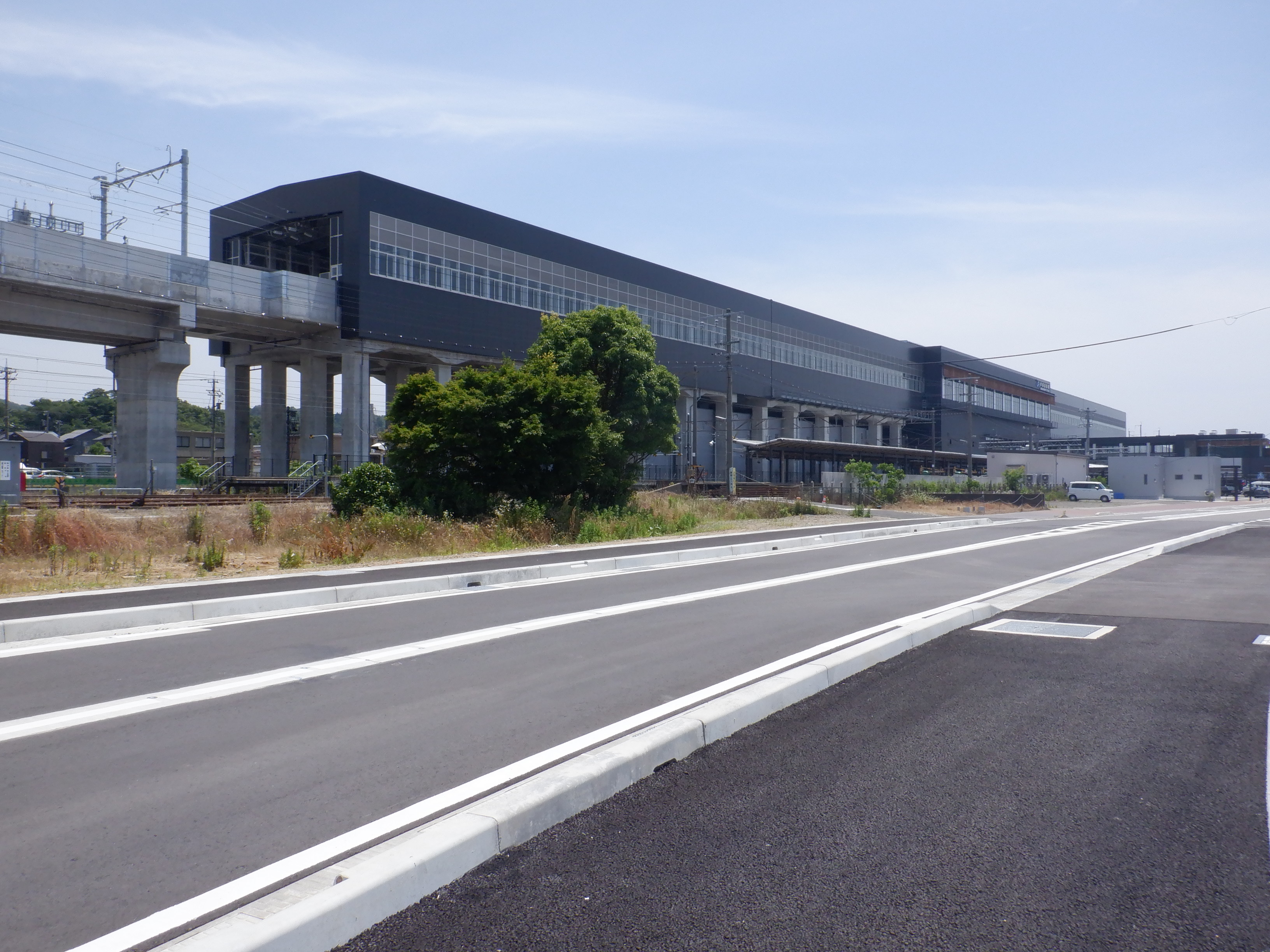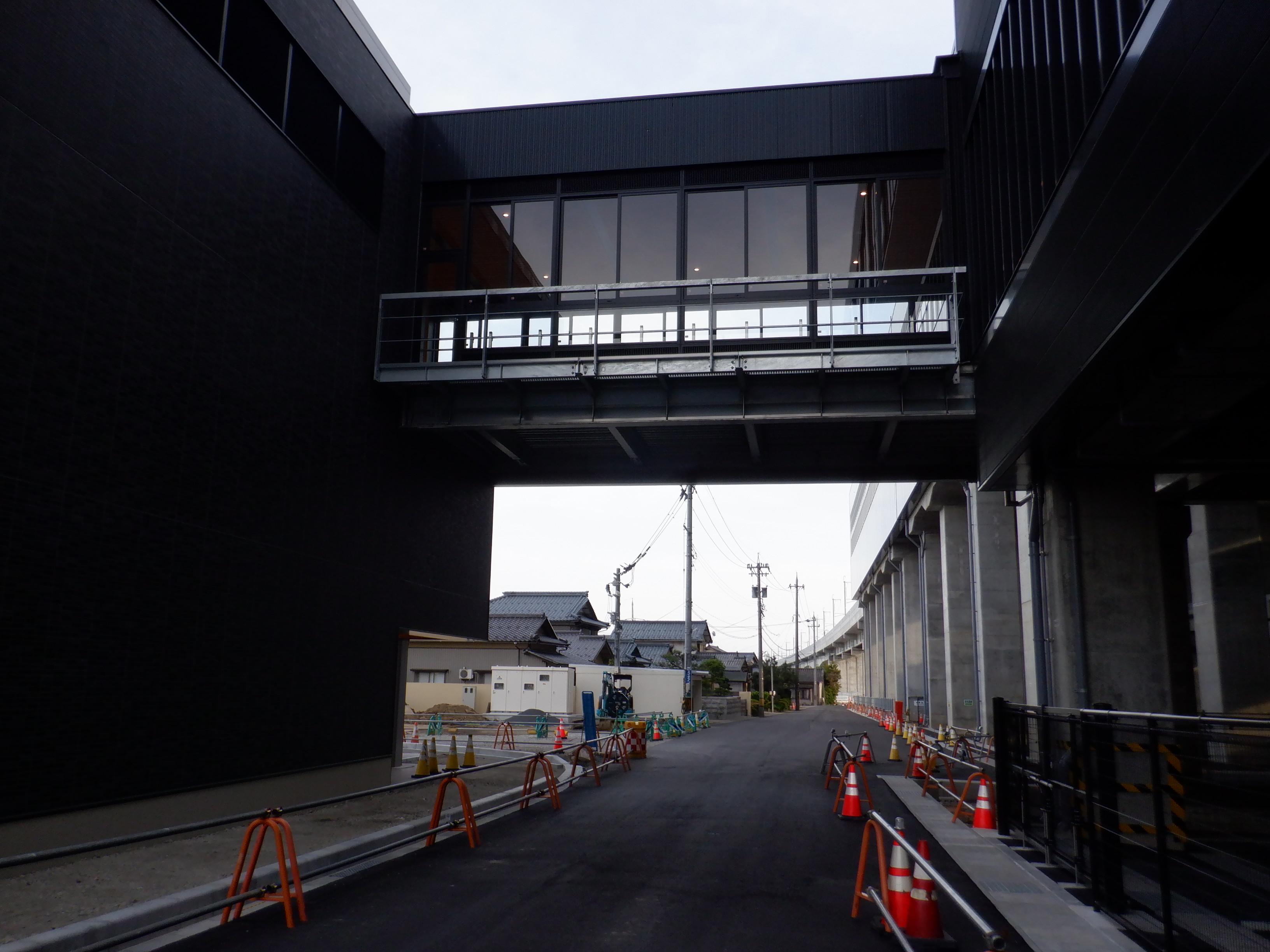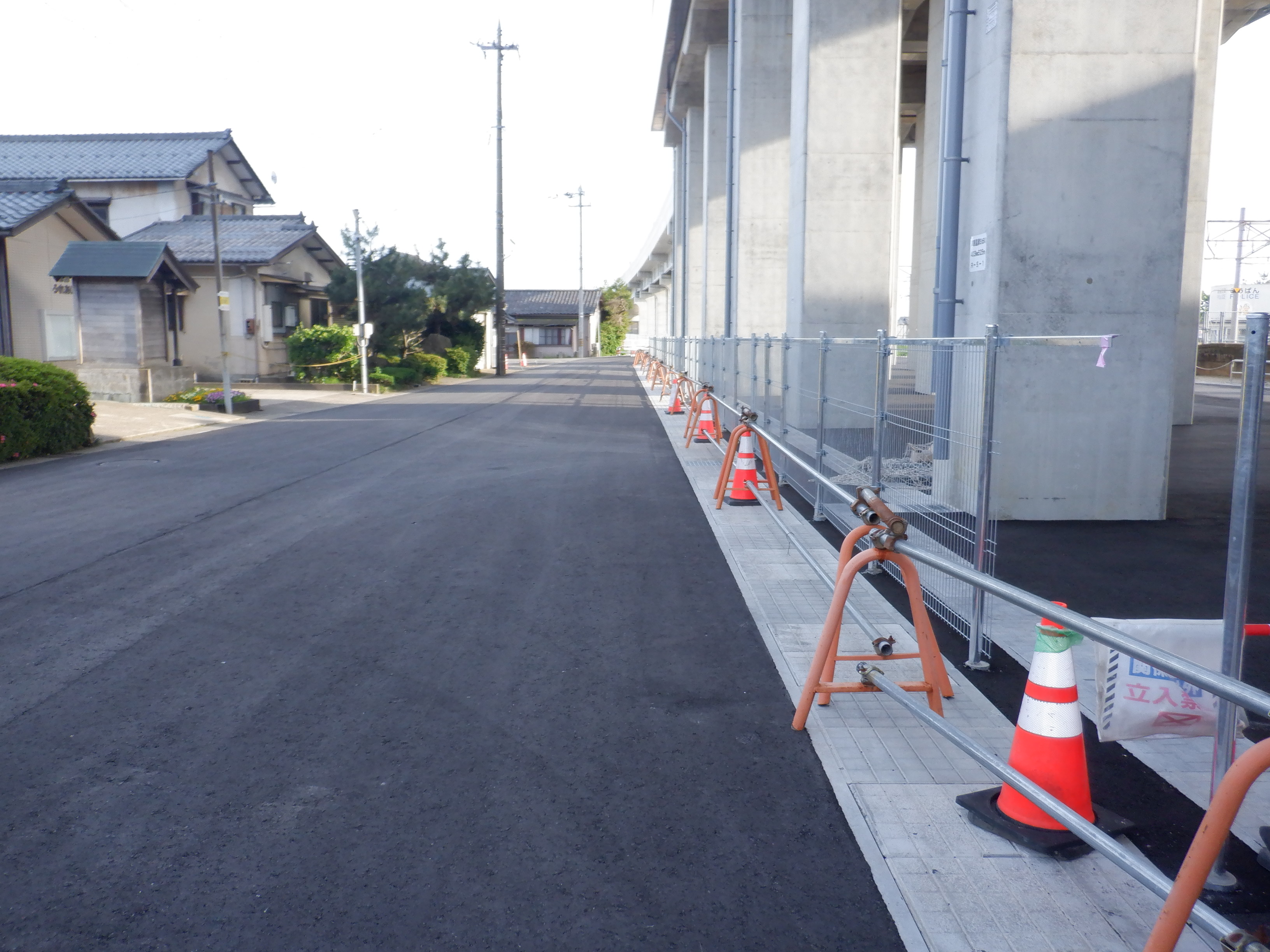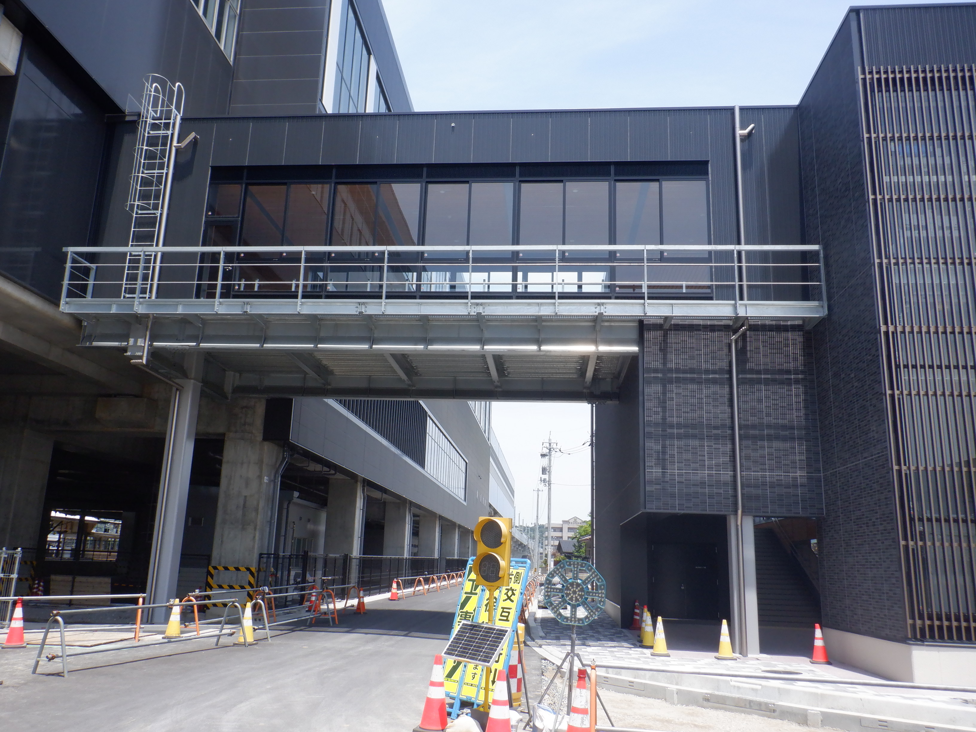 新しい道路から西口へ。駅前の新しいホテルの駐車場もできていました。